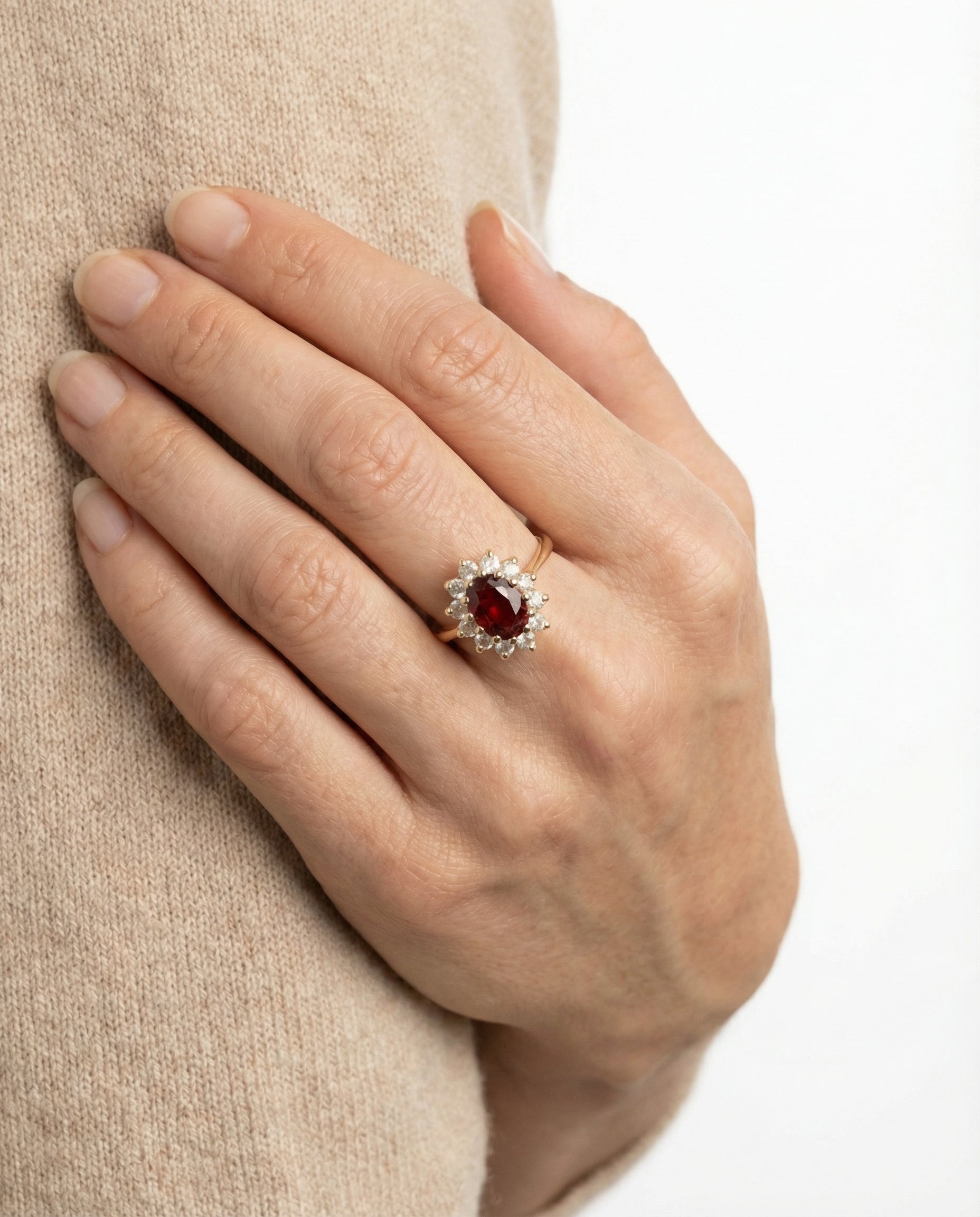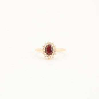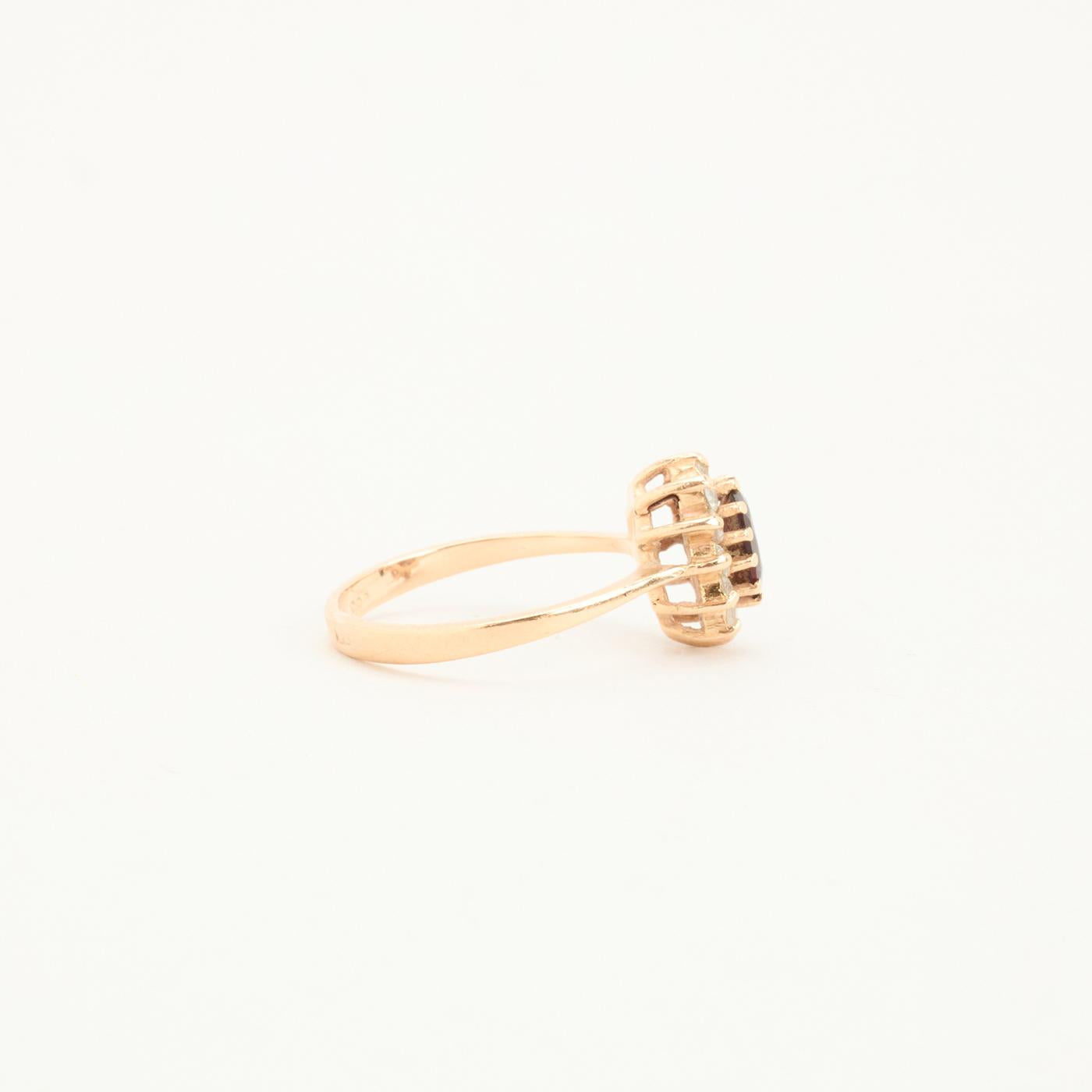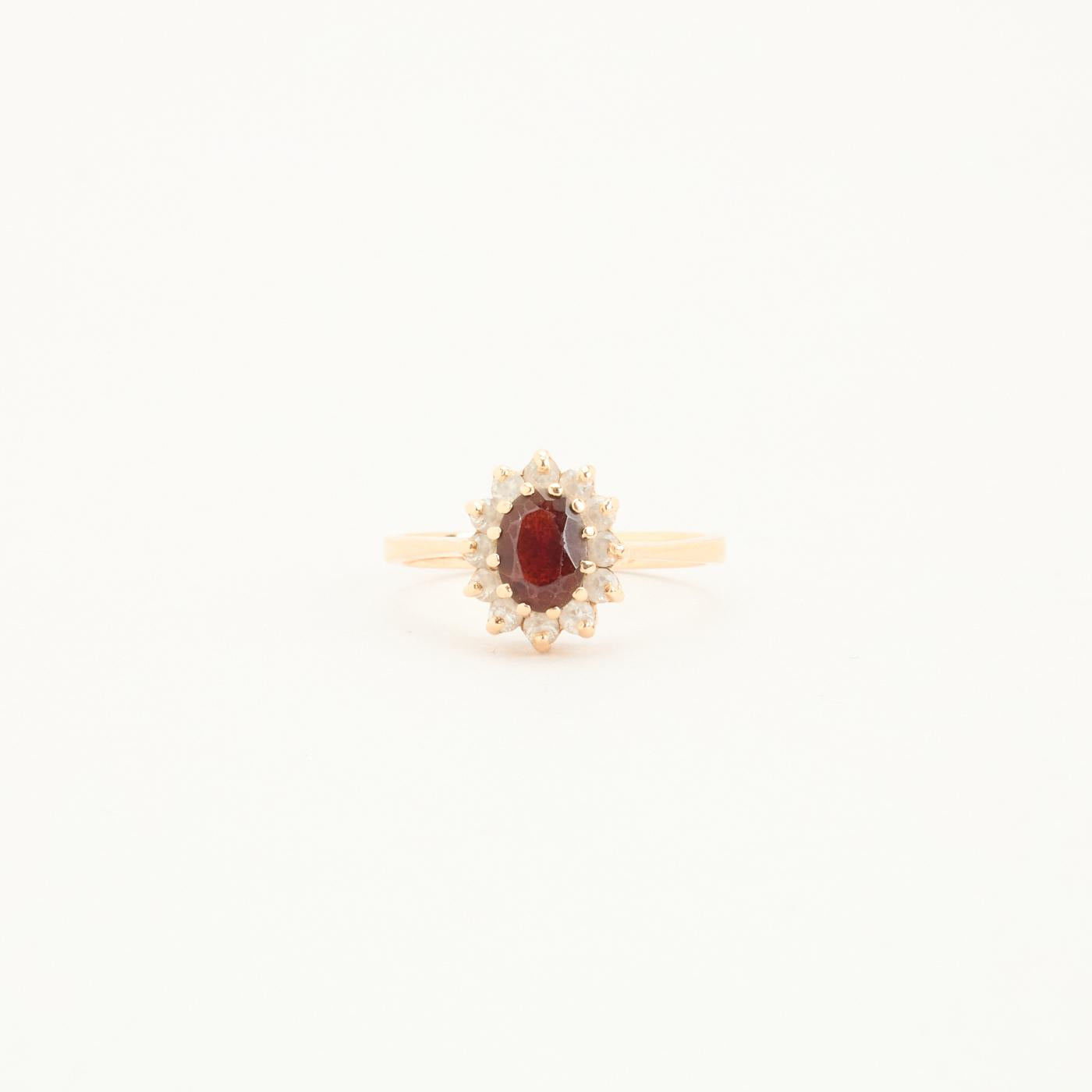 Rosetring i 14K guld med en turmalin og hvide sten, Str. 55