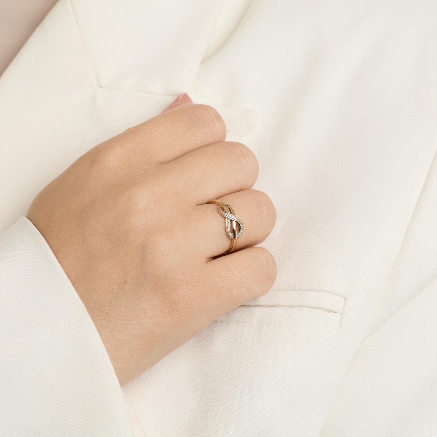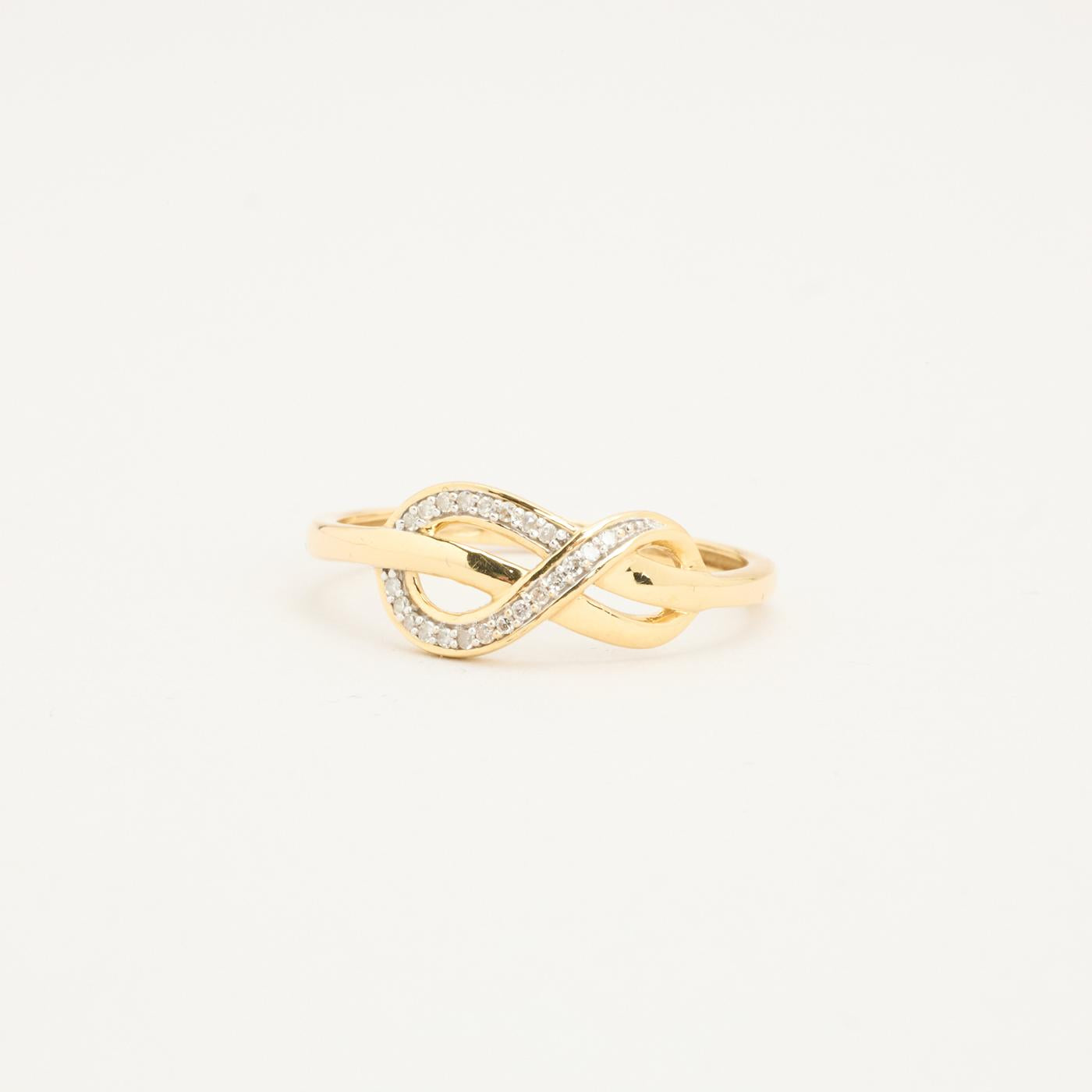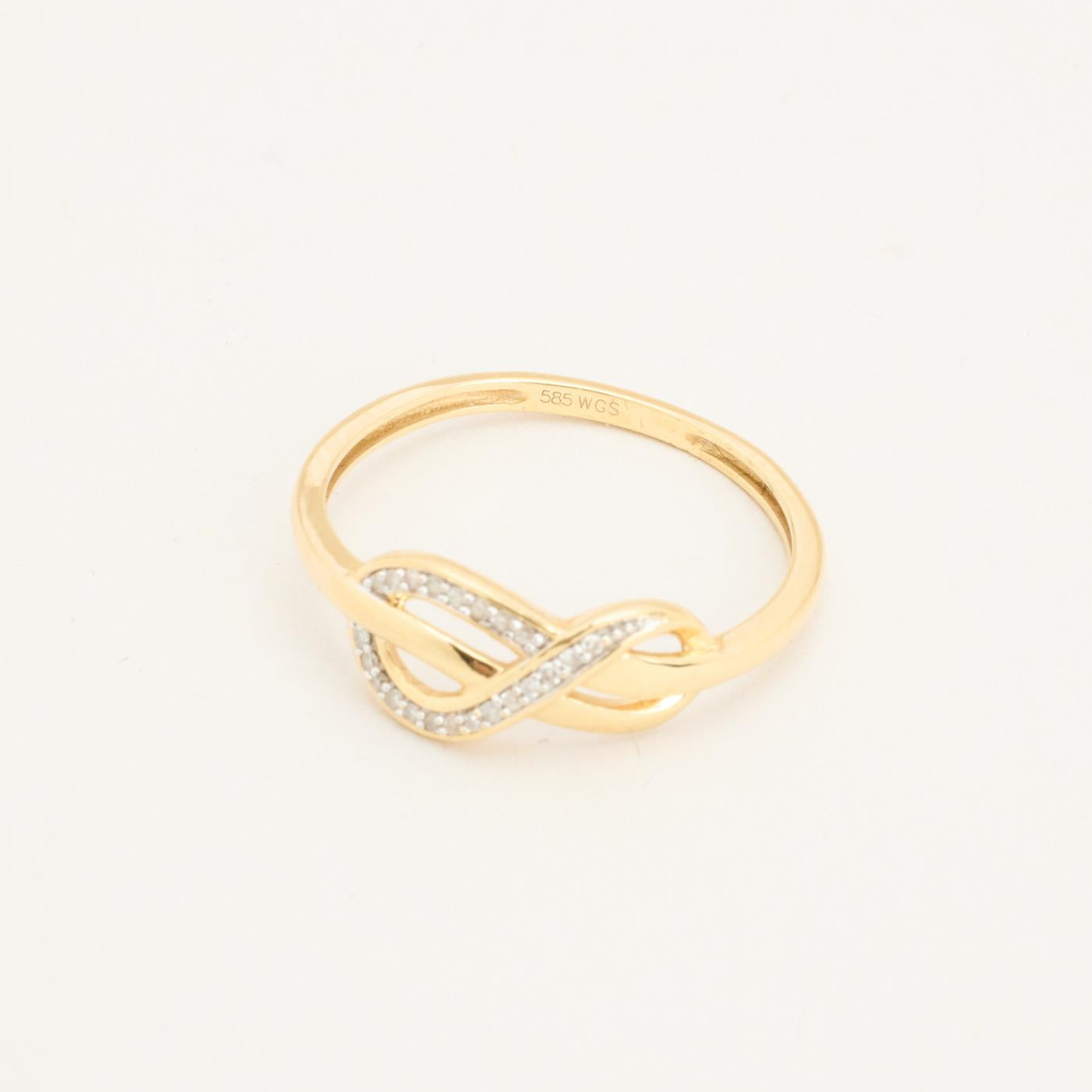 Crossoverring i 14K guld med diamanter (0.05 ct), Str. 54
