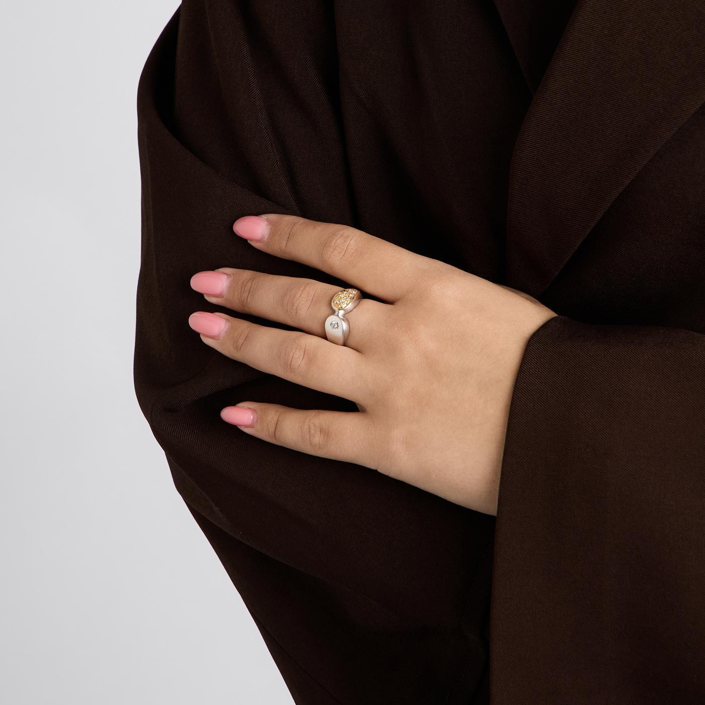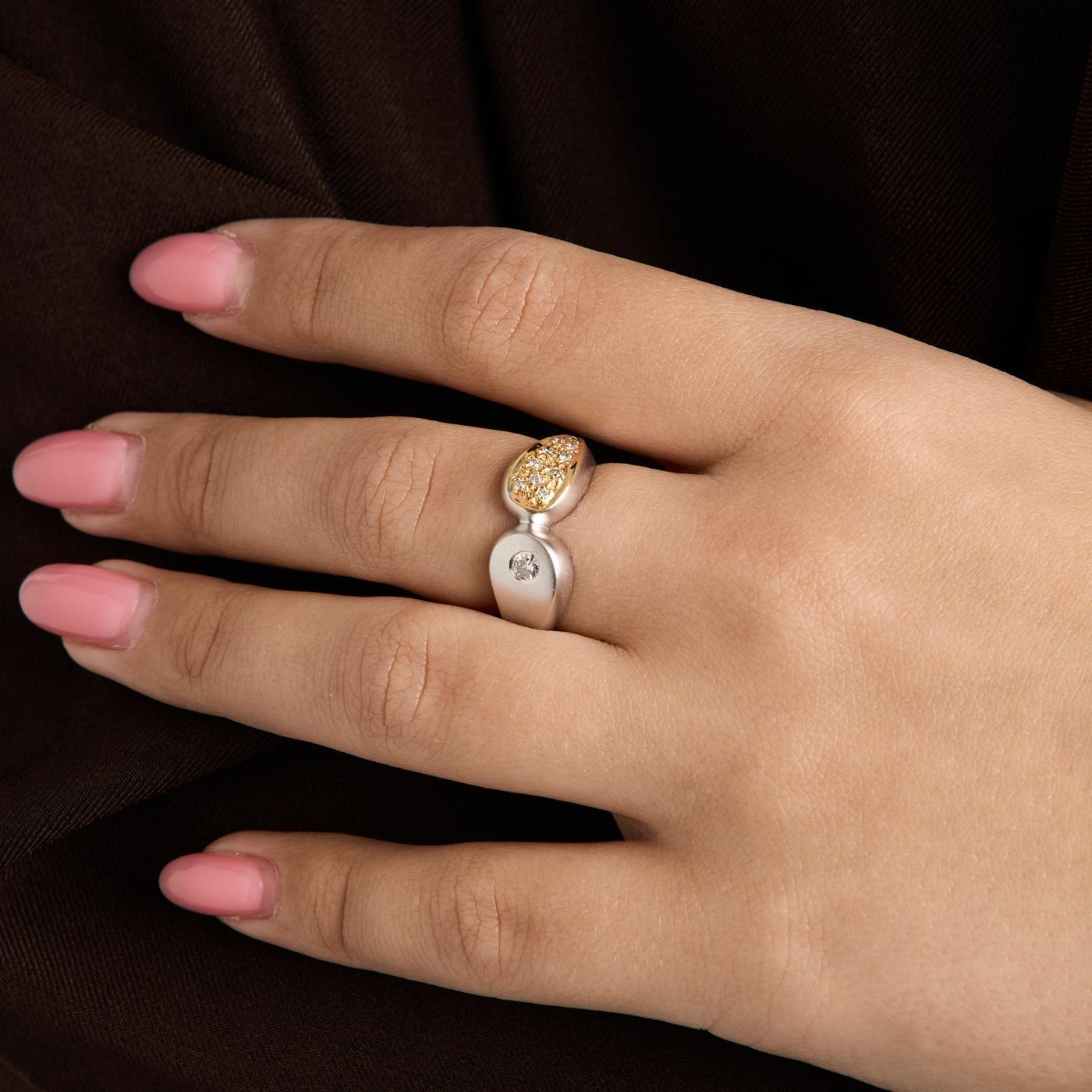 Toi et moi-ring i 18K hvidguld og guld, med diamanter (0,16 ct), Str. 56
