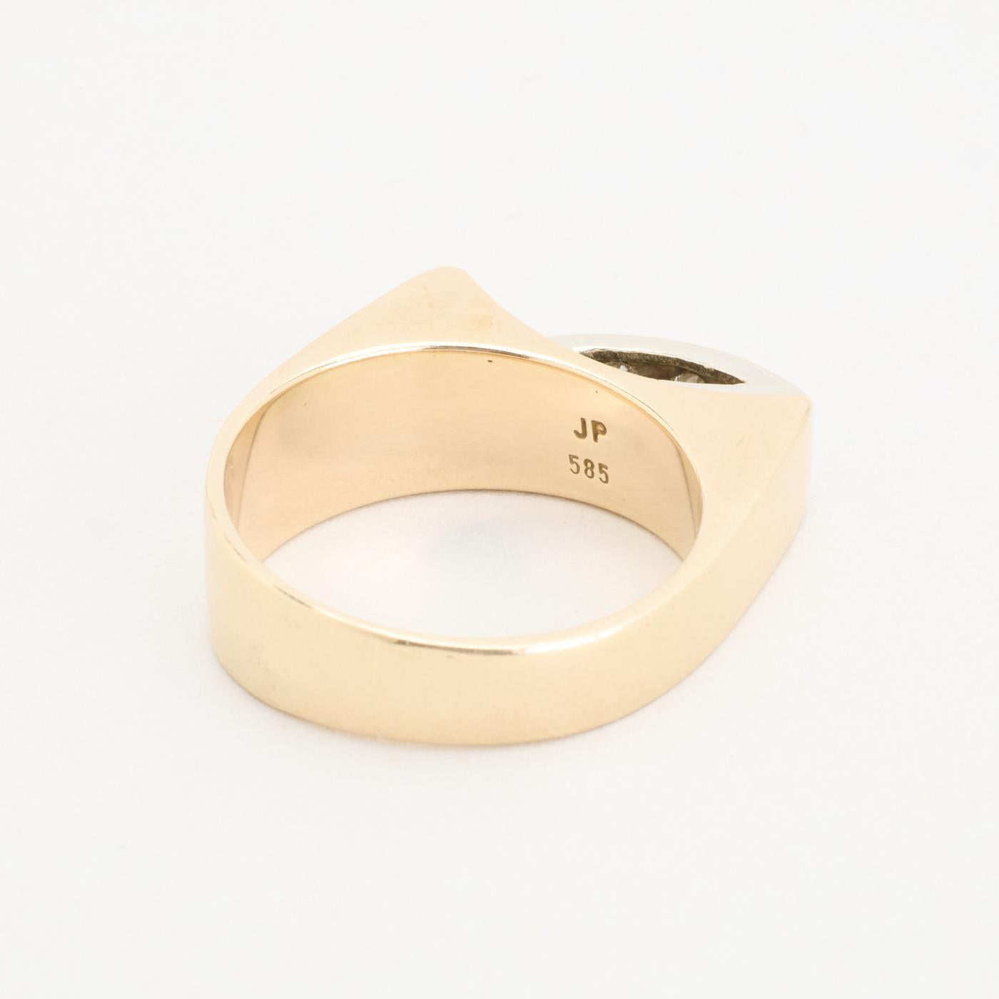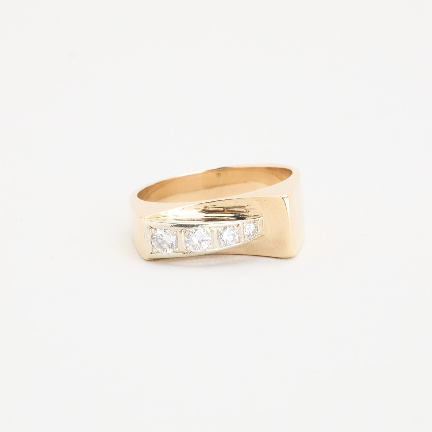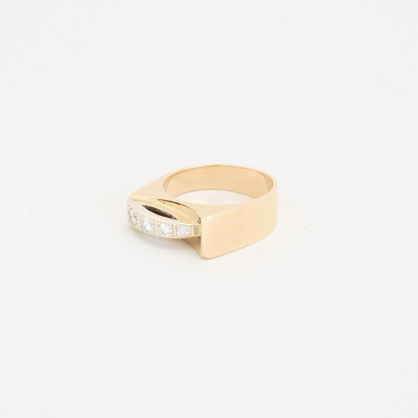 Geometrisk ring i 14K gulguld, med diamanter (0,23 ct), Str. 56