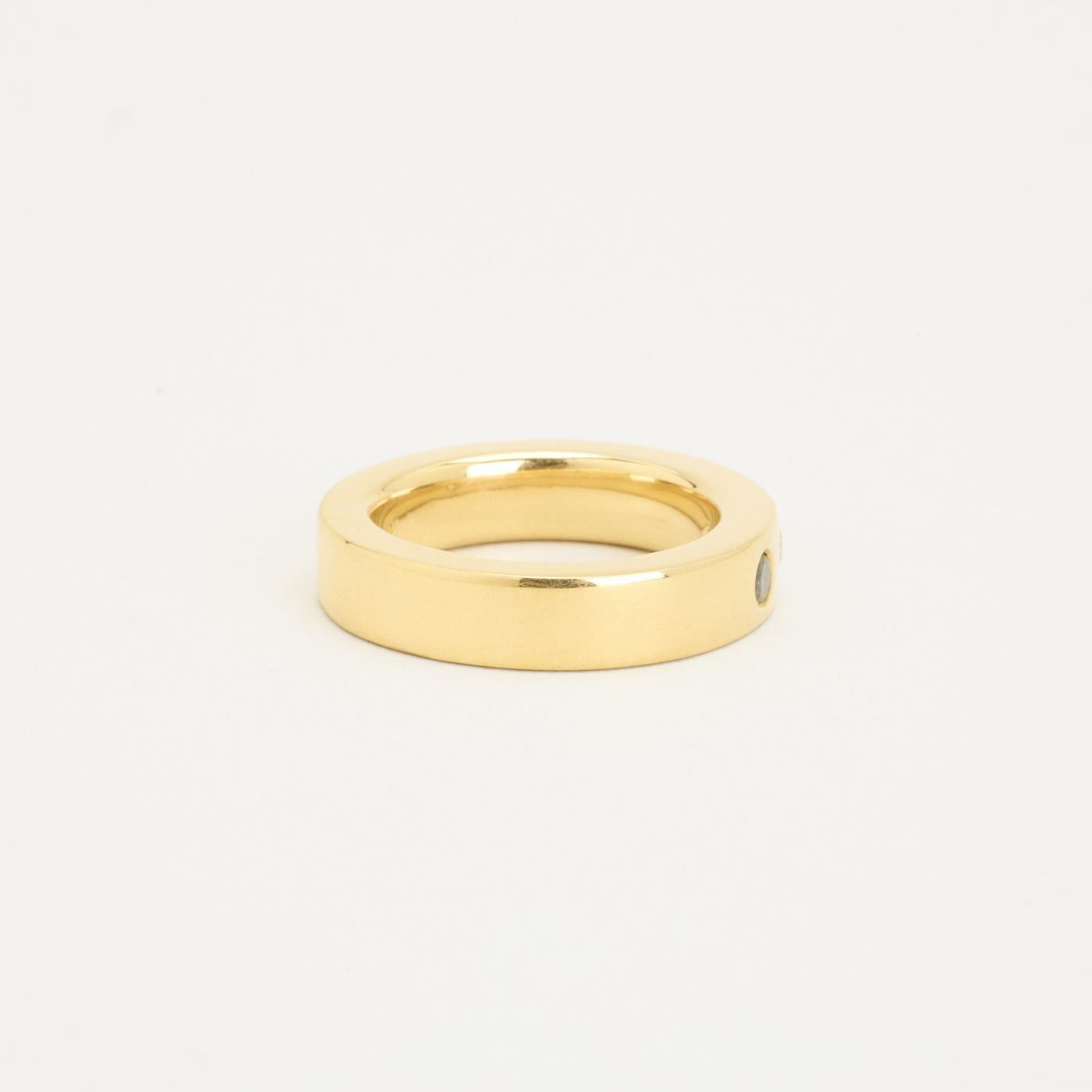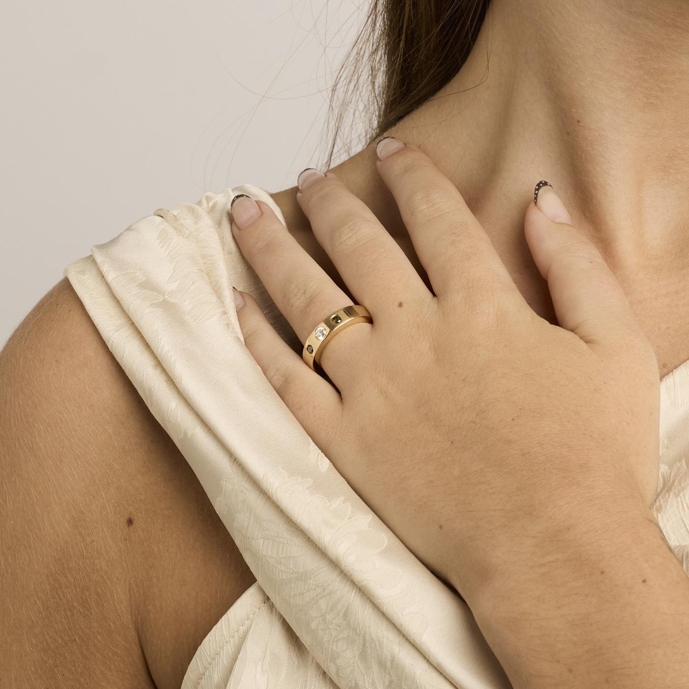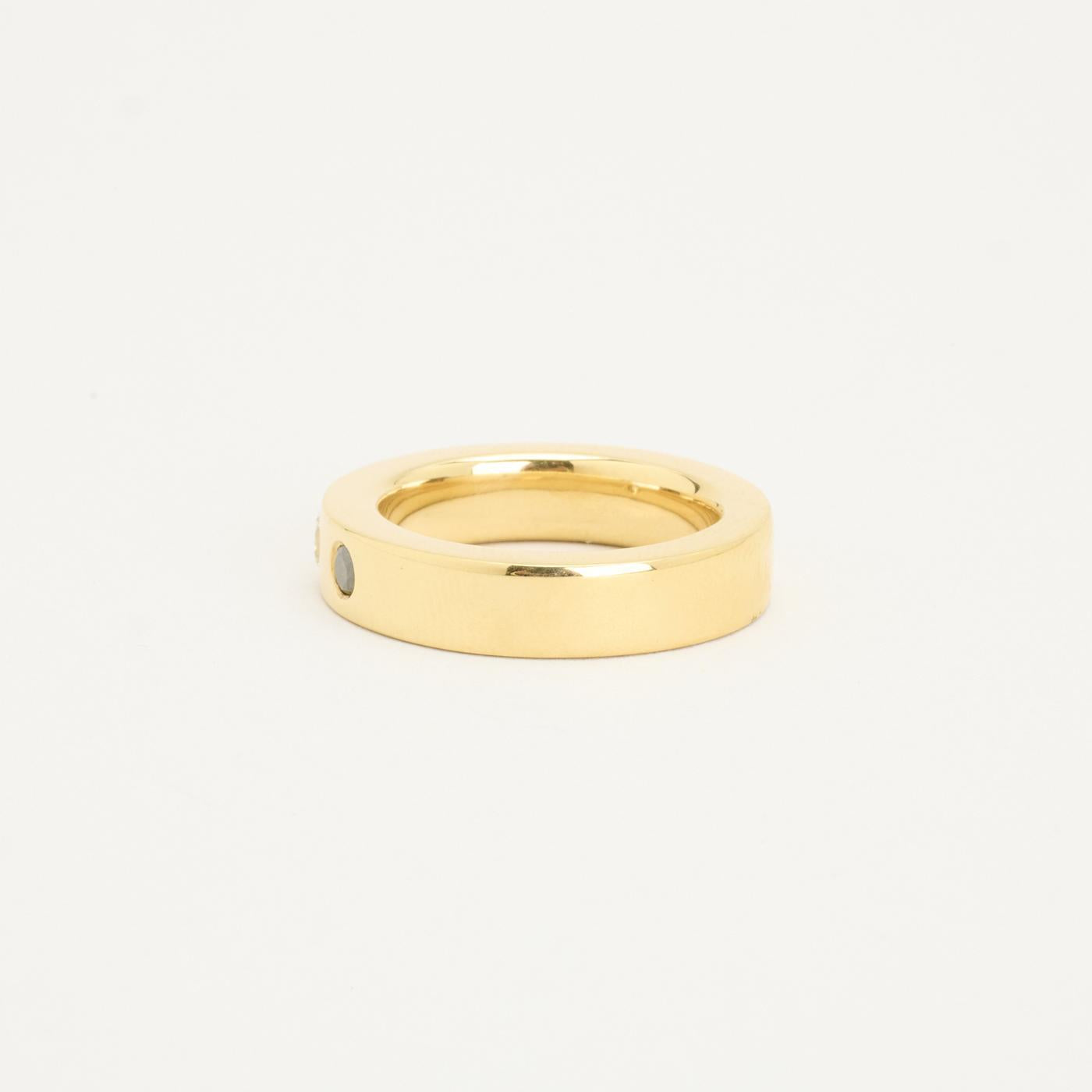 Trestensring i 18K guld, med diamant (0,25 ct) og mørke sten, Str. 53