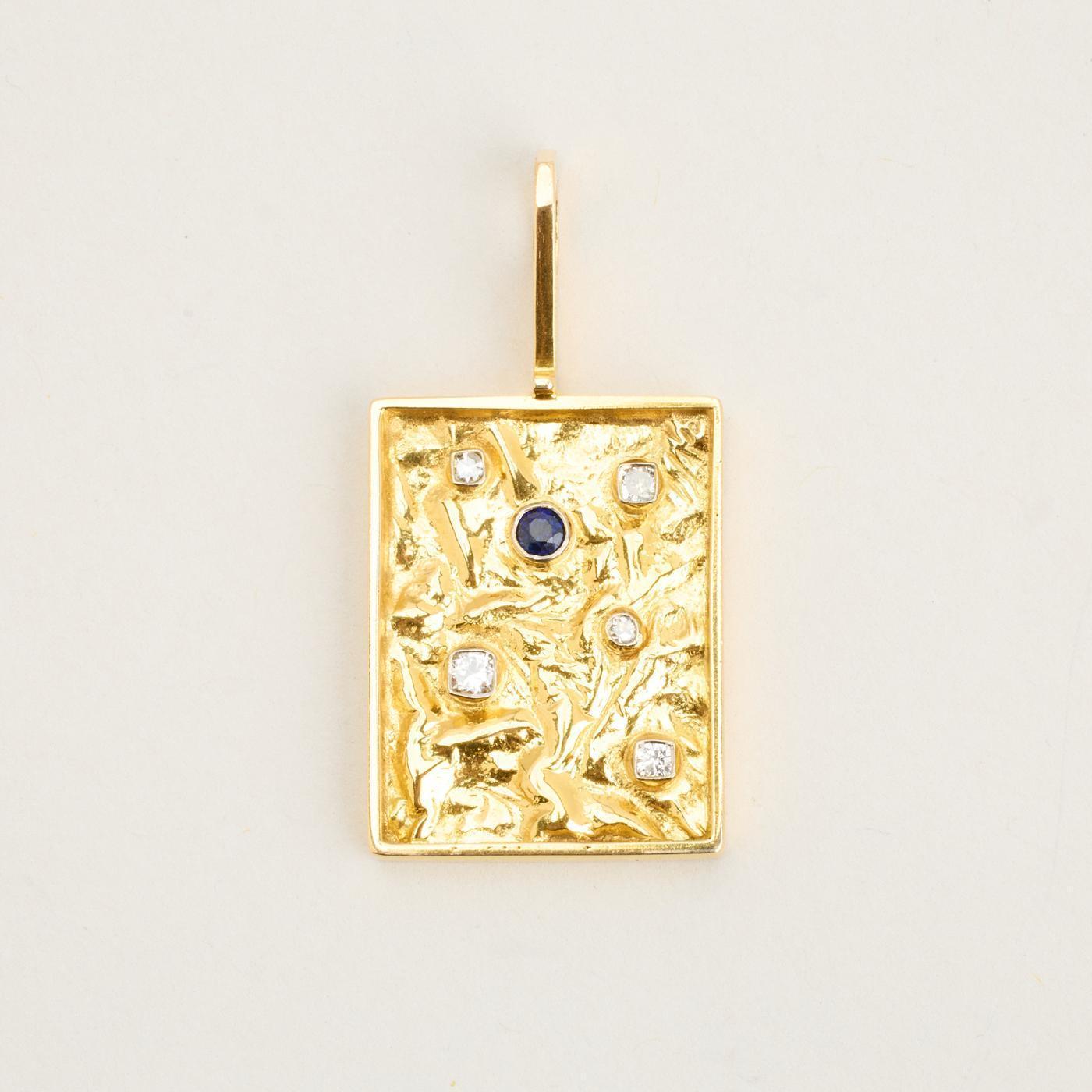 Vedhæng med diamant (0.11 ct) i 14 karat med en Safir, 4.2 cm