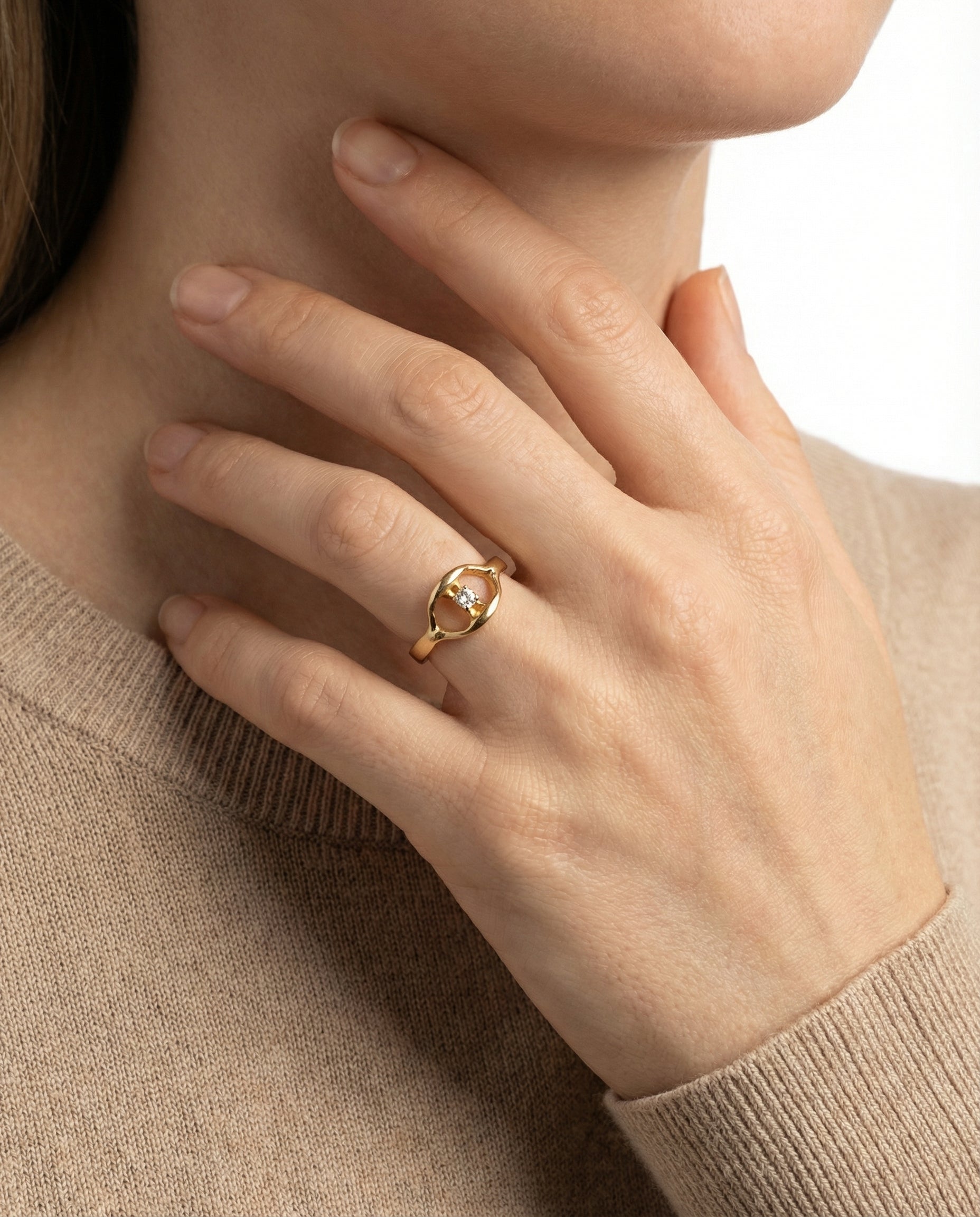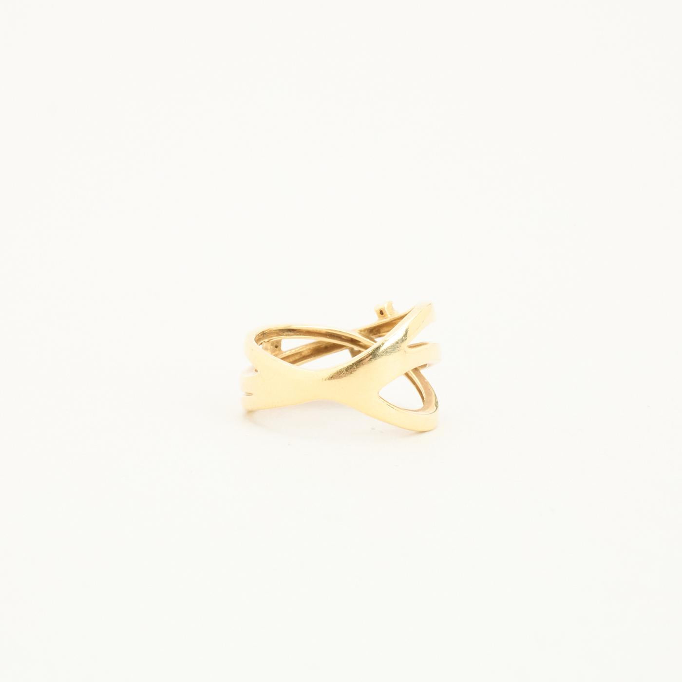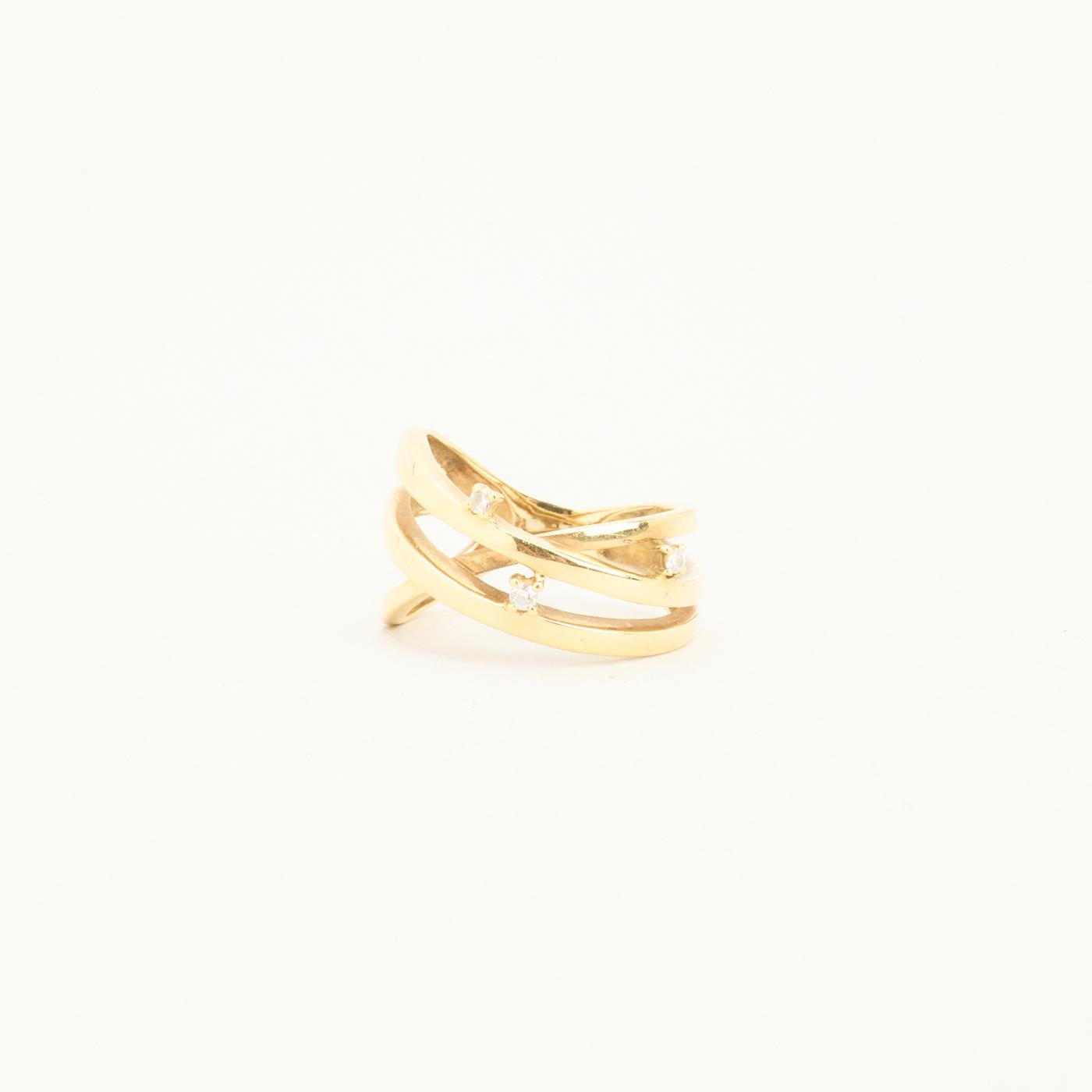 Crossoverring i 14K guld med en diamant (0.05 ct), Str. 50