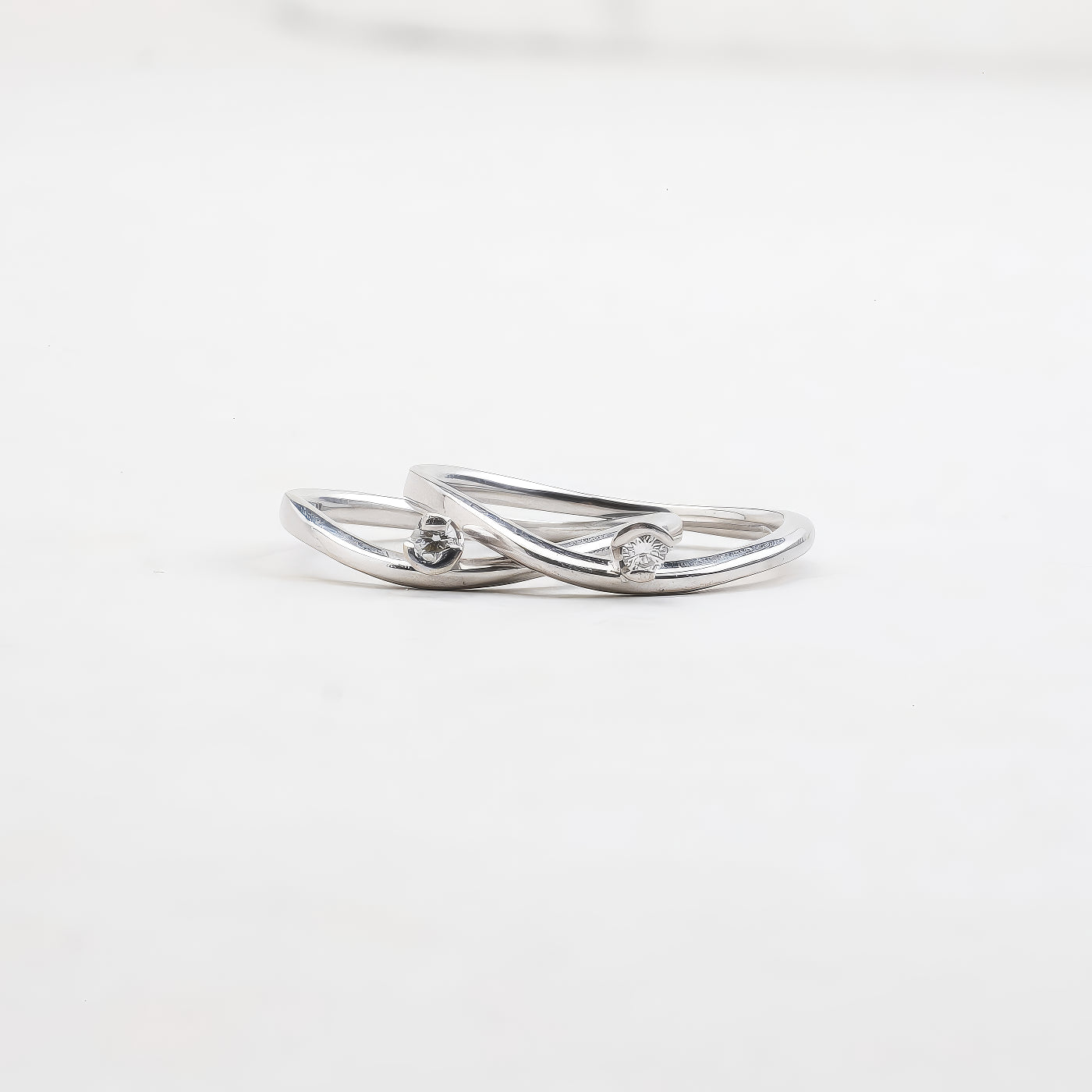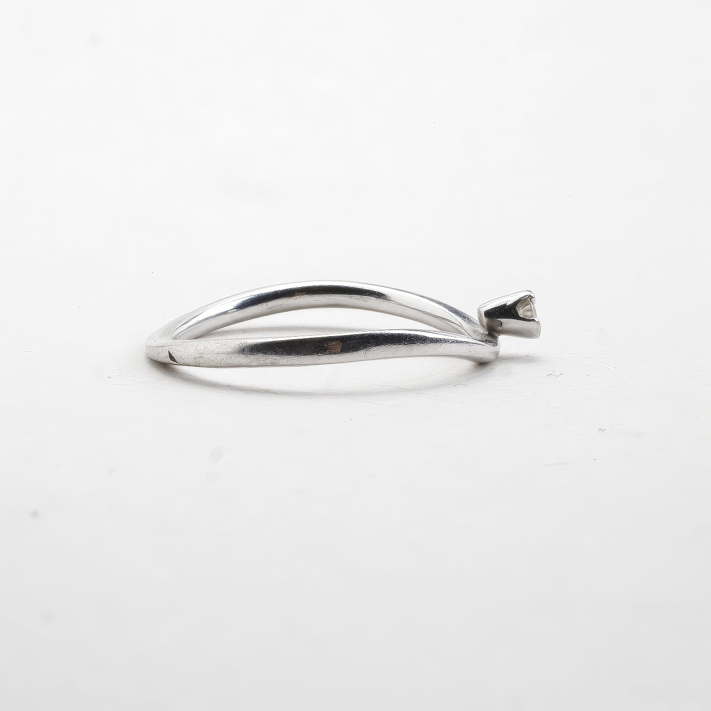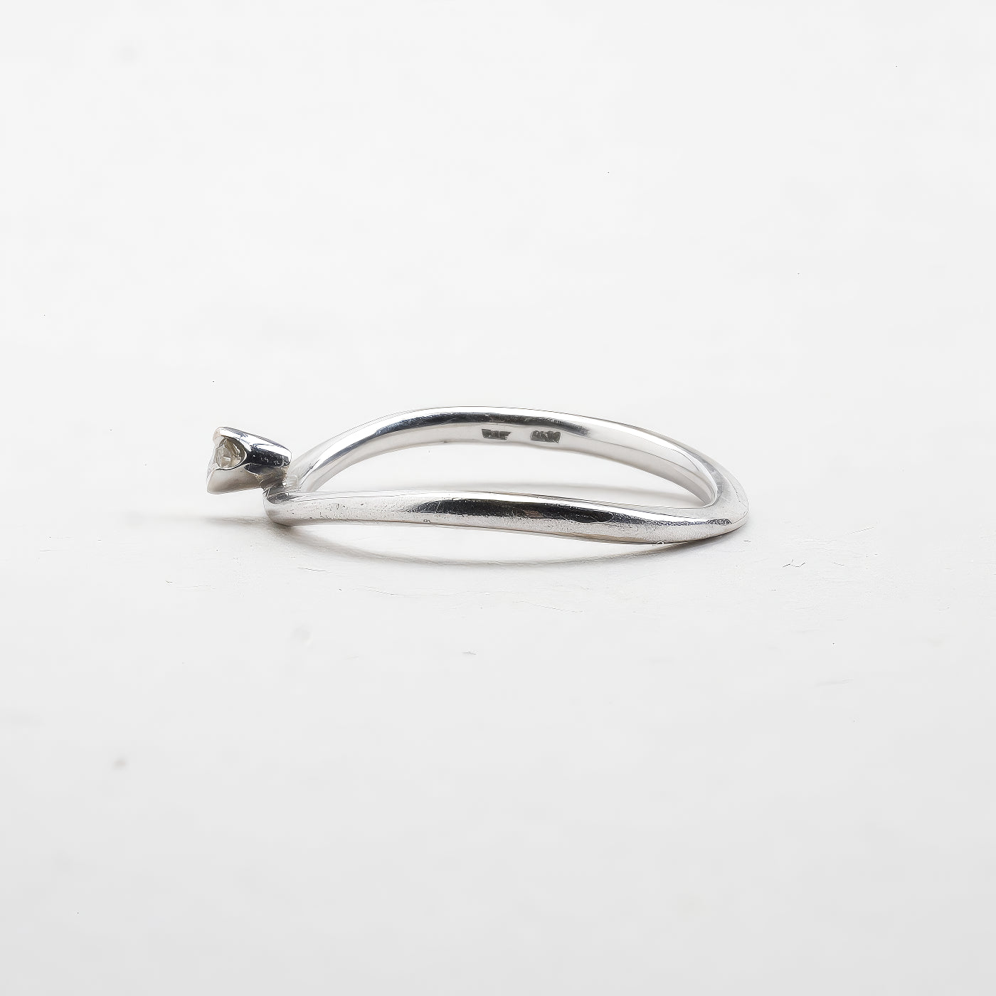 Crossoverring i 14K hvidguld med en diamant (0.07 ct), Str. 54