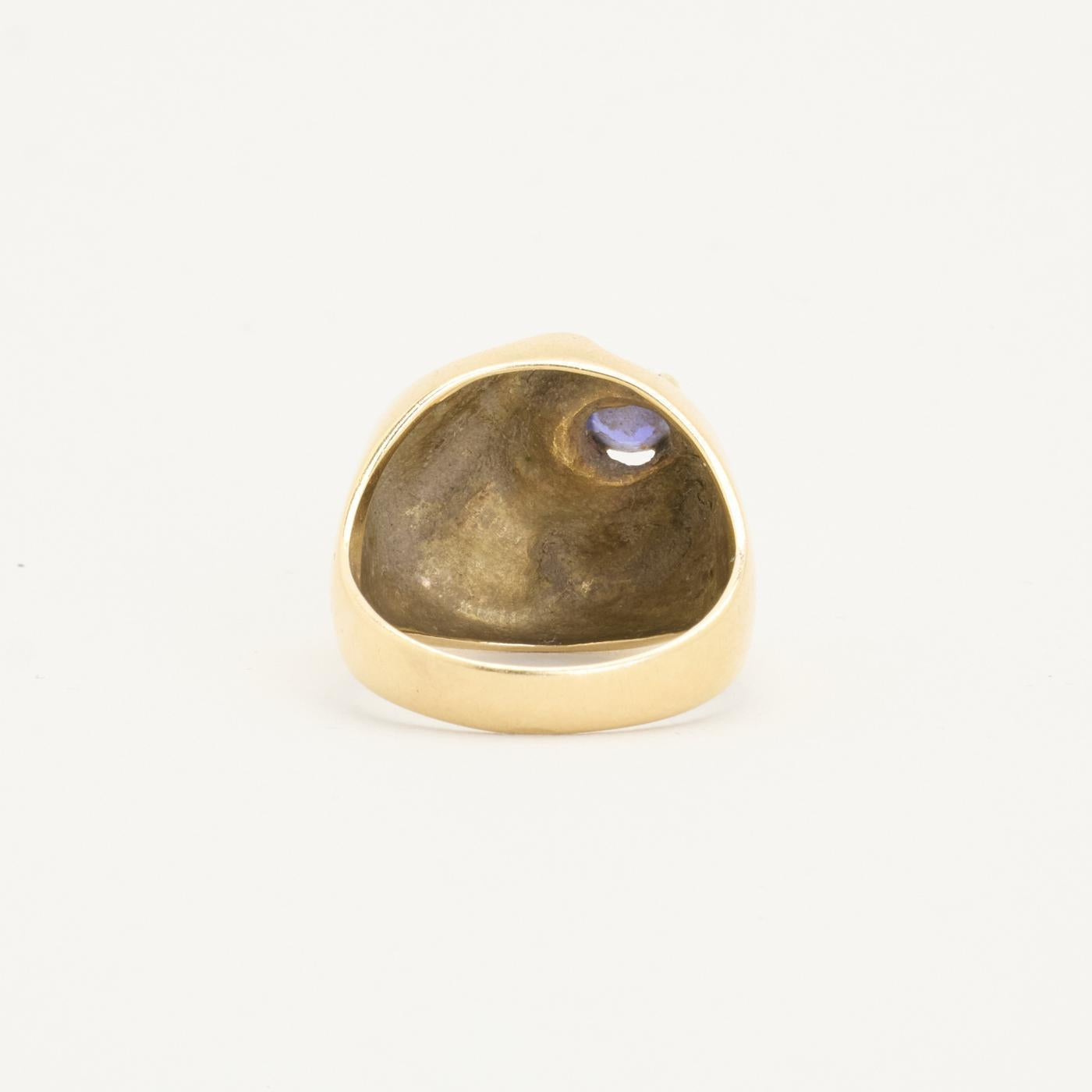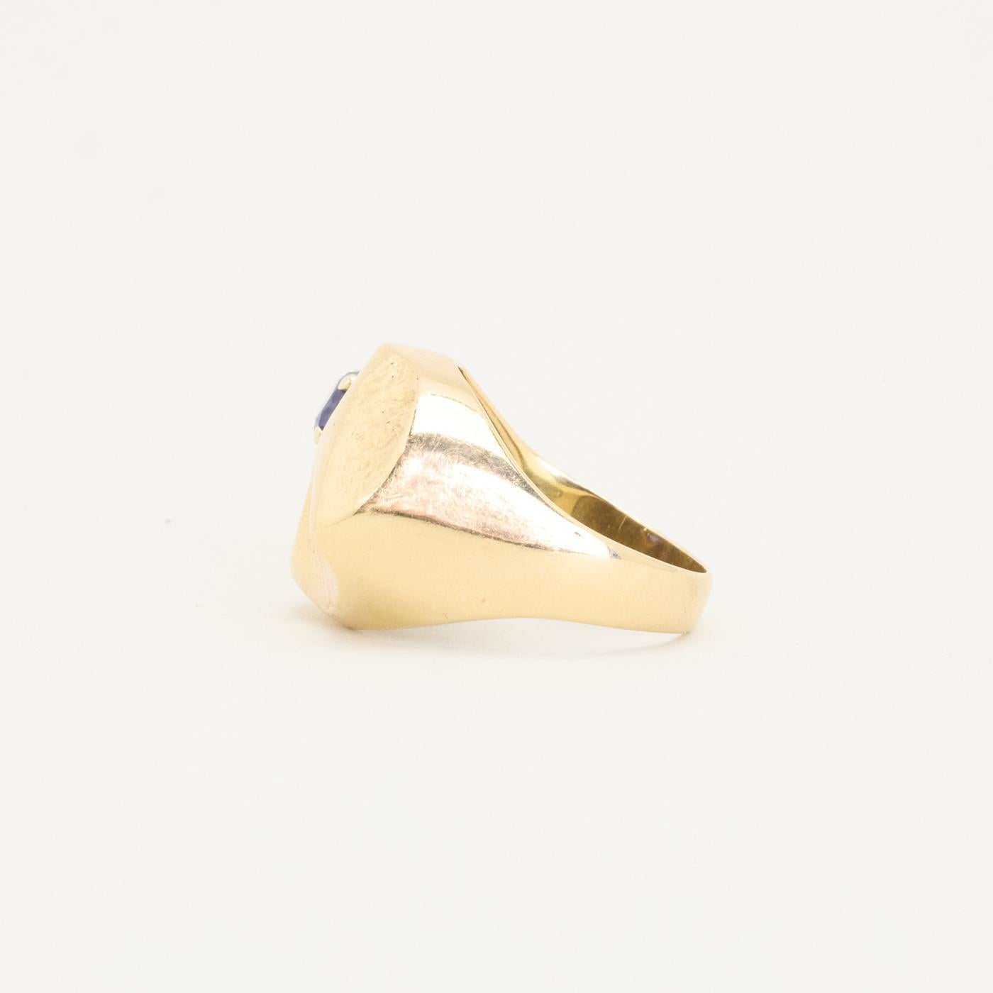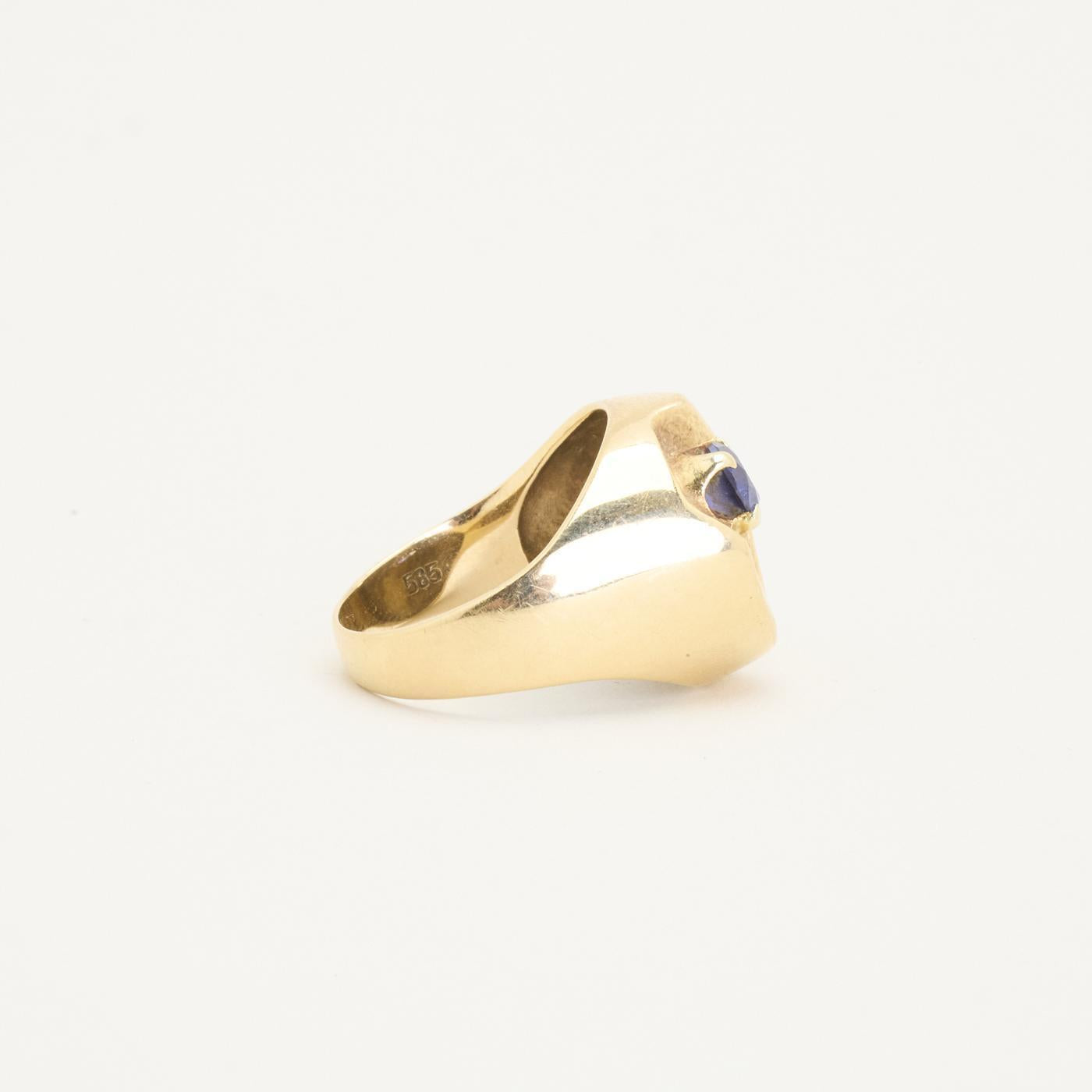 Signetring i 14 karat med en Syntetisk safir str. 56