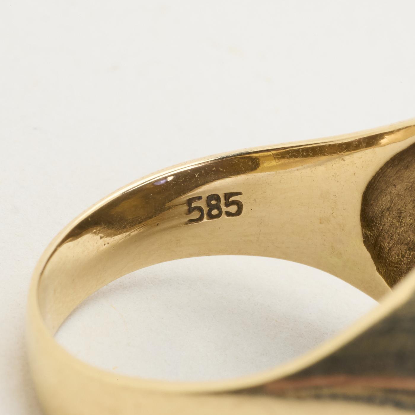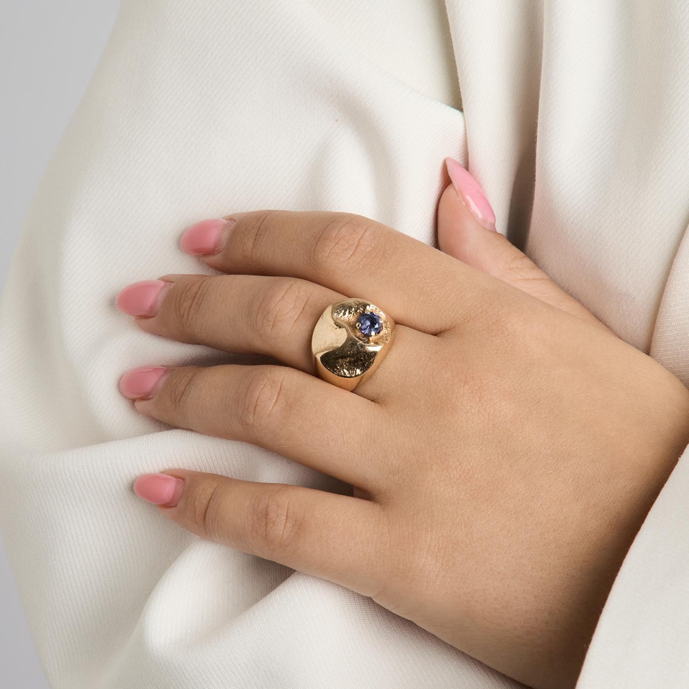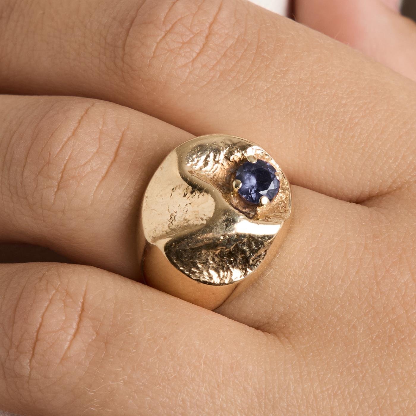 Signetring i 14 karat med en Syntetisk safir str. 56