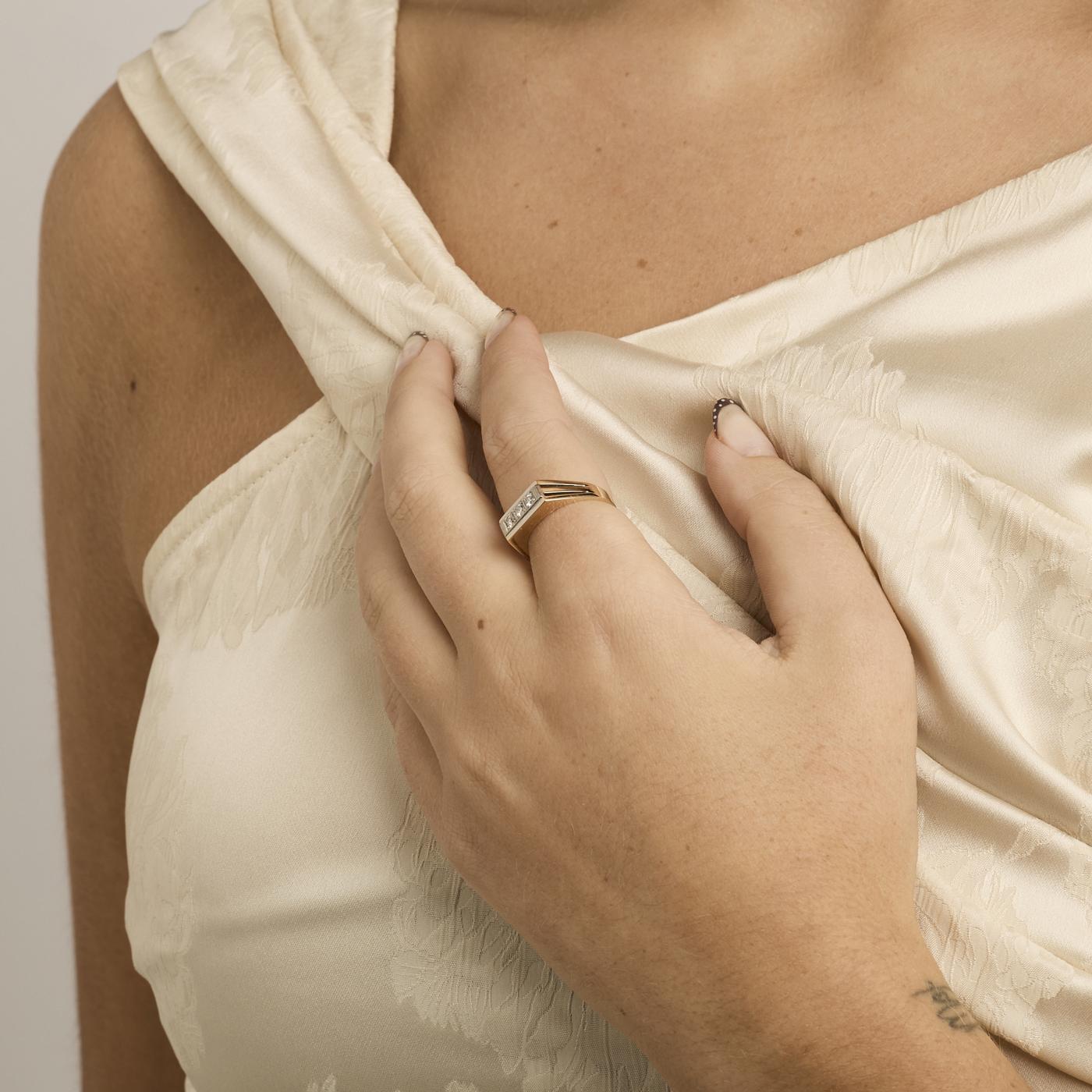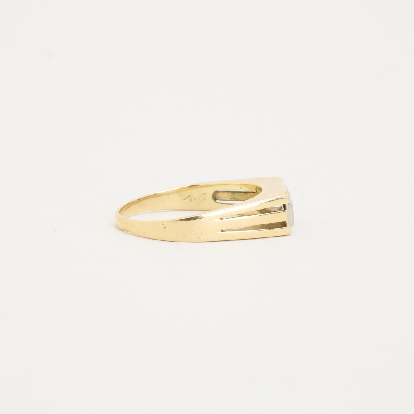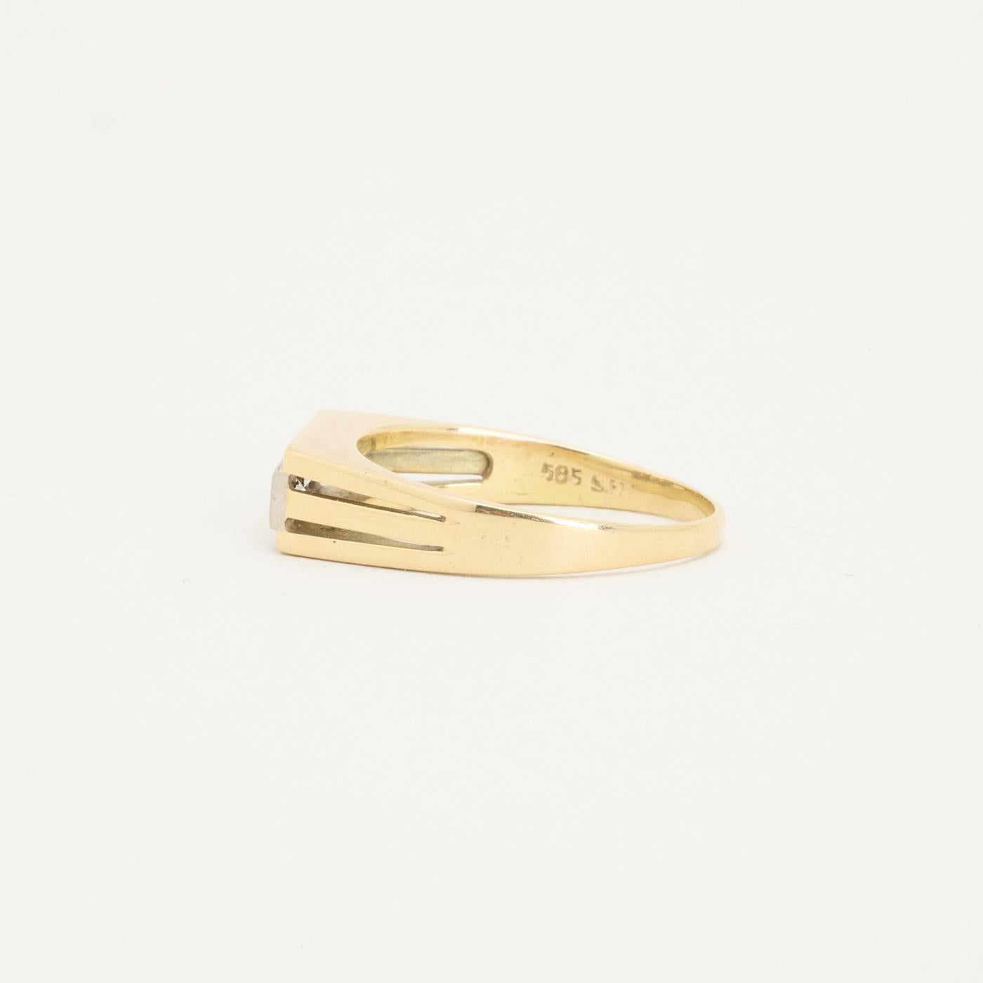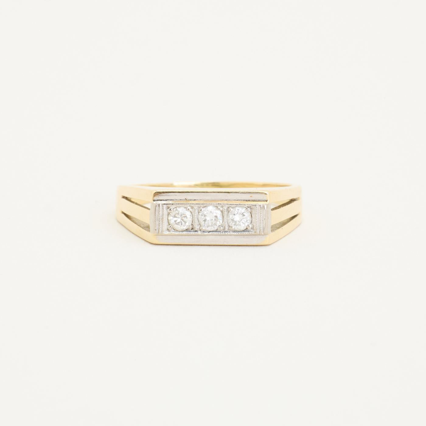 Trestensring i 14K guld og hvidguld, med diamanter (0,11 ct), Str. 55