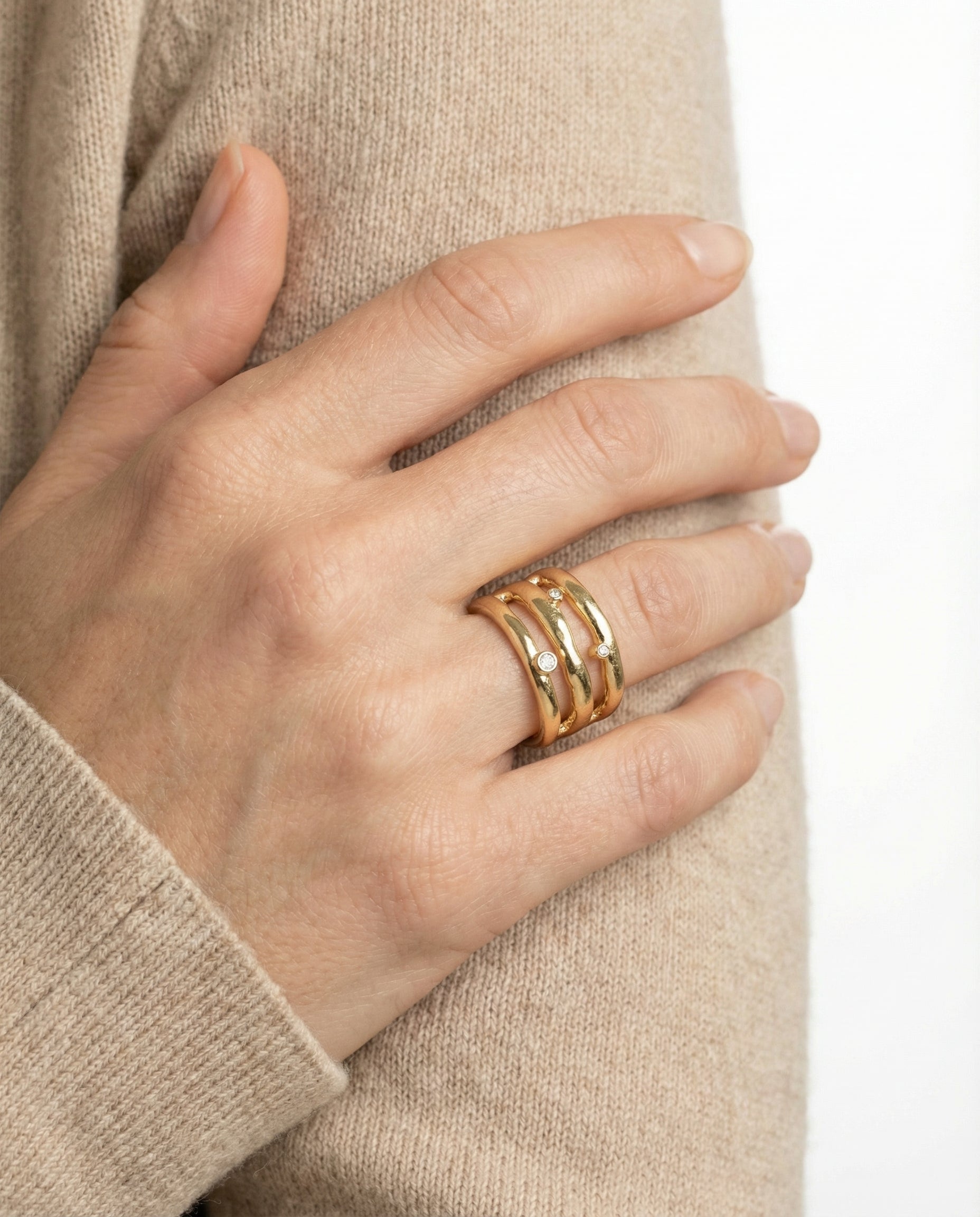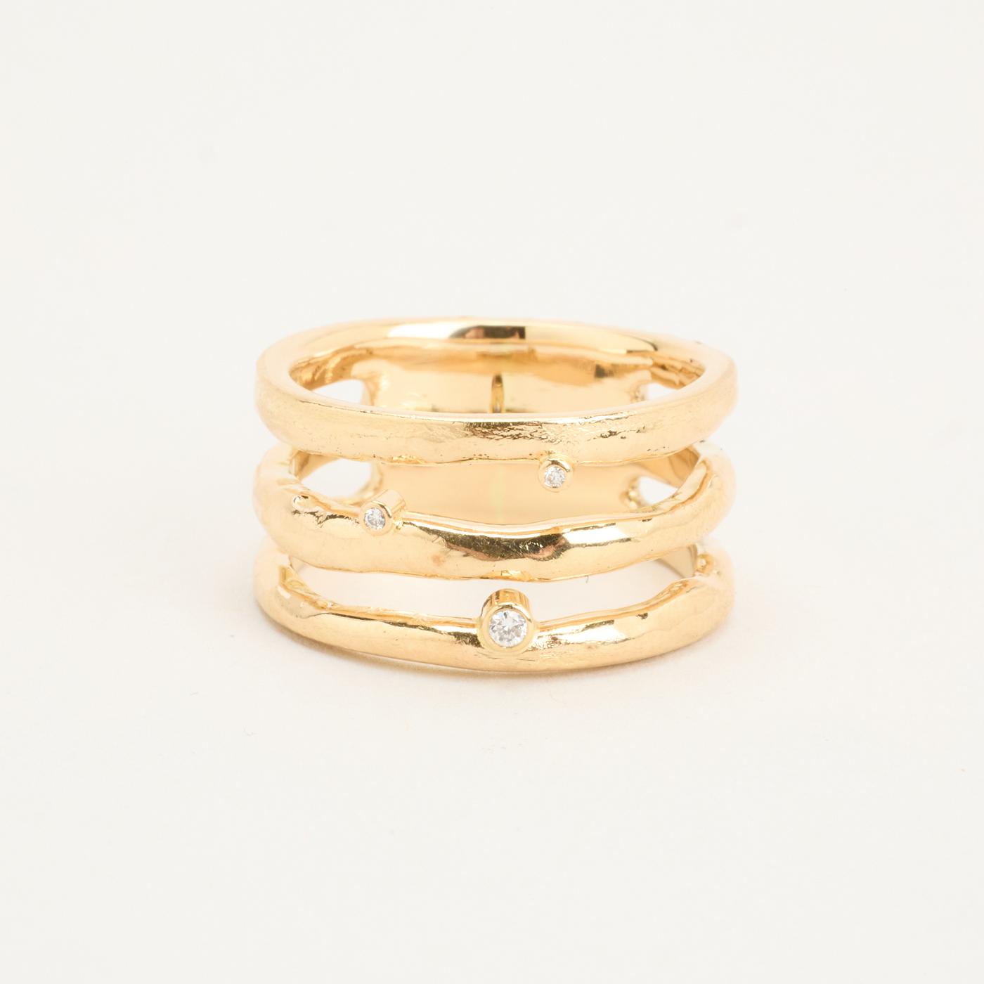 Crossoverring i 14K guld med diamanter (0.03 ct), Str. 56