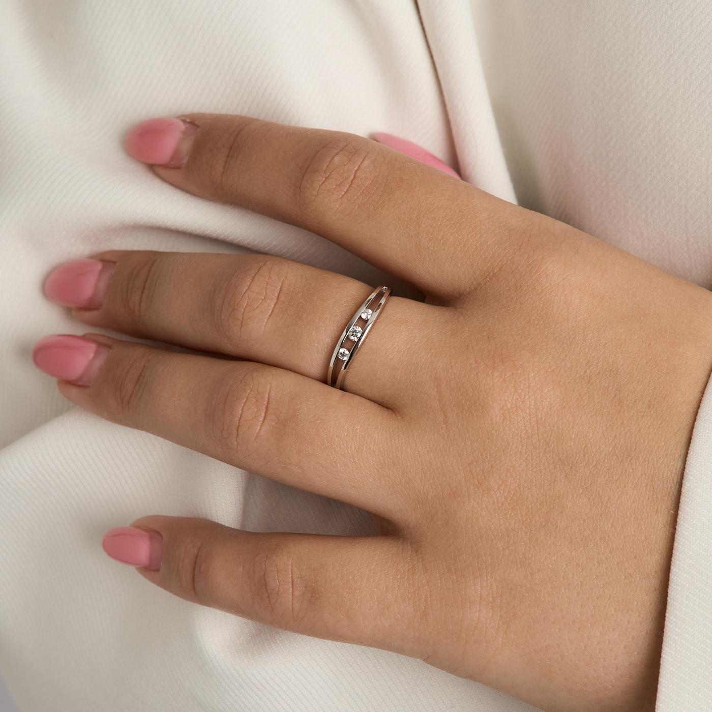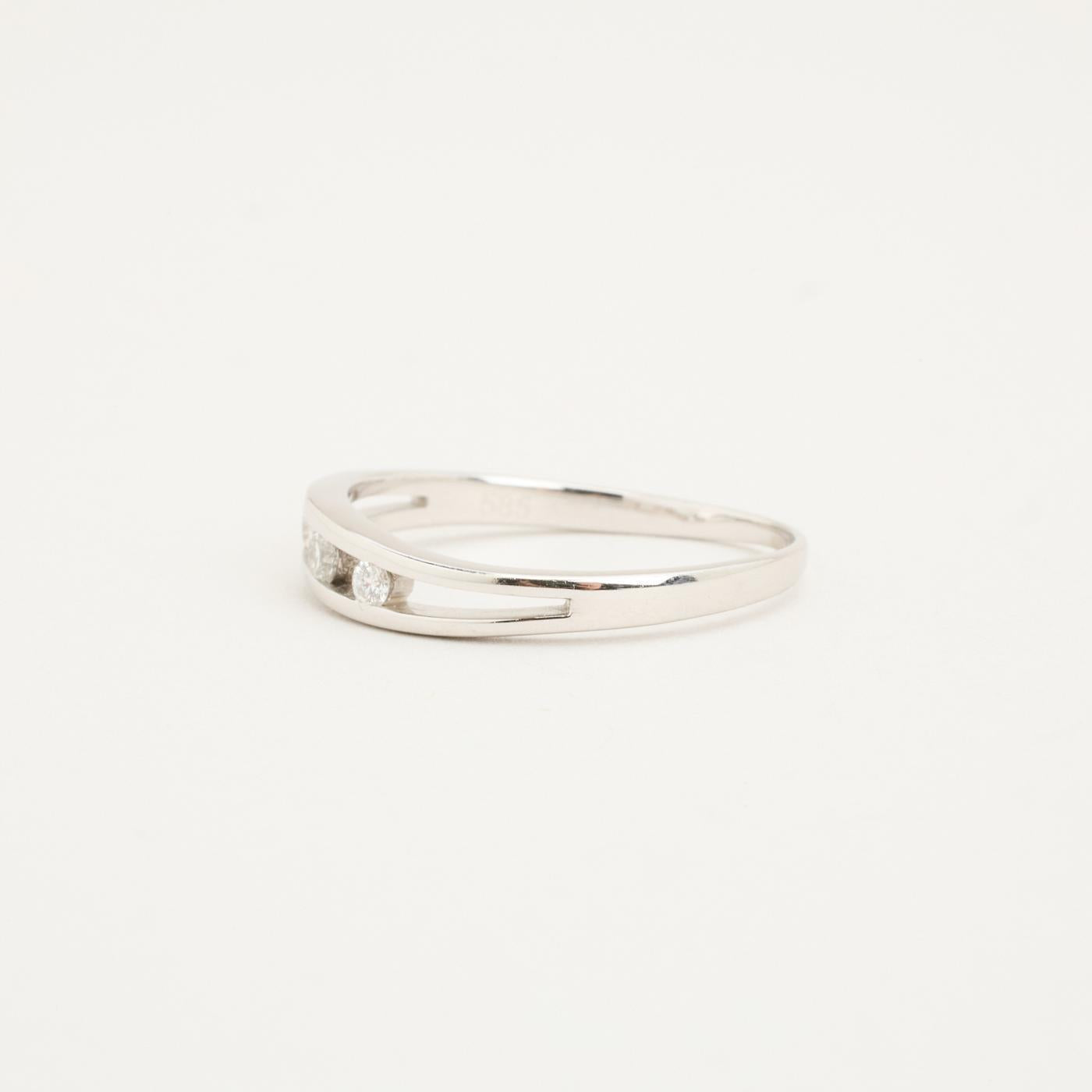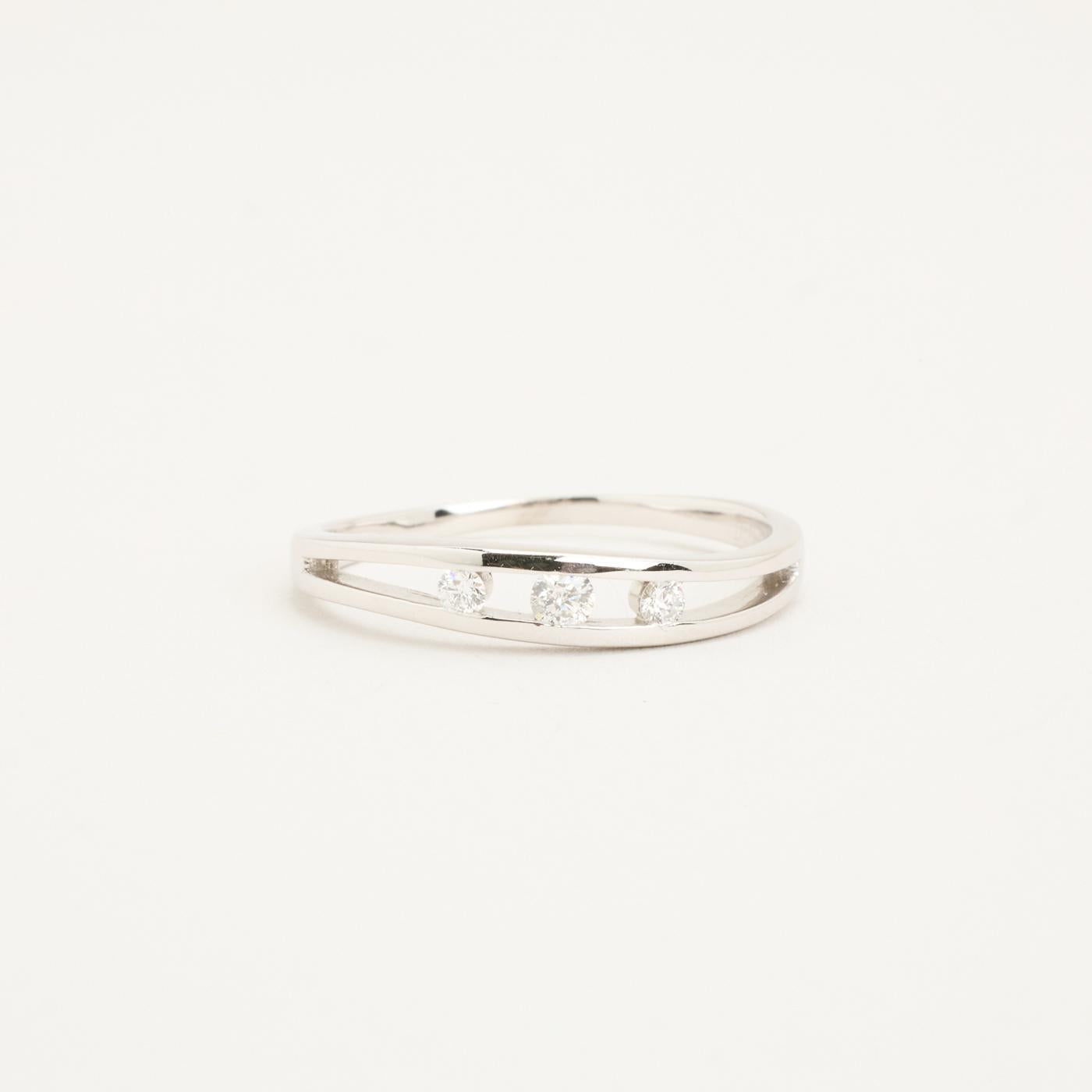 Trestensring i 14K hvidguld med diamanter (0.13 ct), Str. 56