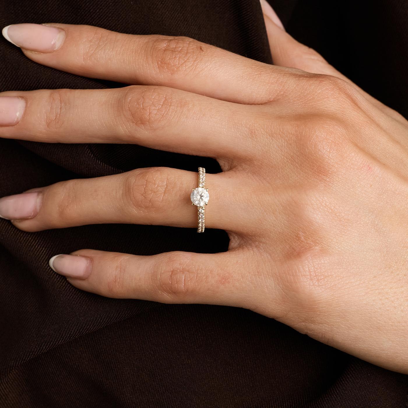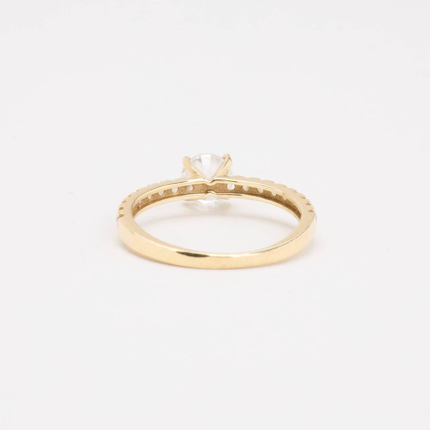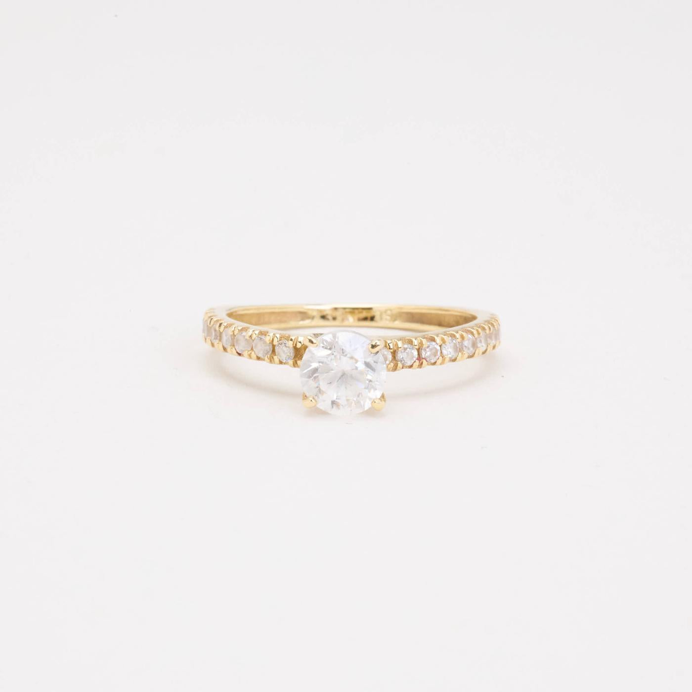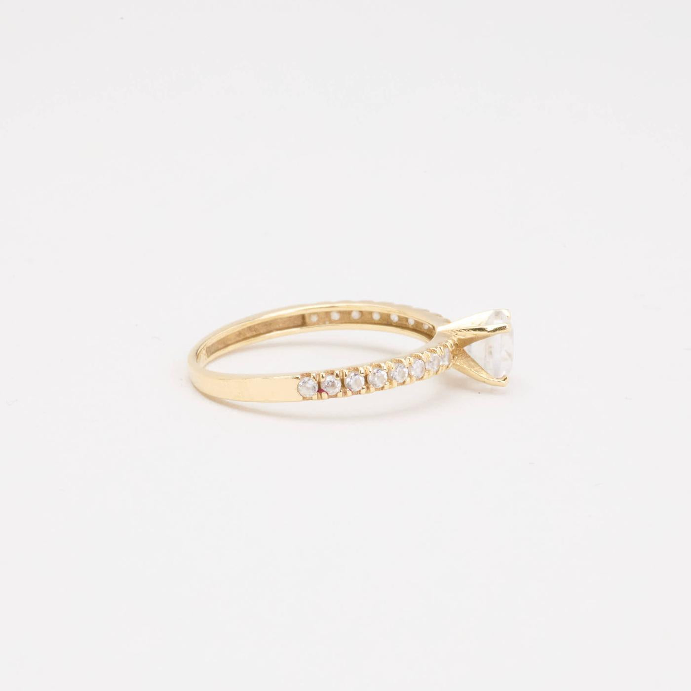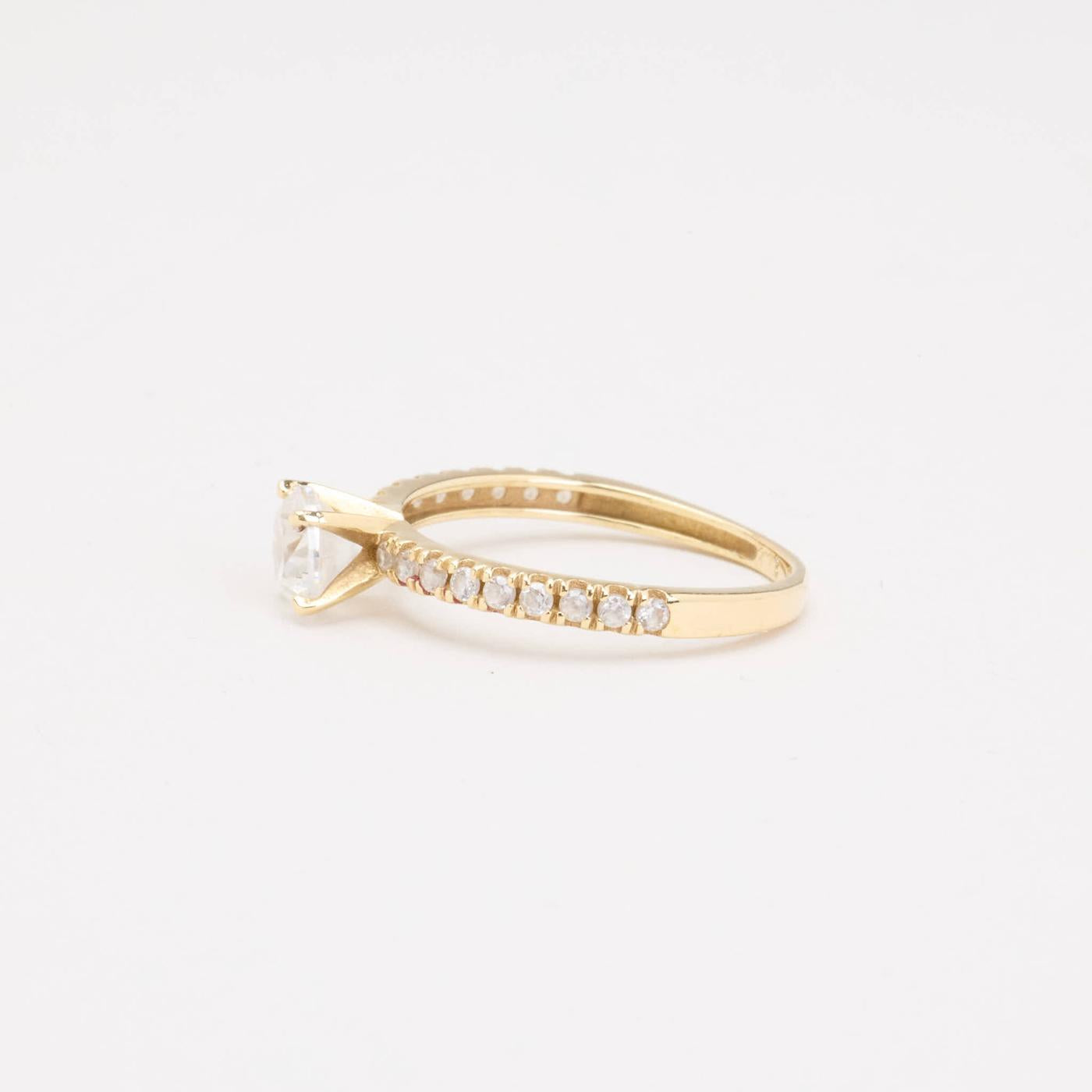 Solitairering i 8K guld med hvide sten, Str. 48