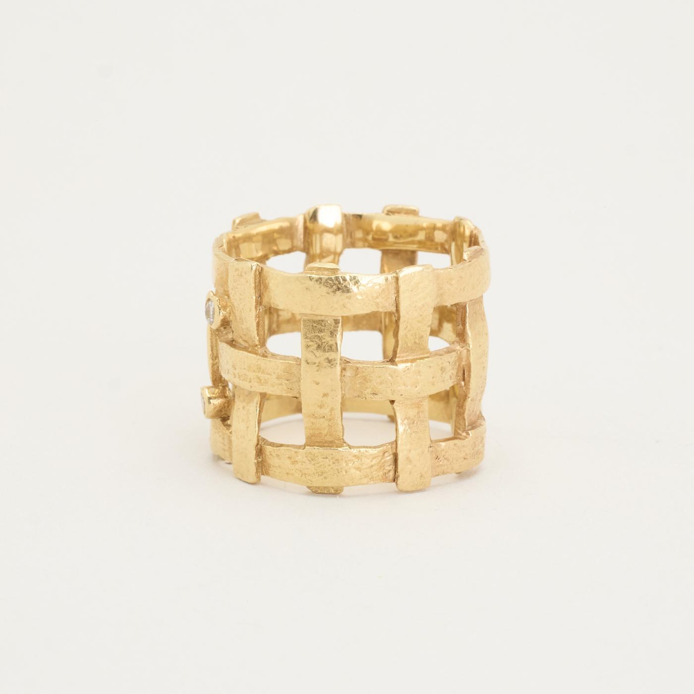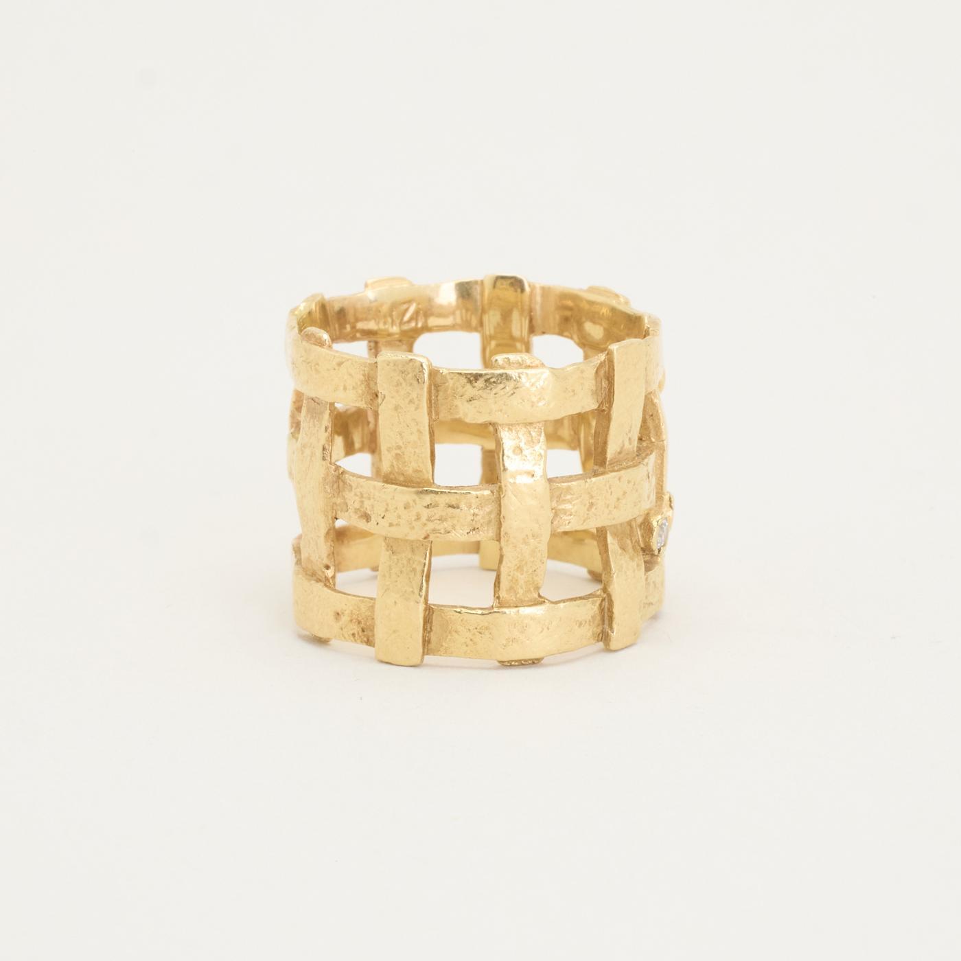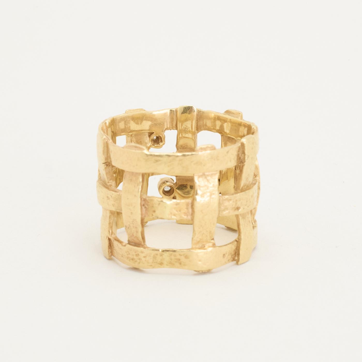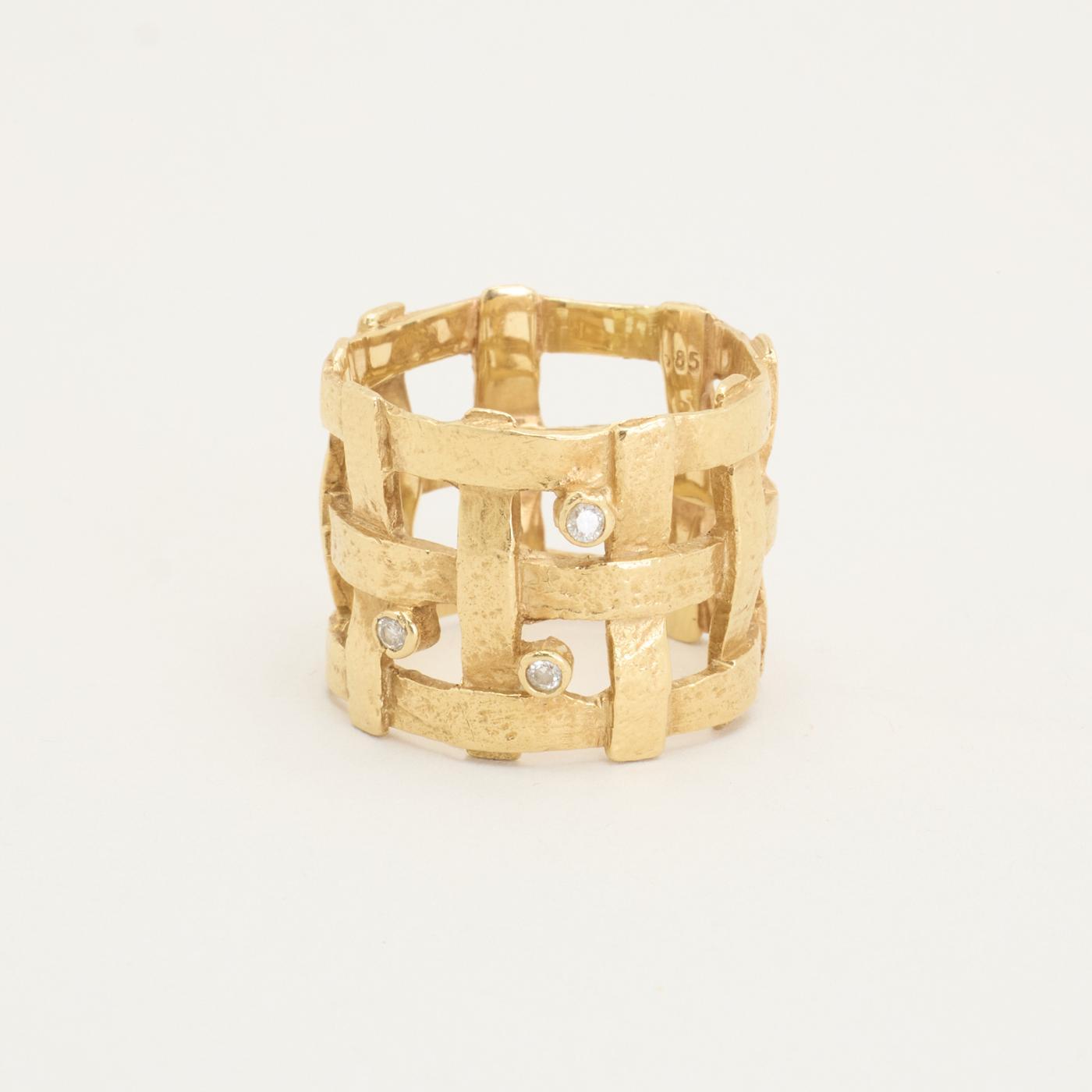 Statementring i 14K guld, med diamanter (0,03 ct), Str. 51