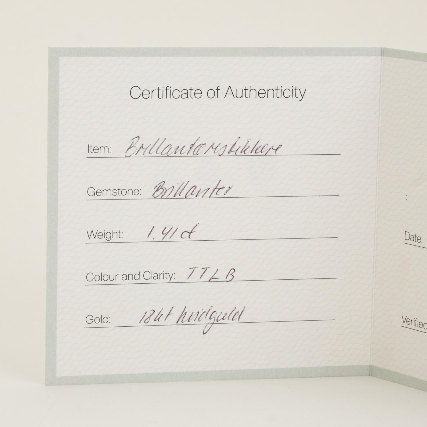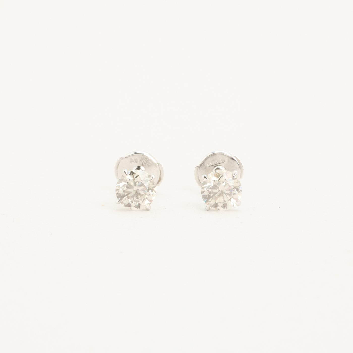 Diamantbørsen solitair øreringe i 18K hvidguld med diamanter (1.41 ct), 0.55 cm