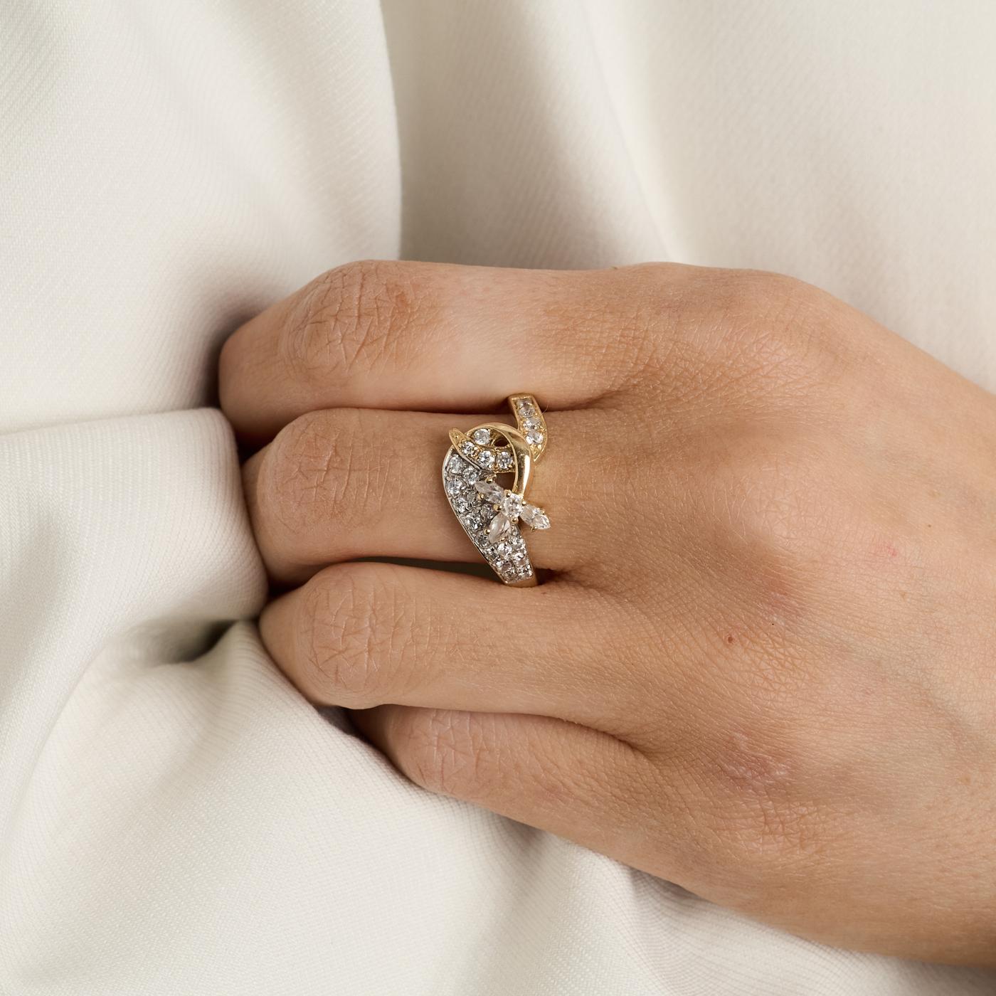 Crossoverring i 14 karat med en Zirkonia str. 58