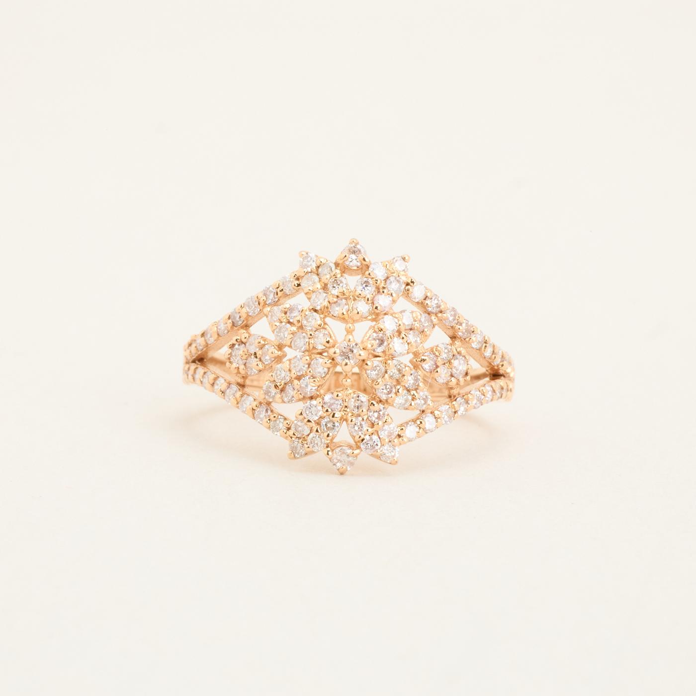 Blomsterring i 14K roséguld med diamanter (0.7 ct), Str. 53