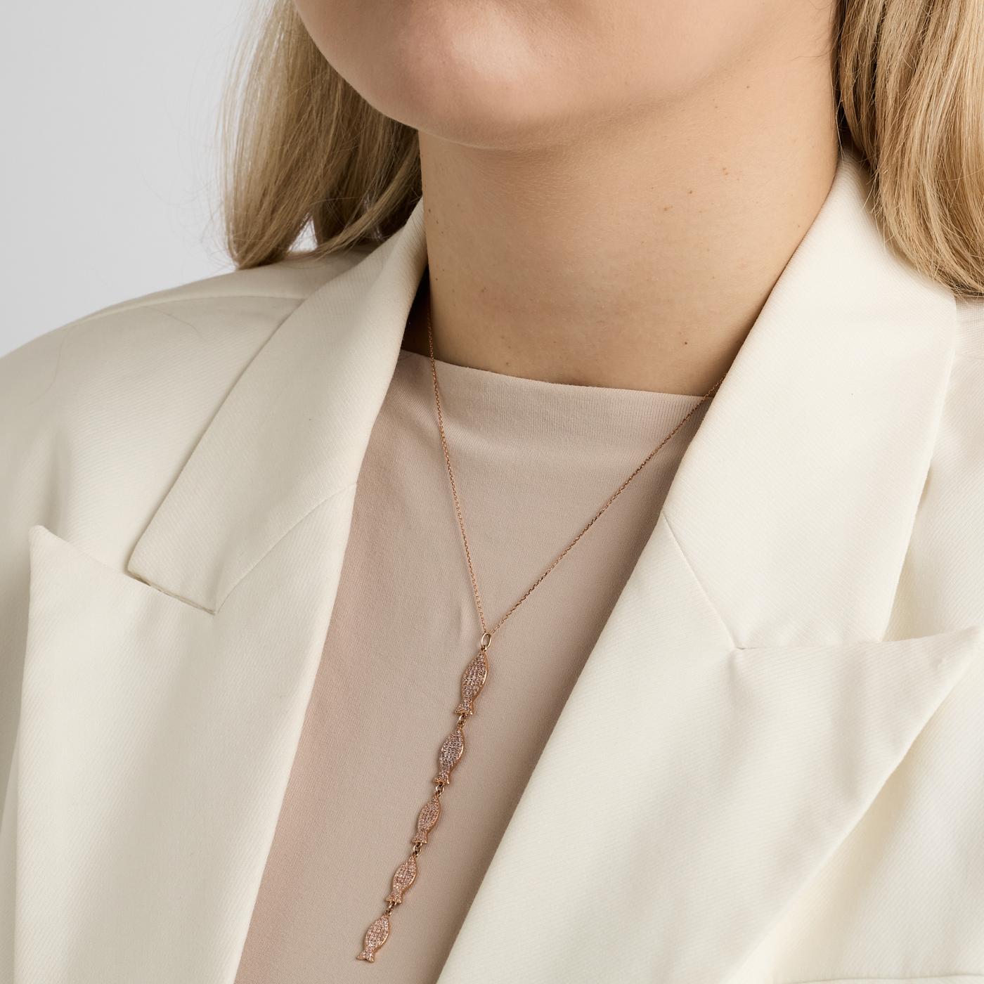 Teardrop halskæde med ankerkæde i 14K rosenguld med diamanter (1.13 ct), 44 cm