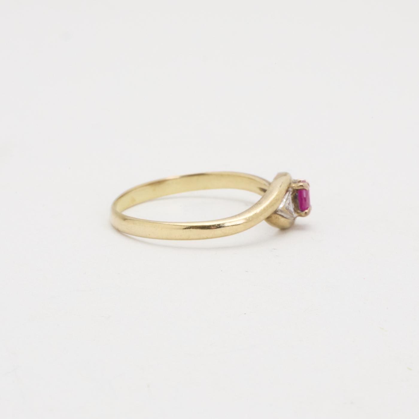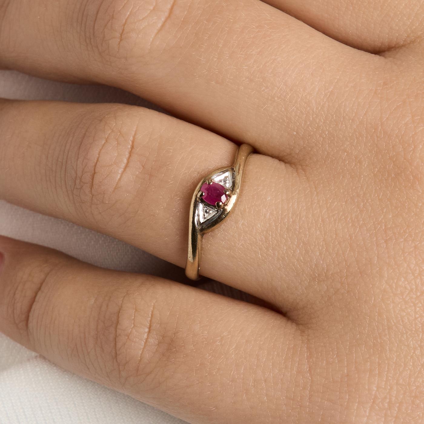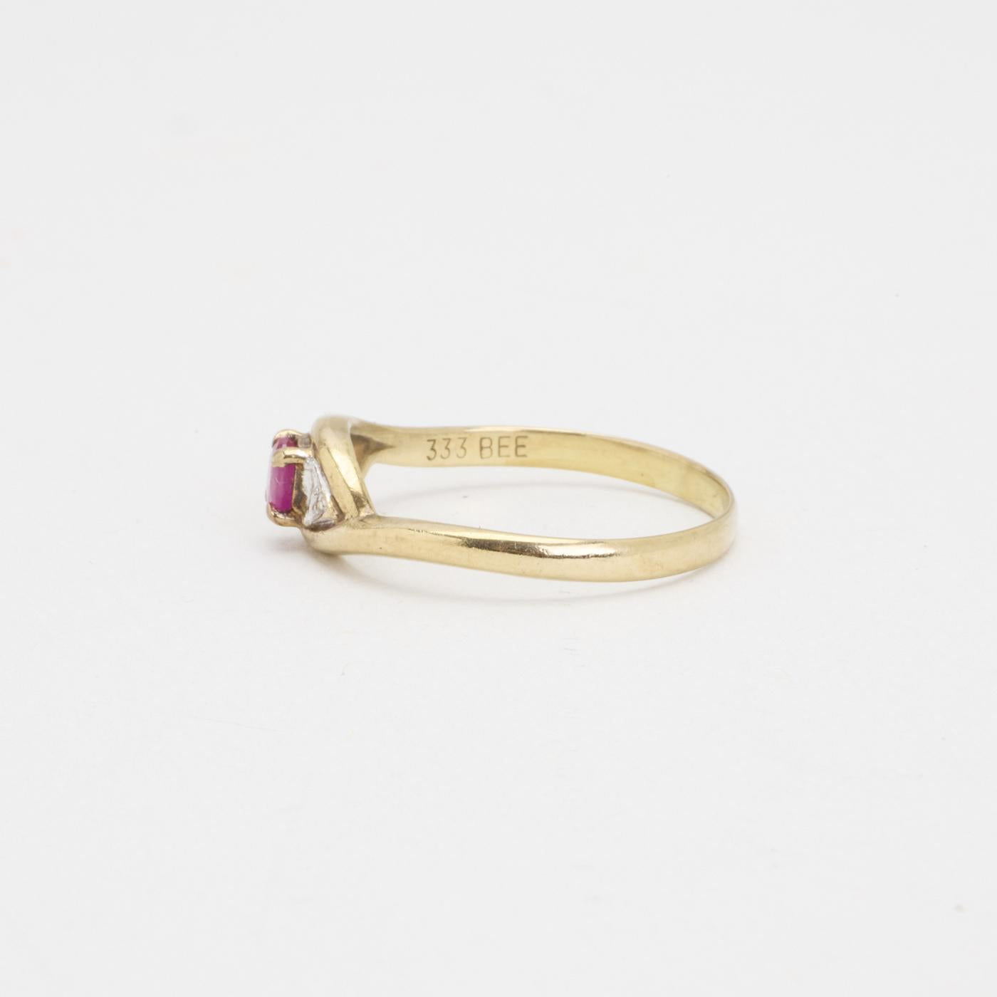 Trestensring i 8K guld med en syntetisk rubin og hvide sten, Str. 55