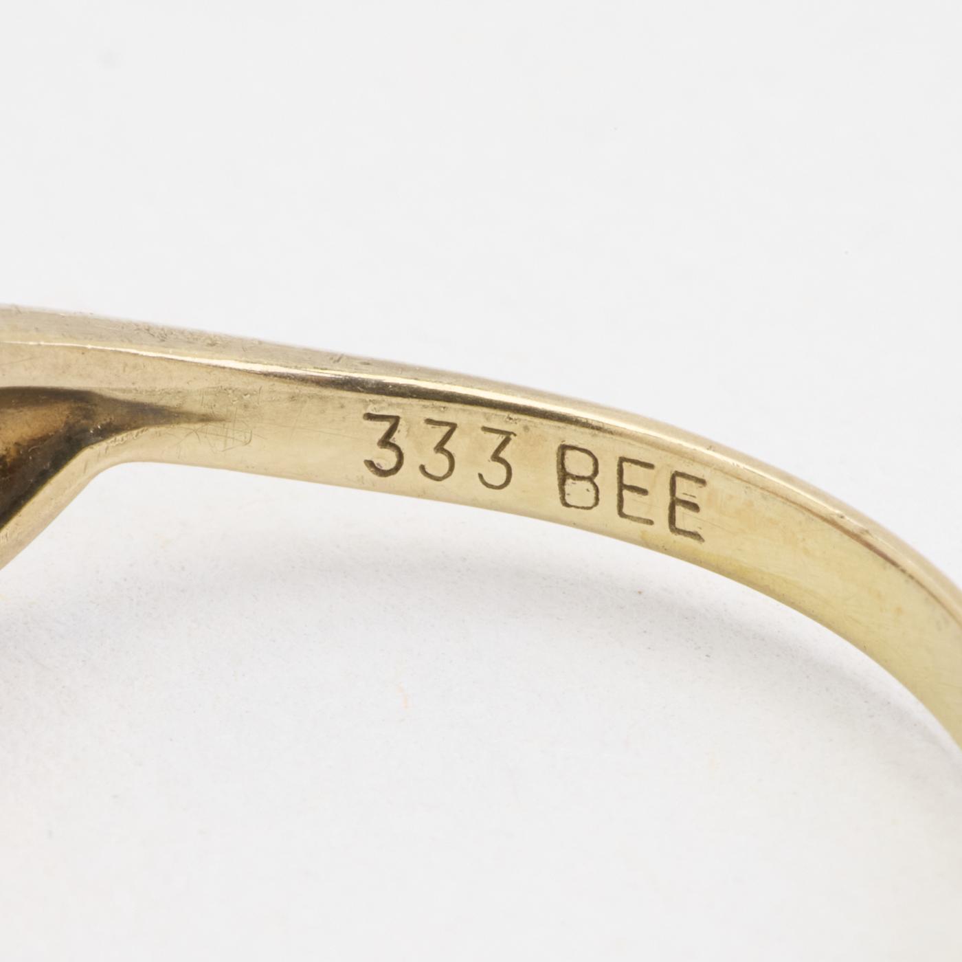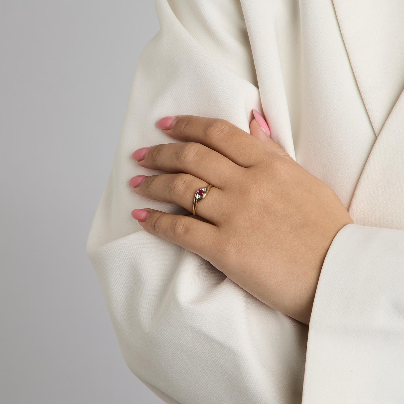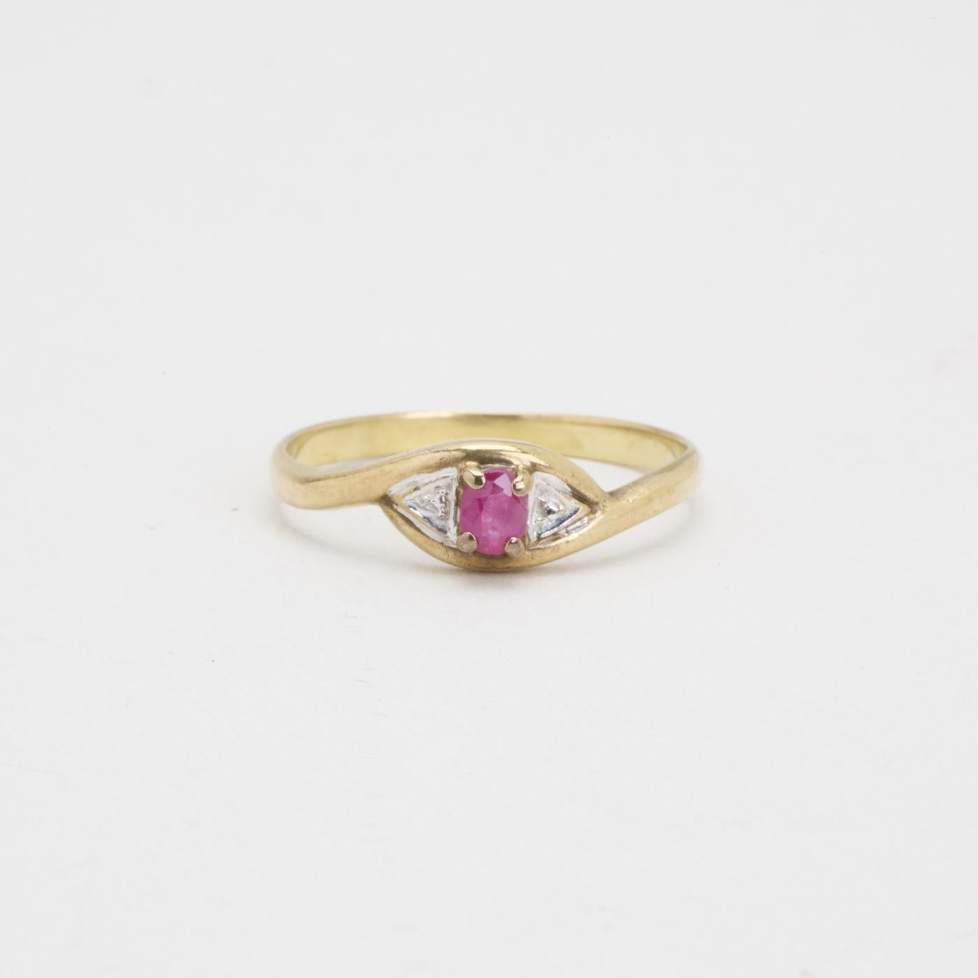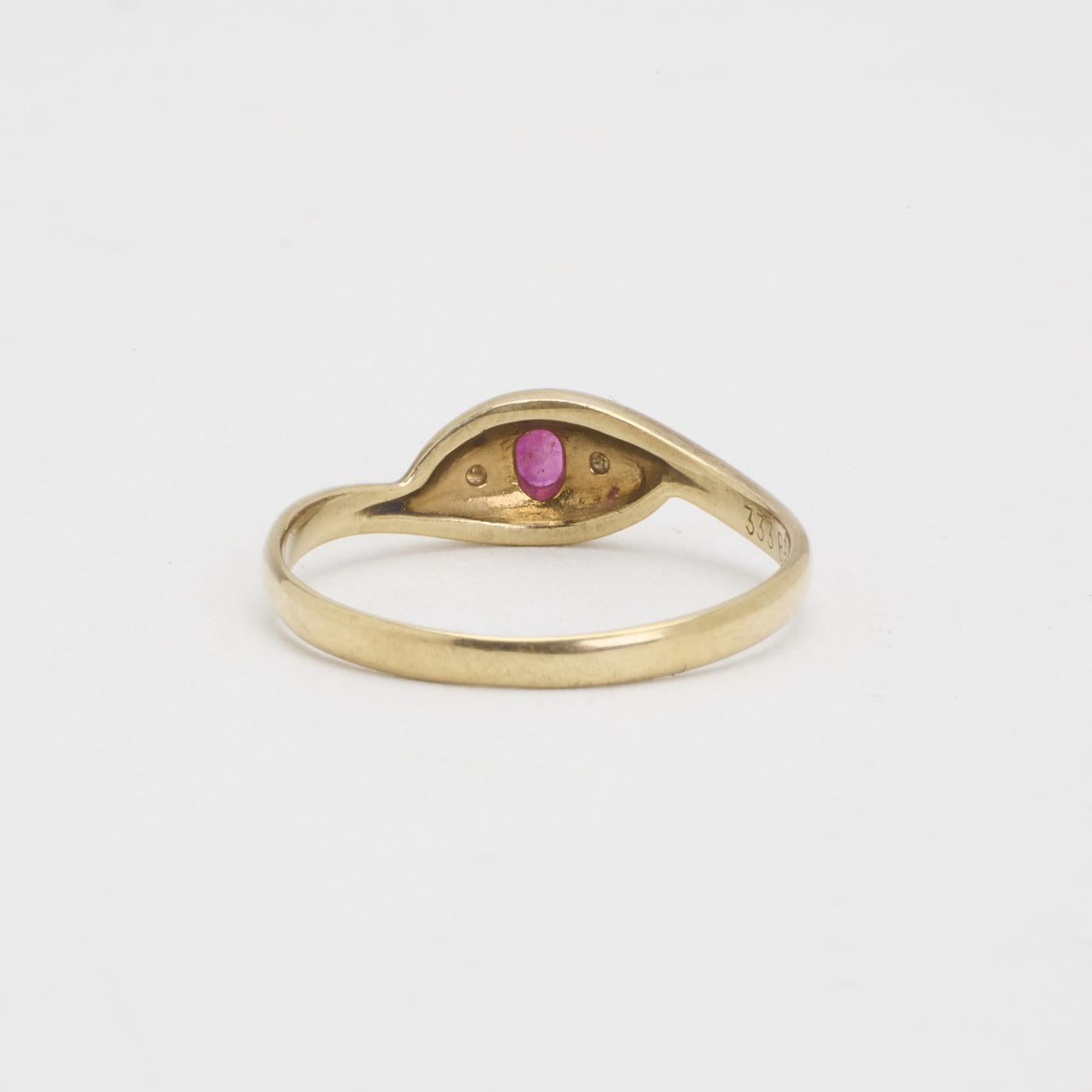 Trestensring i 8K guld med en syntetisk rubin og hvide sten, Str. 55