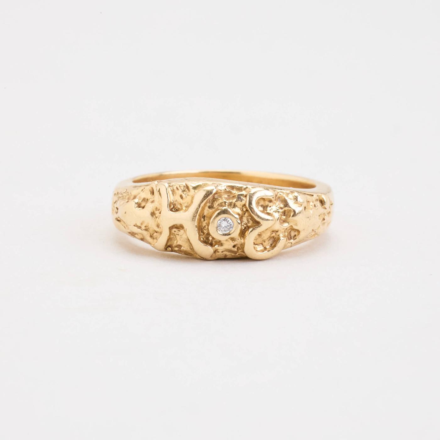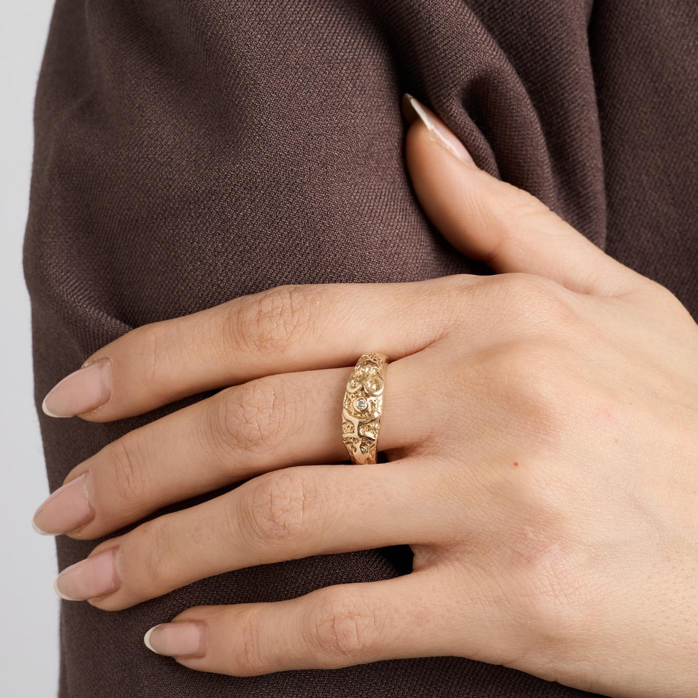 Gypsyring med diamant (0.01 ct) i 14 karat str. 55