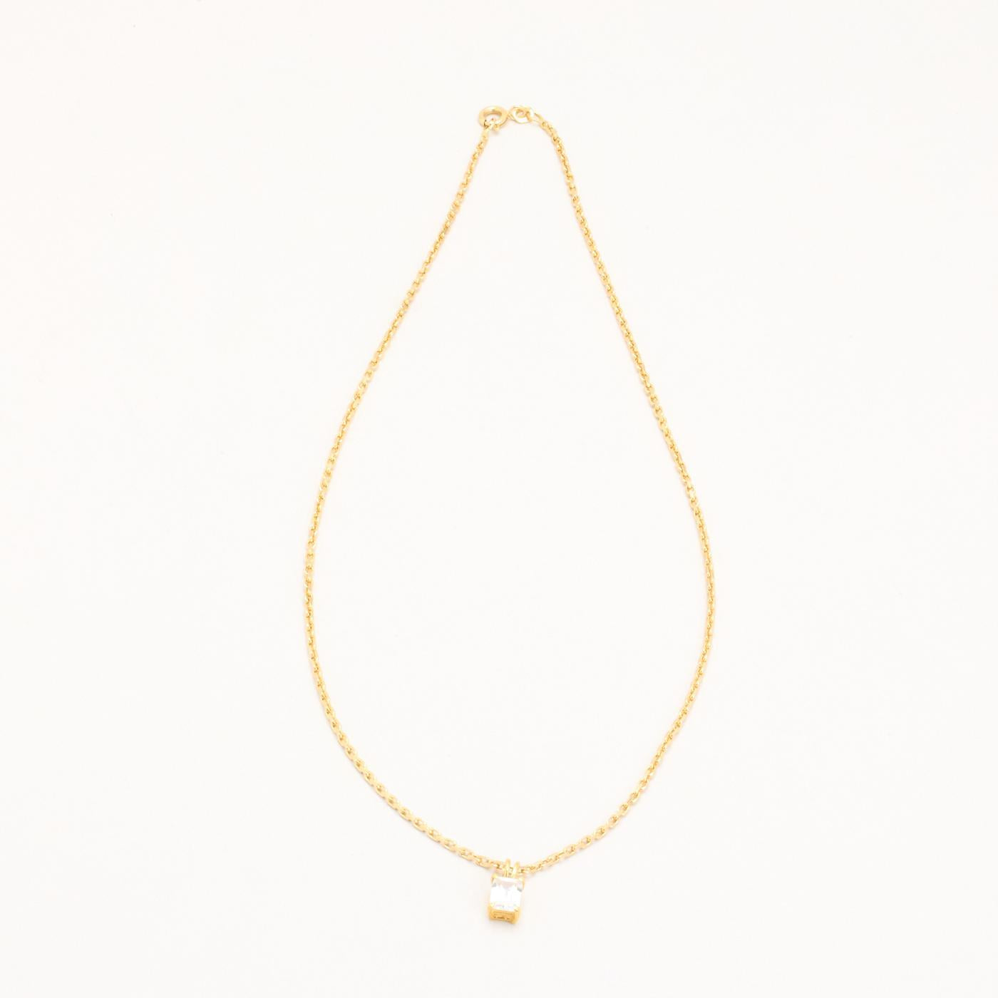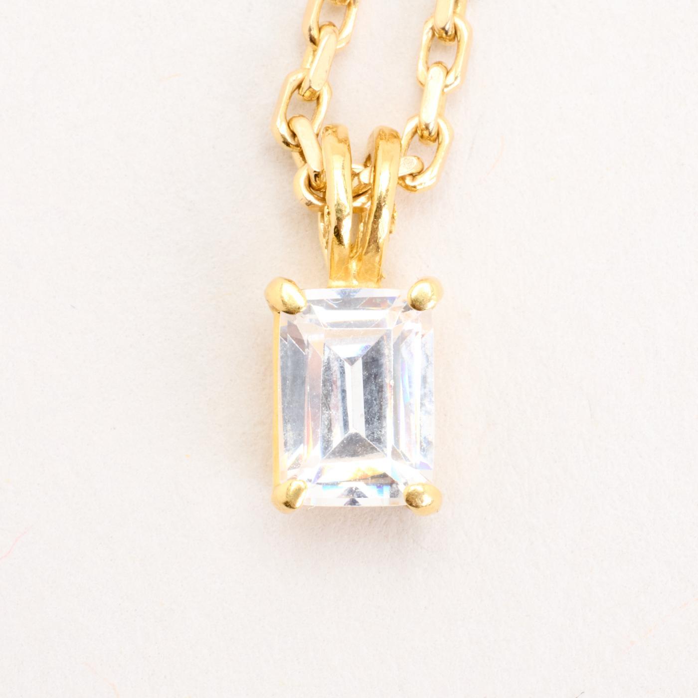 BNH solitaire halskæde i 14K guld med hvide sten, 44 cm
