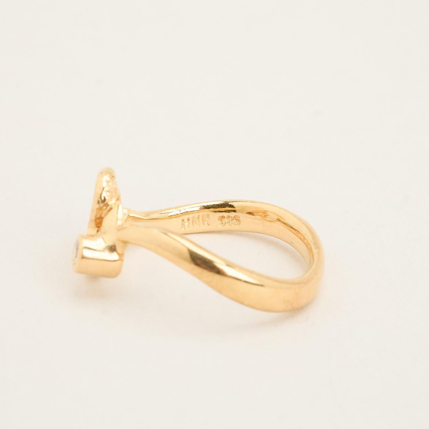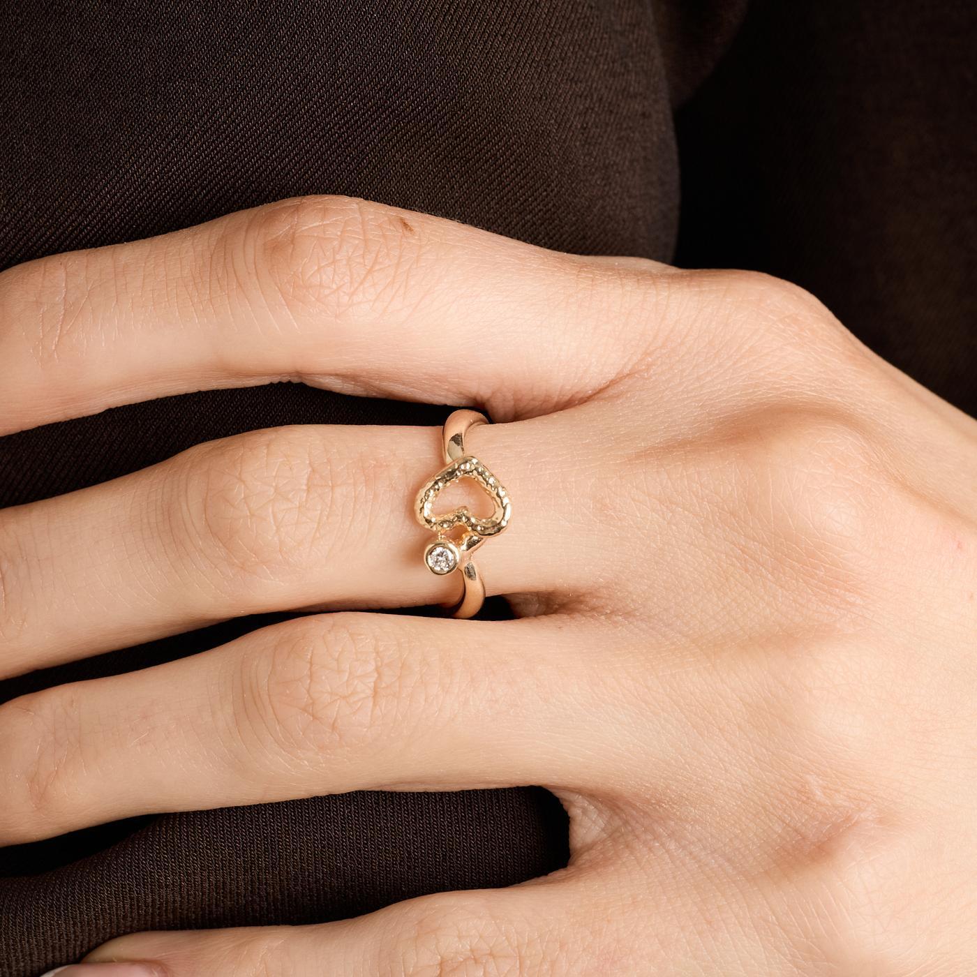 Hjertering med diamant (0.03 ct) i 14 karat str. 49
