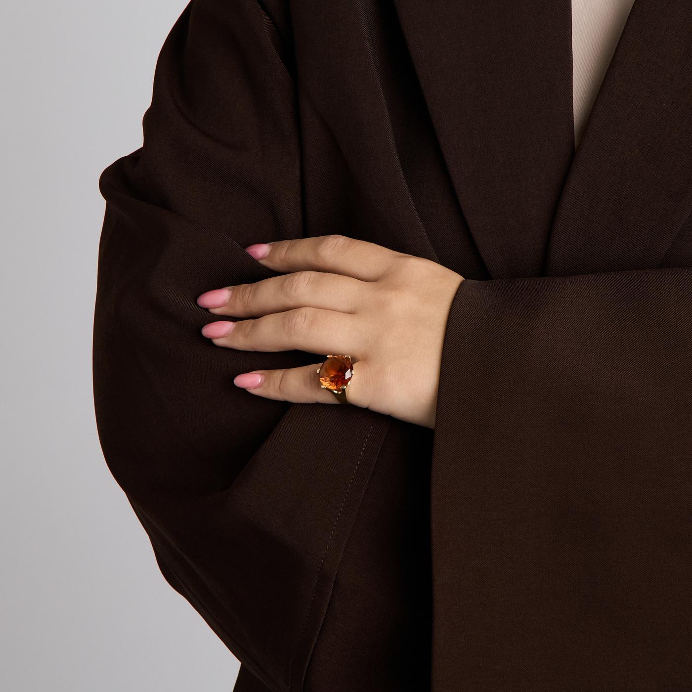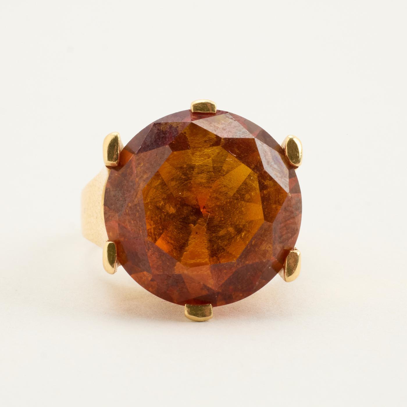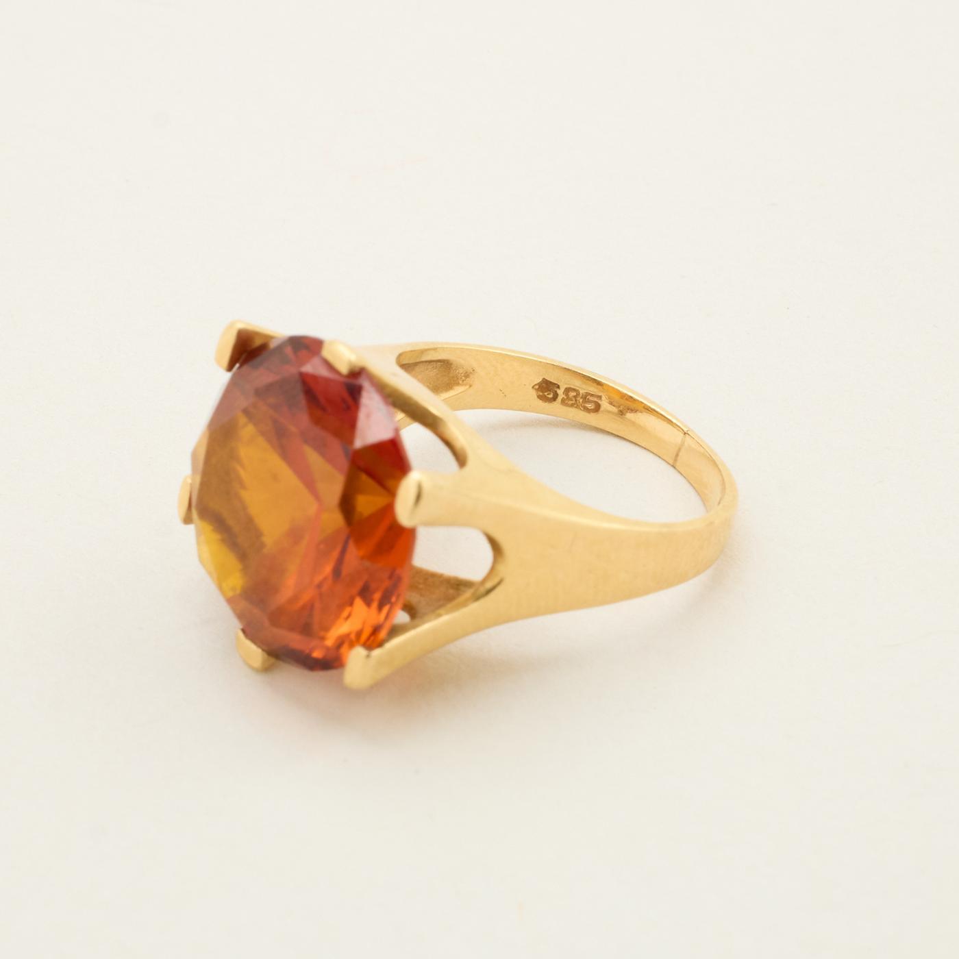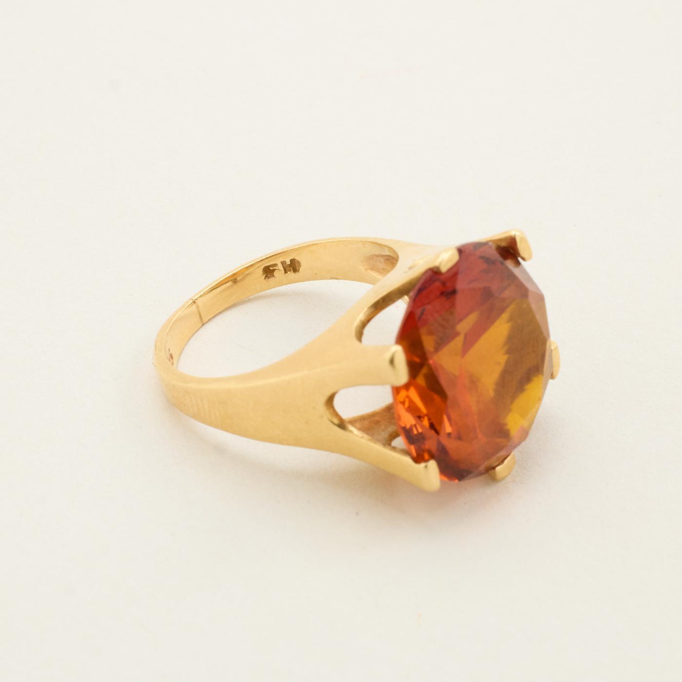 Cocktail ring i 14 kt guld med syntetisk Safir, str 50