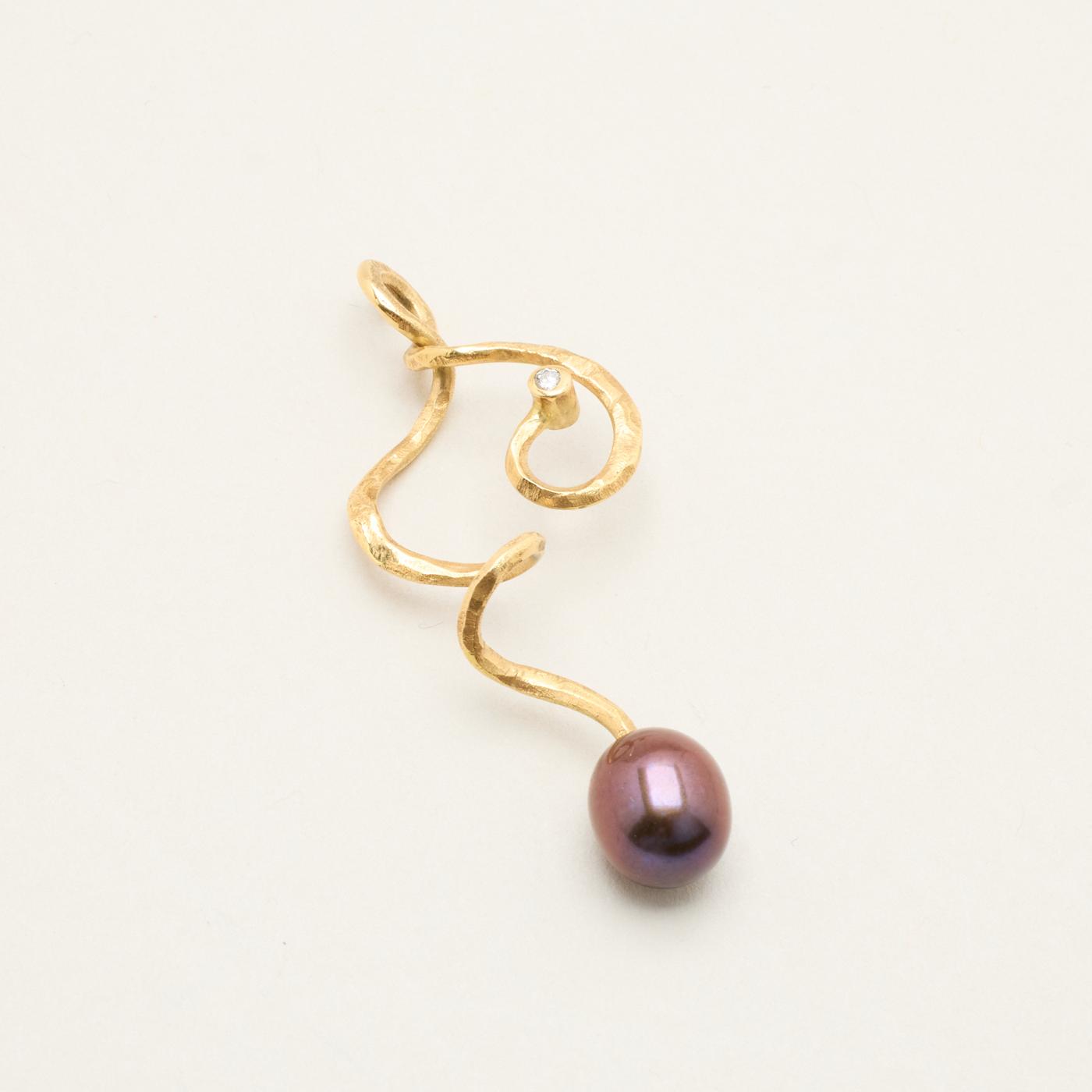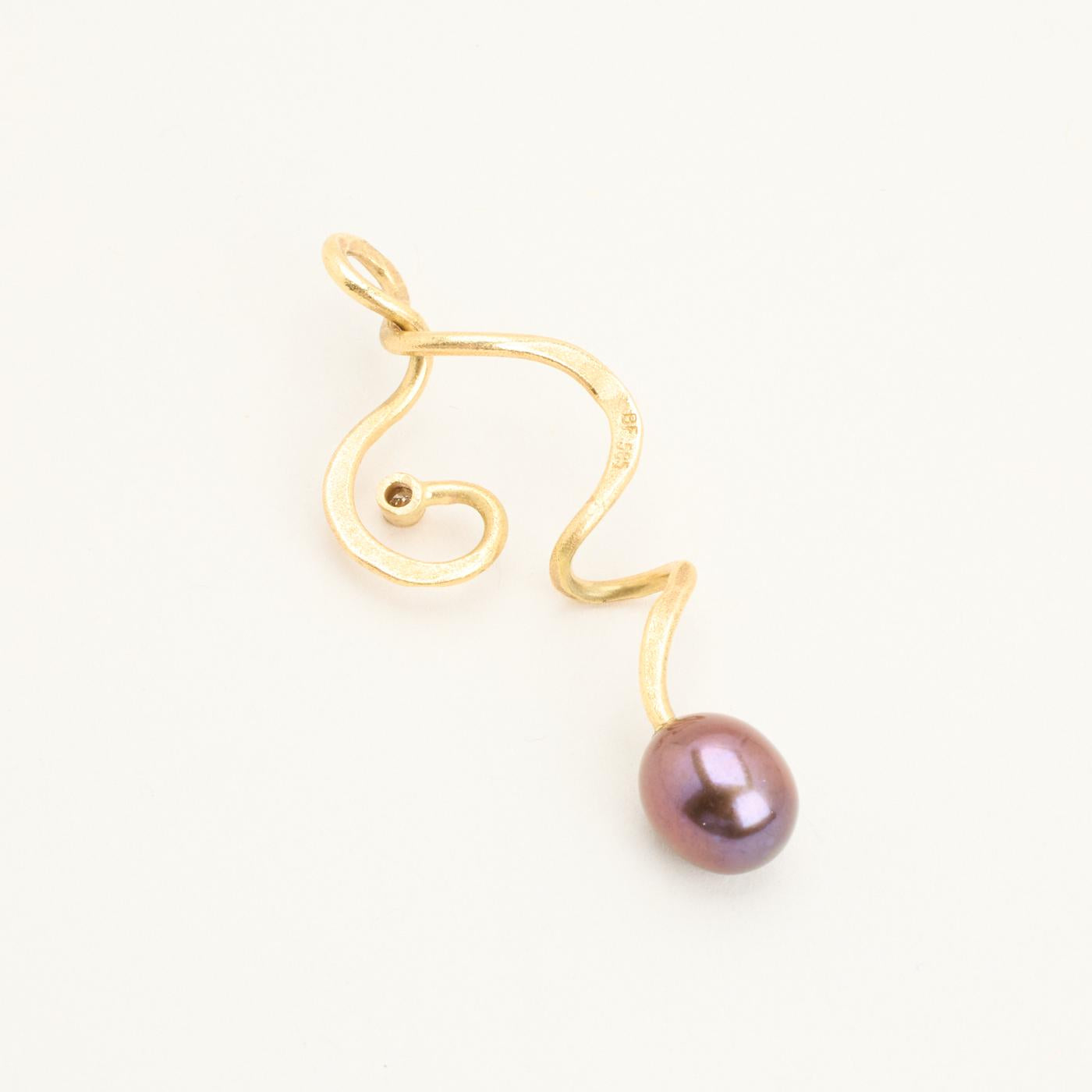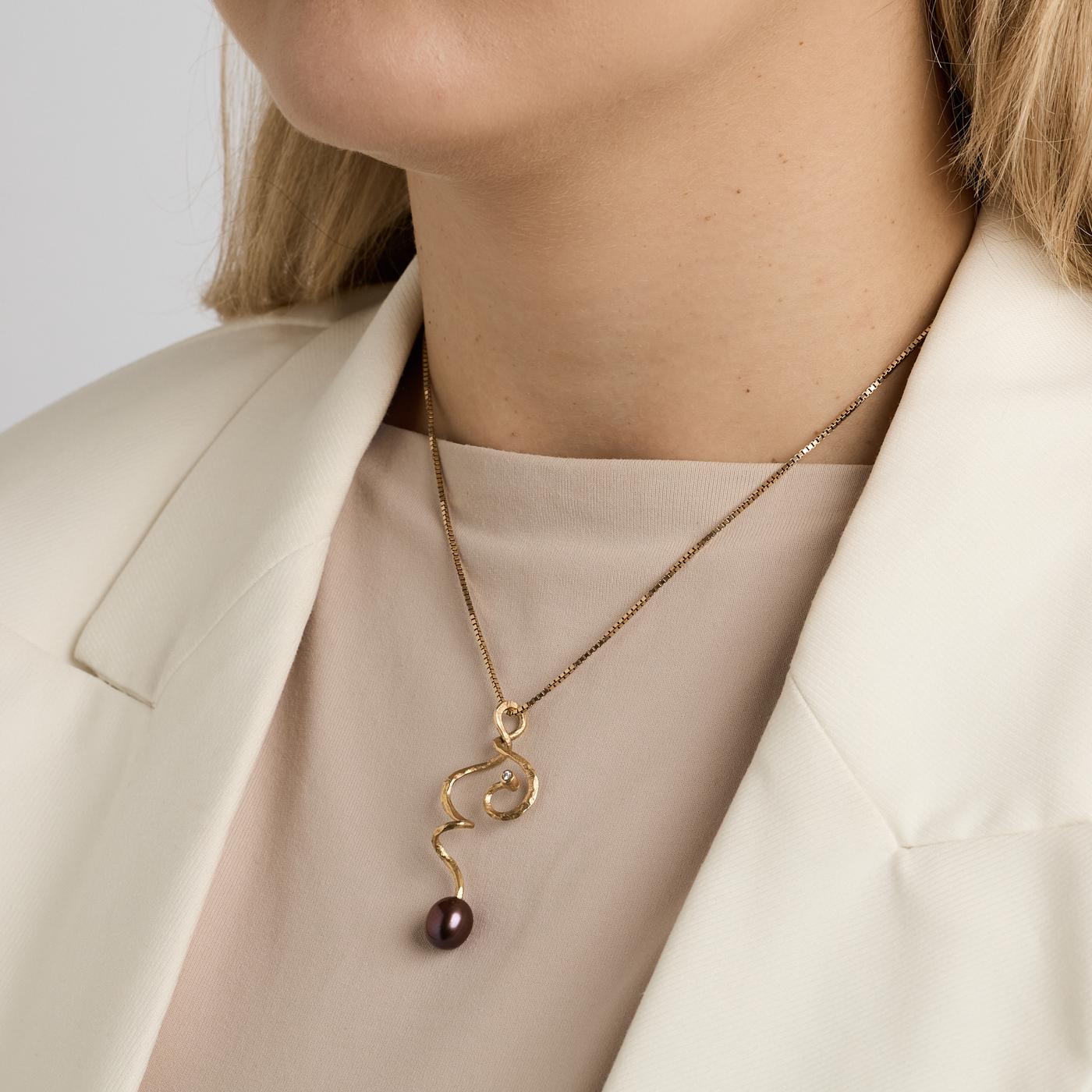 Vedhæng med diamant (0.02 ct) i 14 karat med en Perle, 4.8 cm