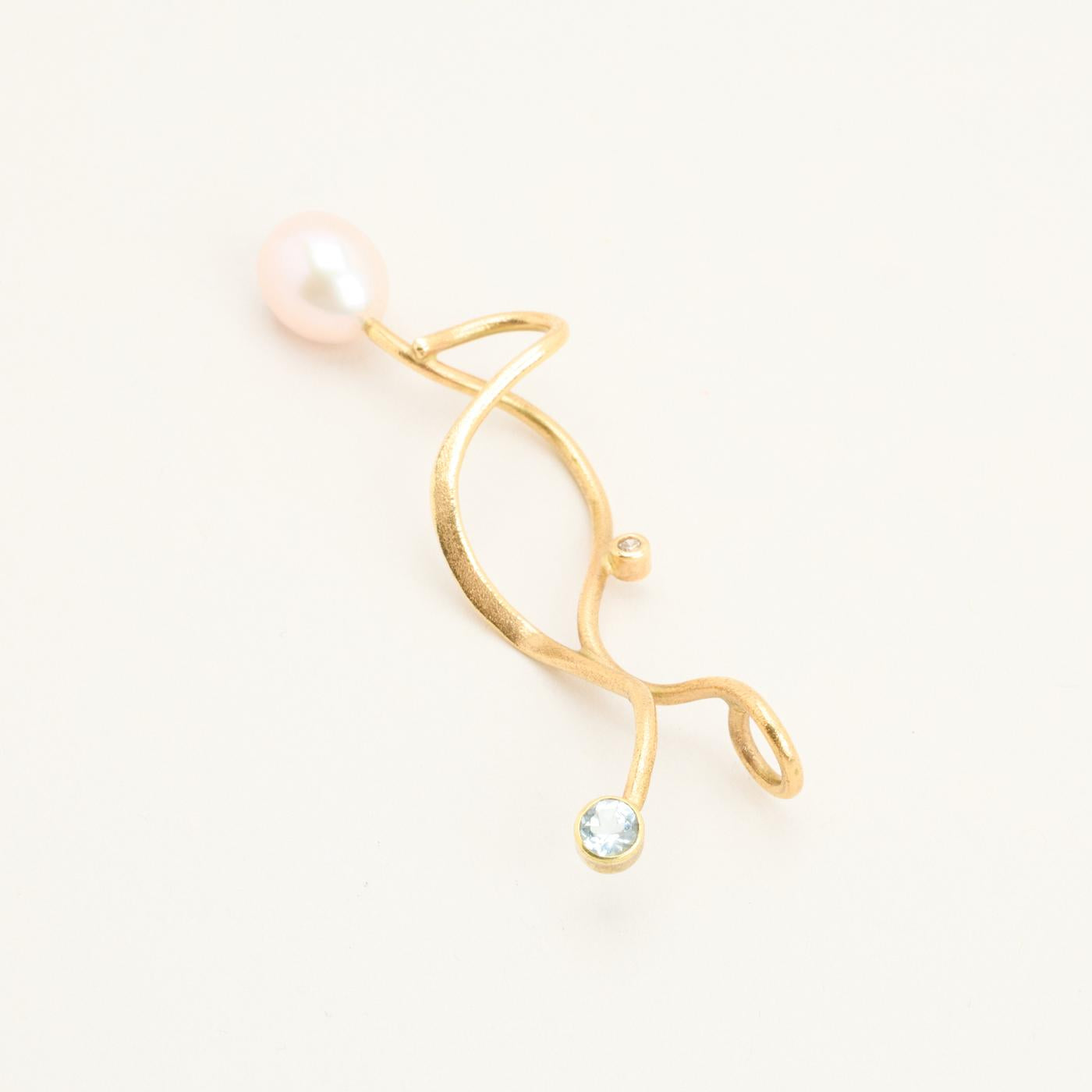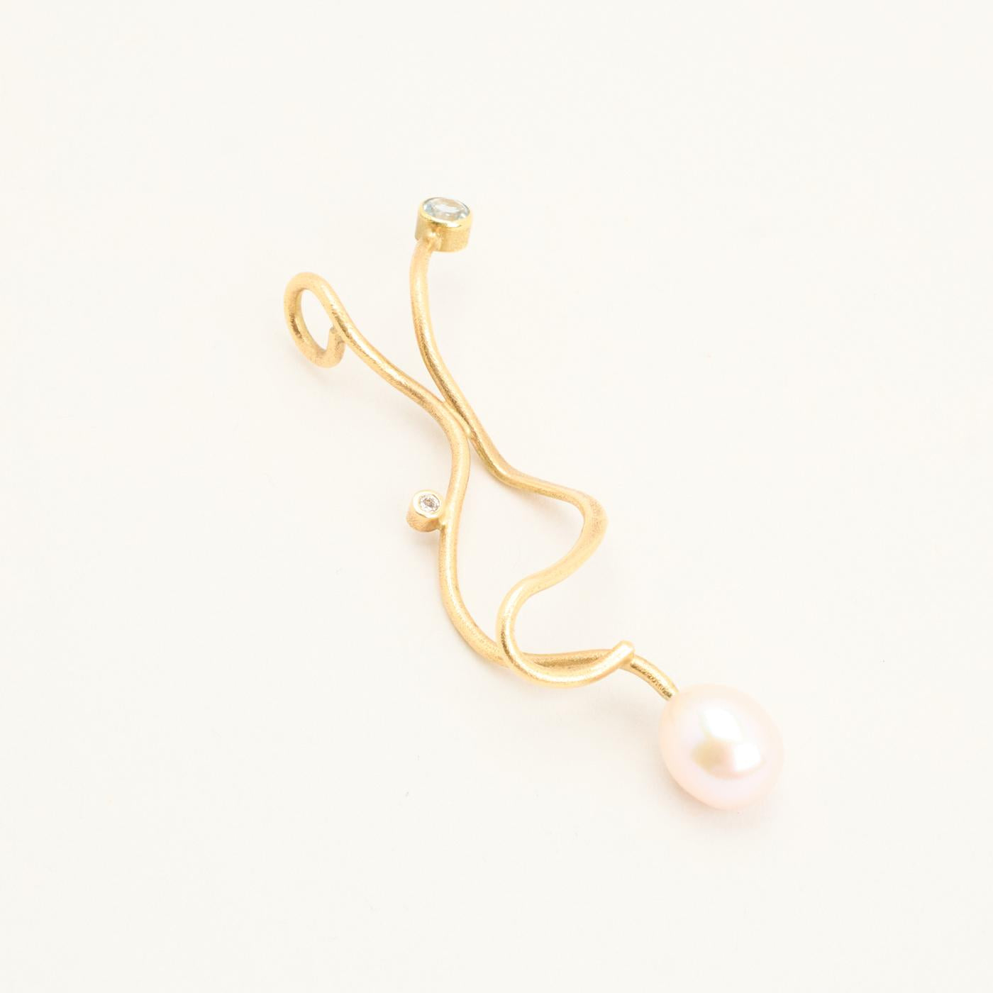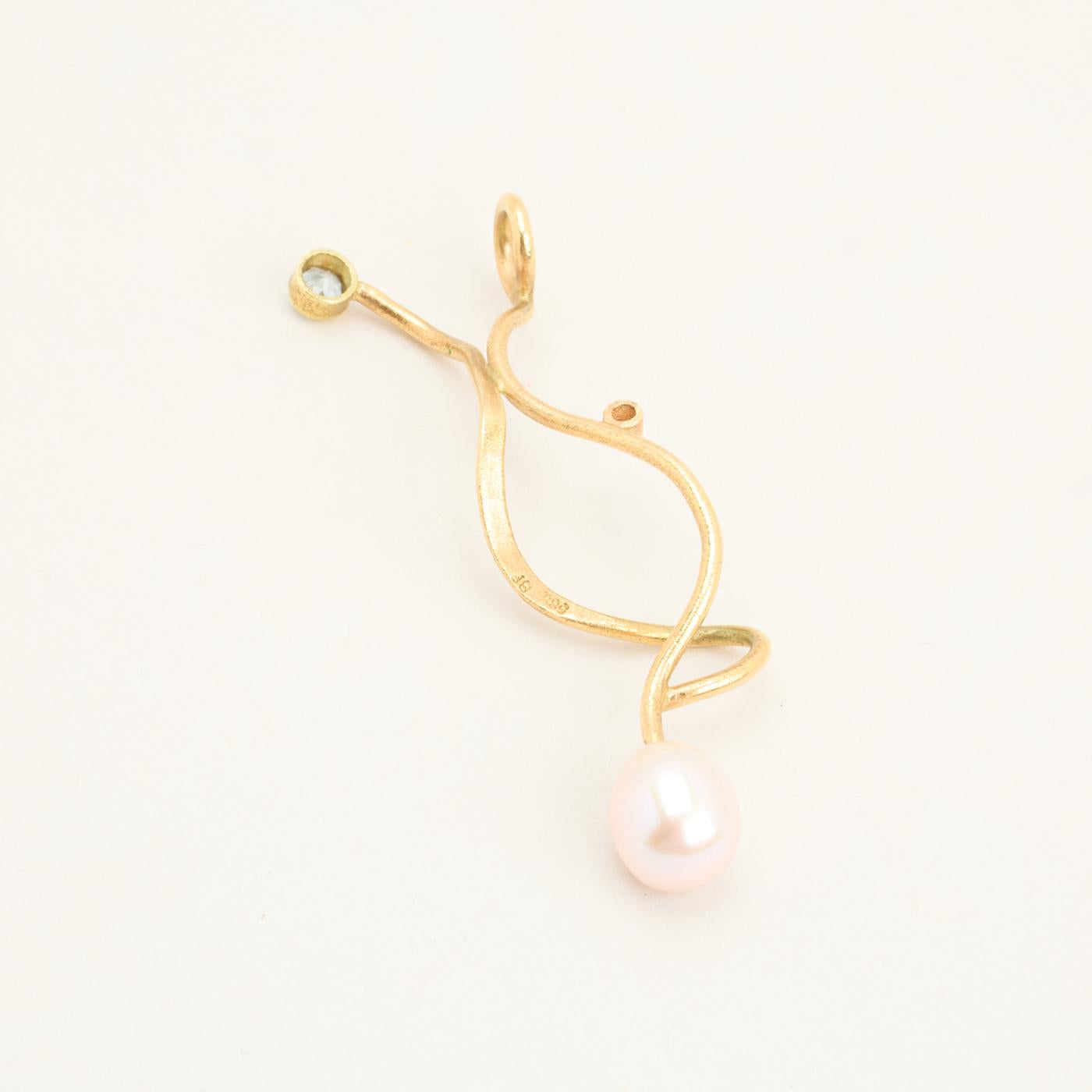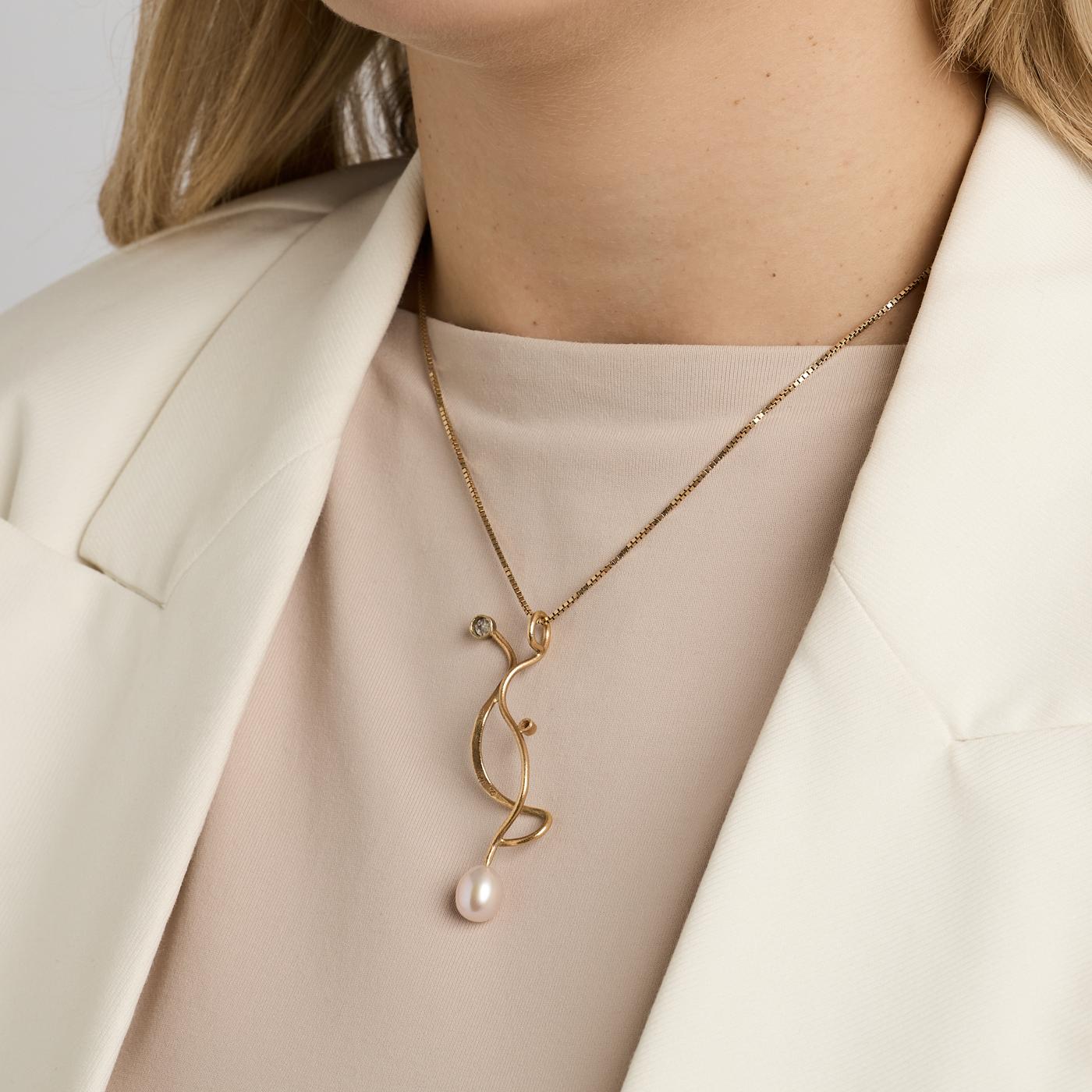 Vedhæng med diamant (0.03 ct) i 14 karat med en Perle, 6 cm