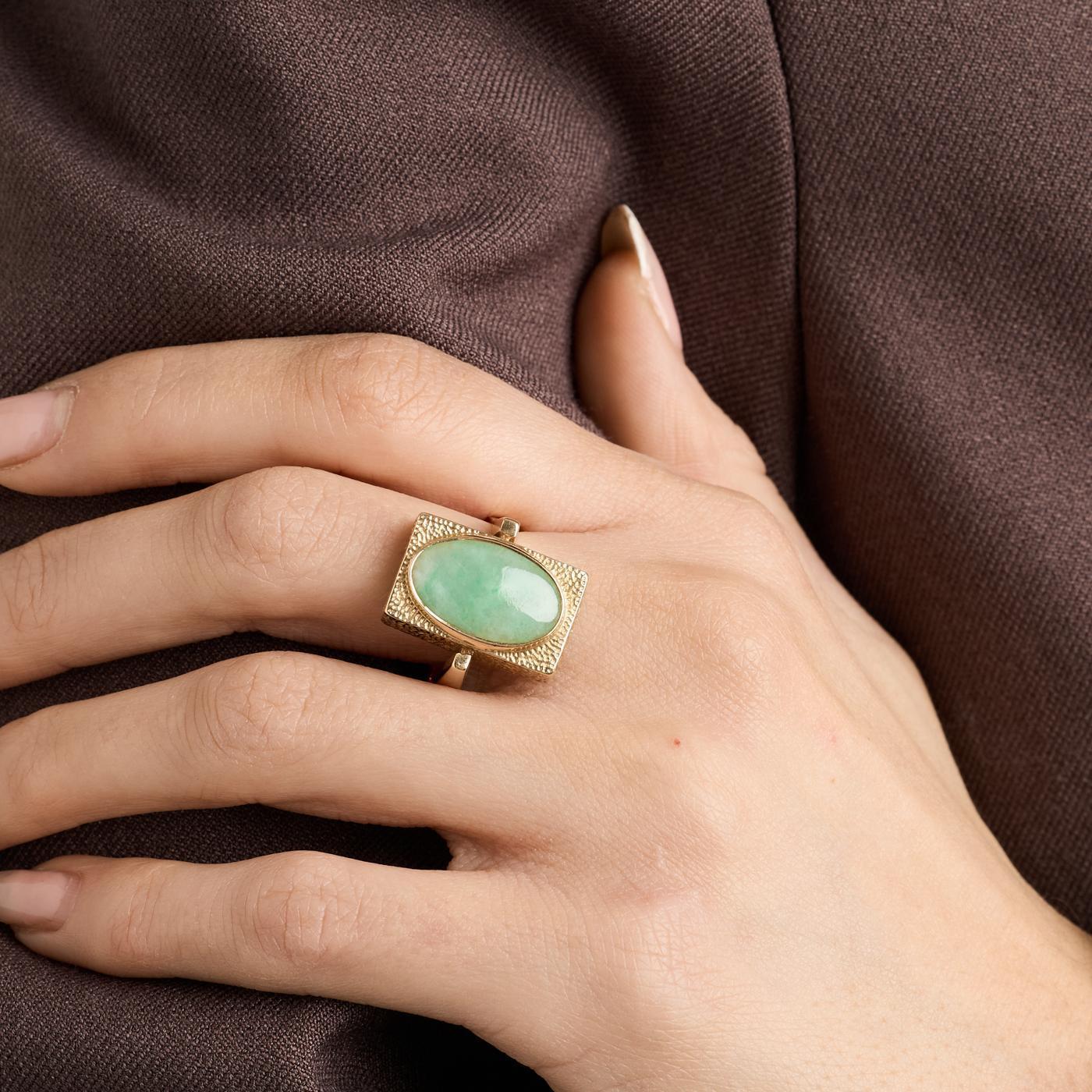 Cocktail ring i 14 karat med en Jade str. 59