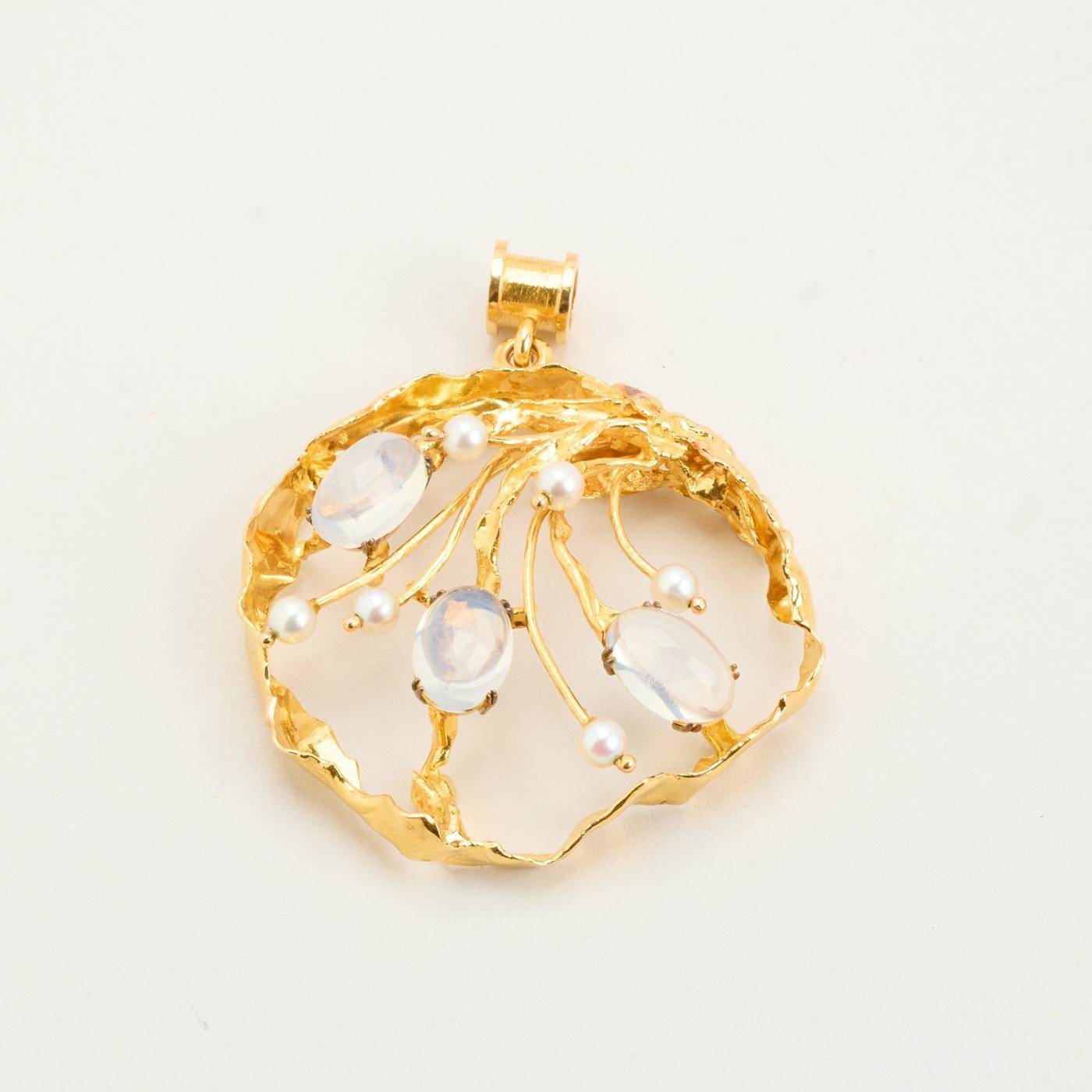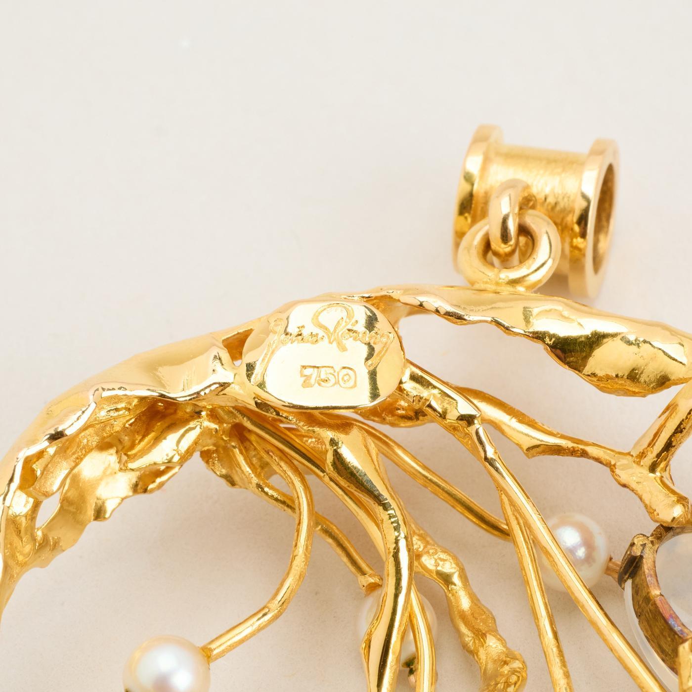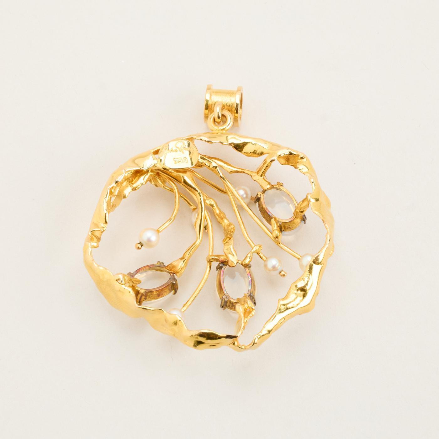 John Rørvig vedhæng i 18K guld med flere månesten og perler, 6 cm