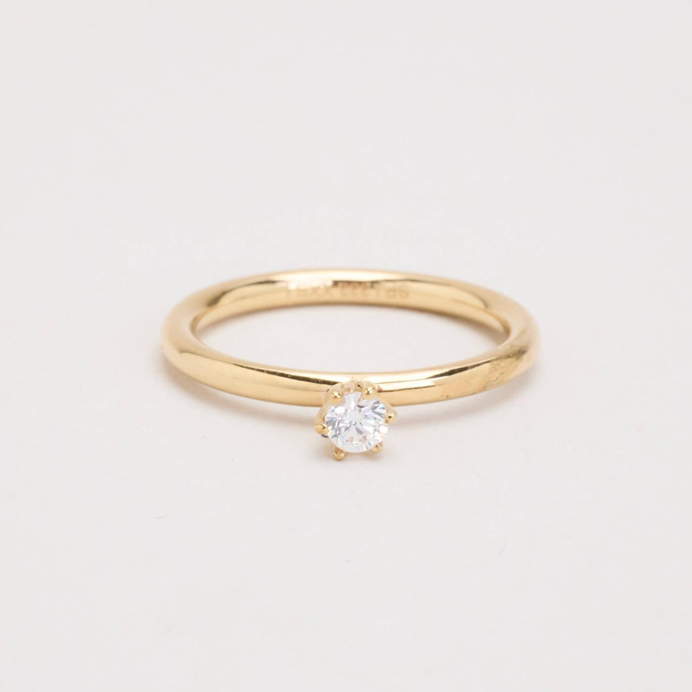 Solitairering i 8K guld med en zirkonia, Str. 49