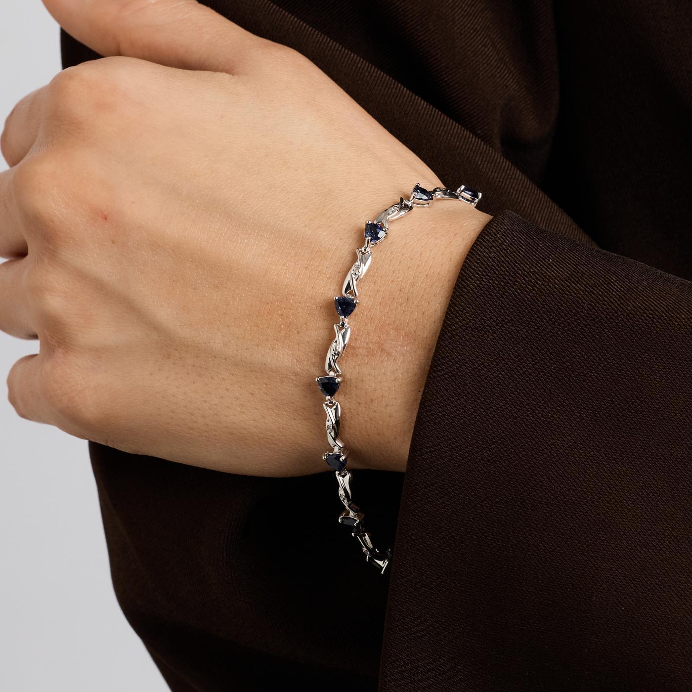 Model: Armbånd i 10K hvidguld med blå sten (0.01 ct), 18 cm