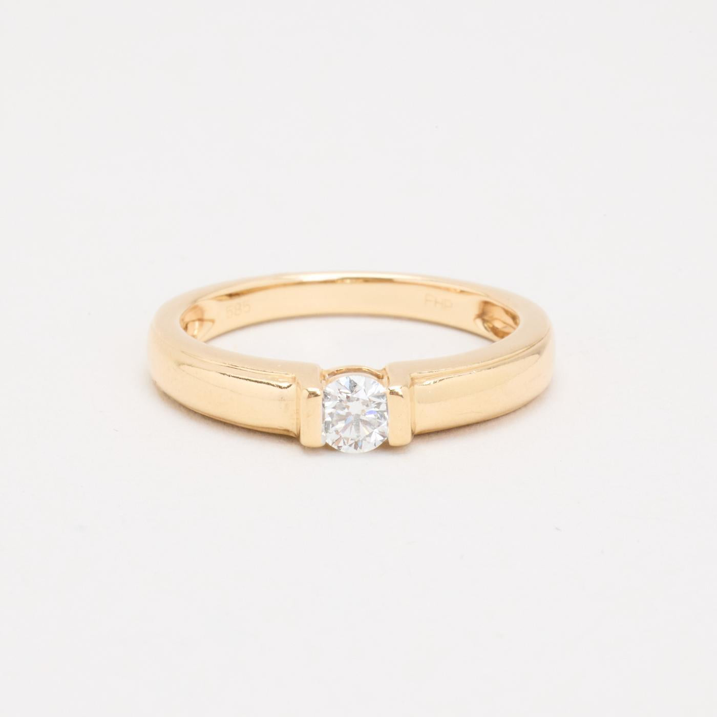 Solitairering i 14K guld med en diamant (0.24 ct), Str. 53