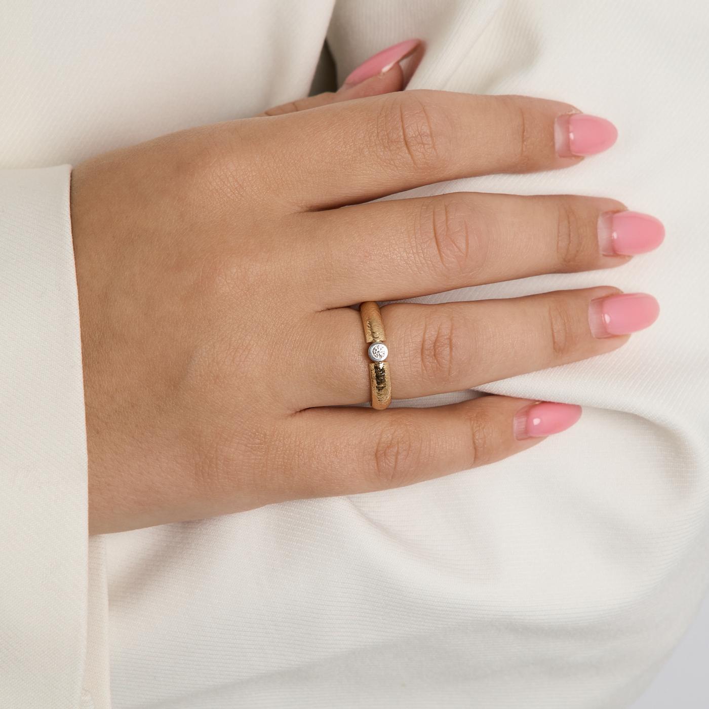 Bånd i 14K guld og hvidguld med en diamant (0.04 ct), Str. 54
