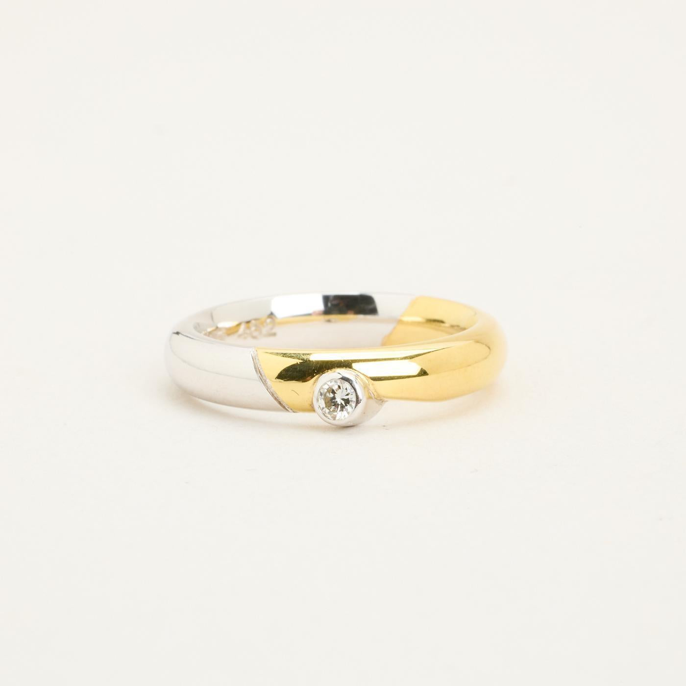 Bånd i 14K guld og hvidguld med en diamant (0.05 ct), Str. 54