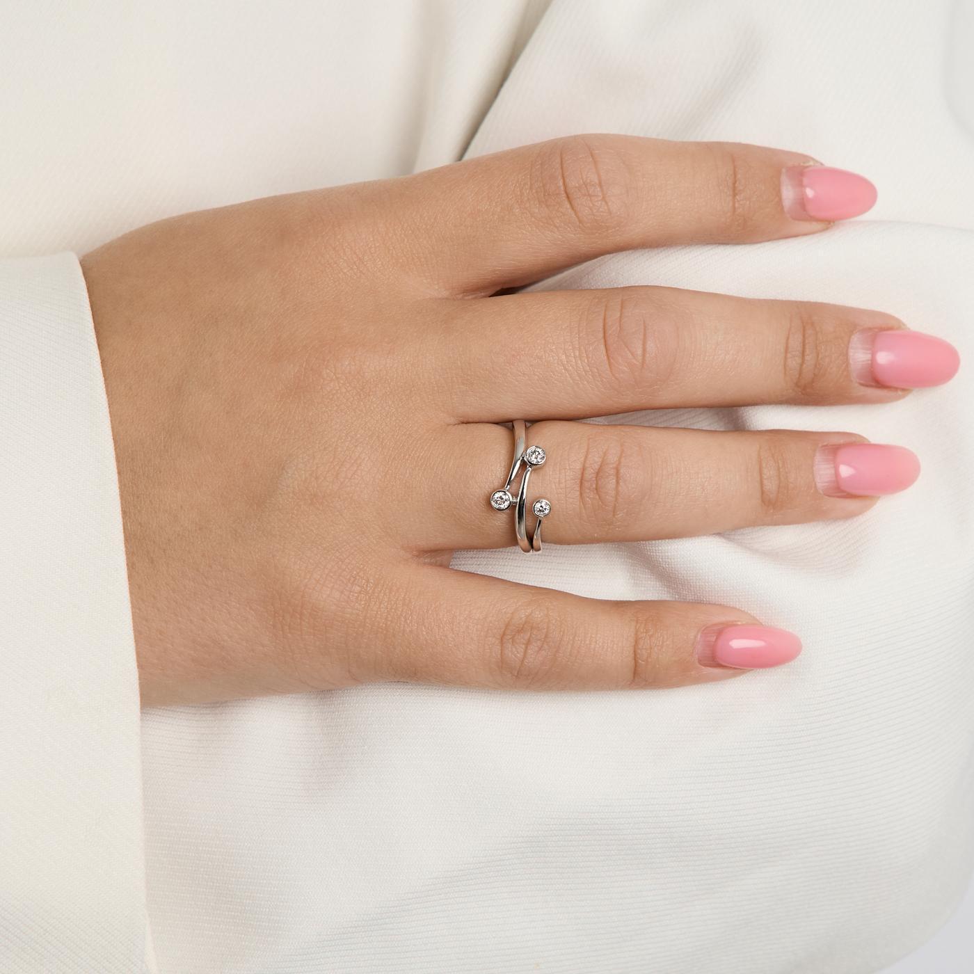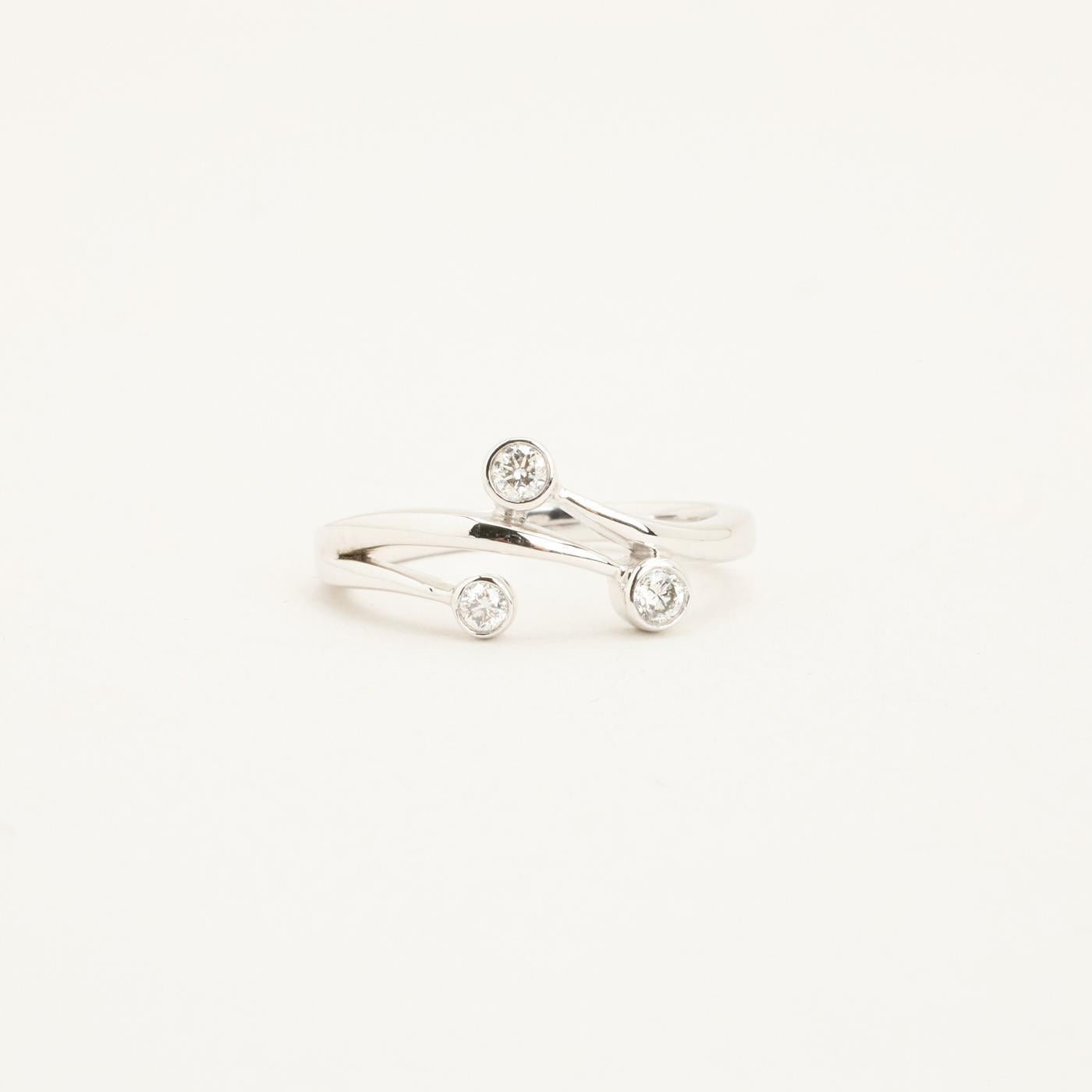 Crossover ring i 14K hvidguld med diamanter (0.16 ct), Str. 54