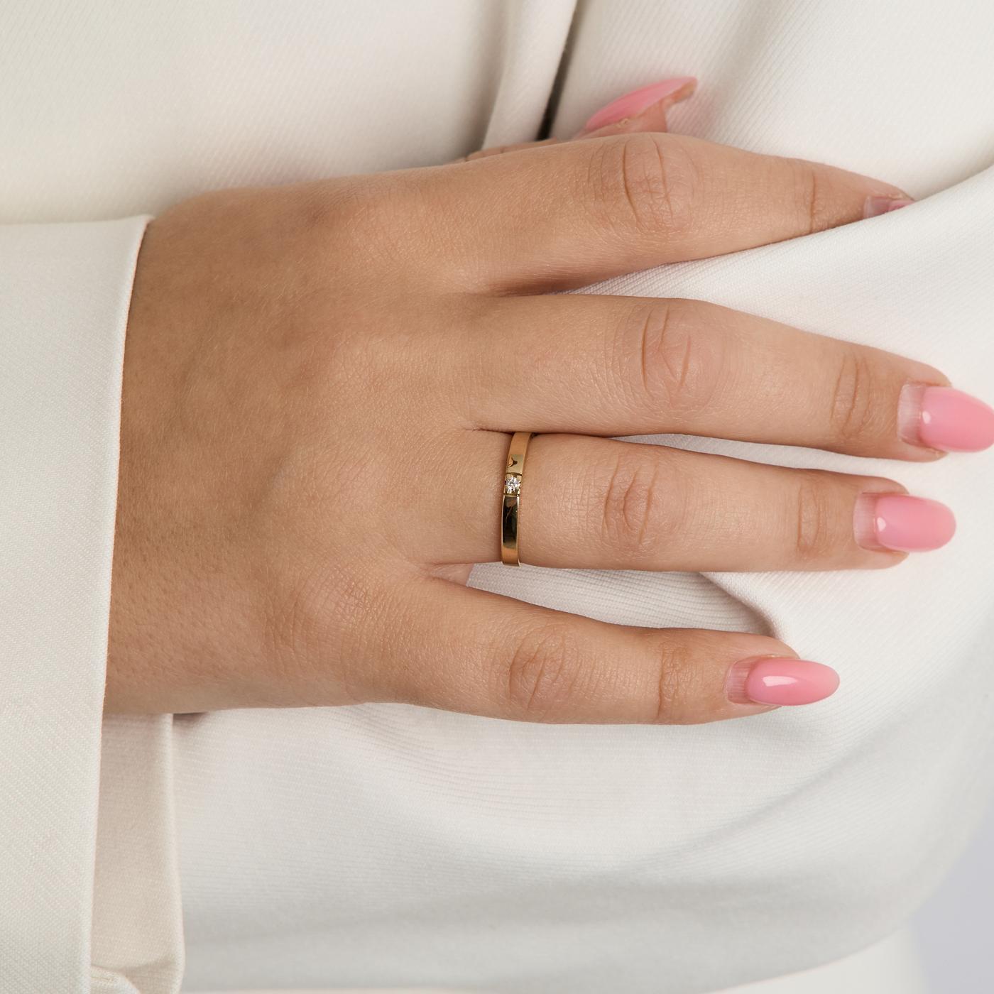 Alliancering i 14K guld med en diamant (0.02 ct), Str. 54