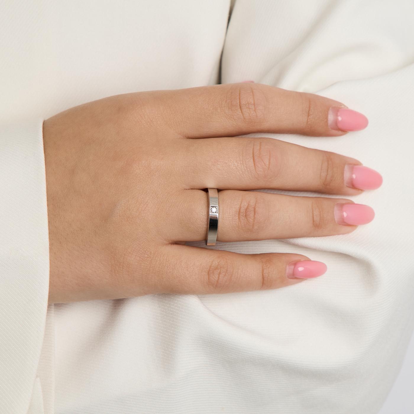 Alliance ring i 14K hvidguld med en diamant (0.02 ct), Str. 54