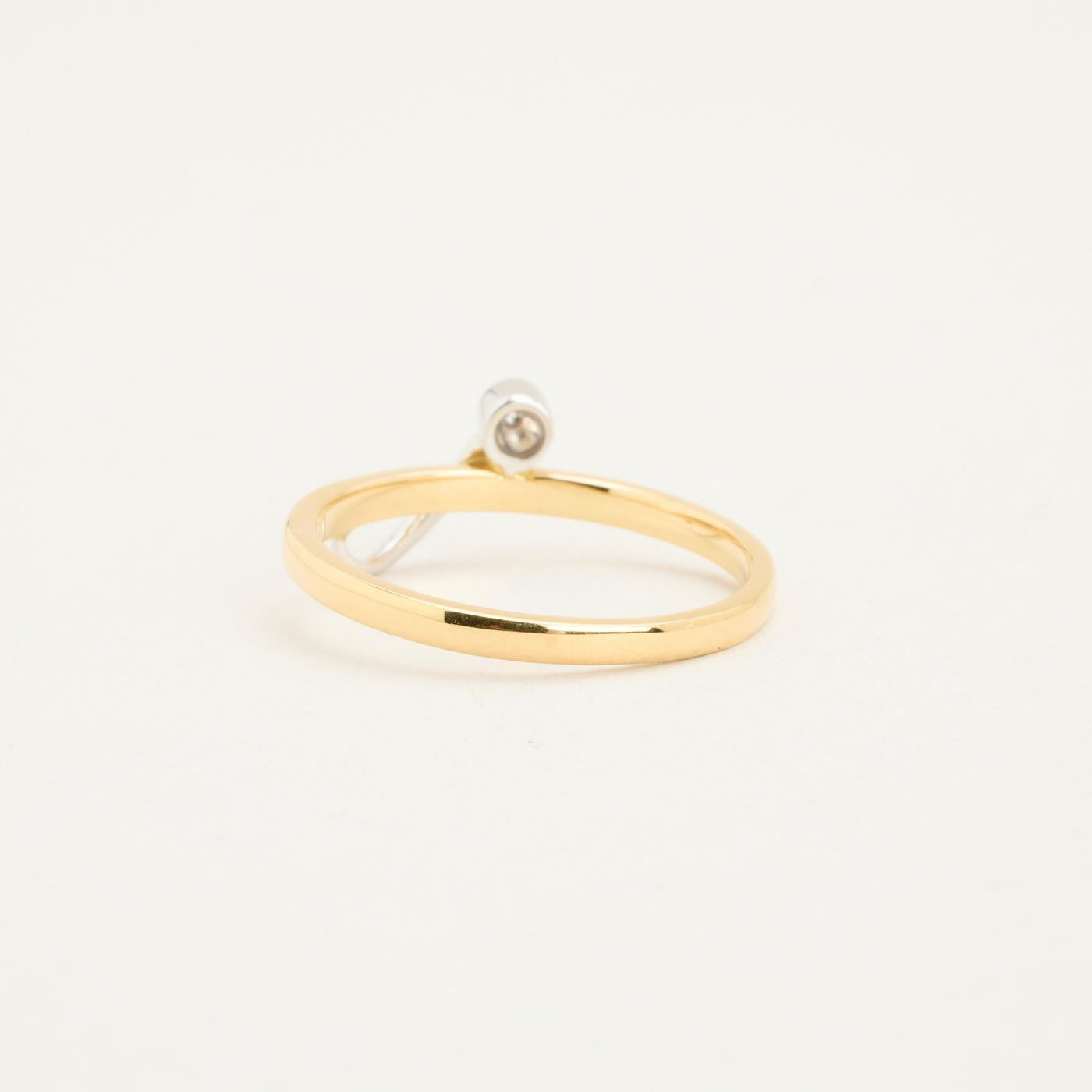 Crossoverring i 14K guld og hvidguld med en diamant (0.03 ct), Str. 56