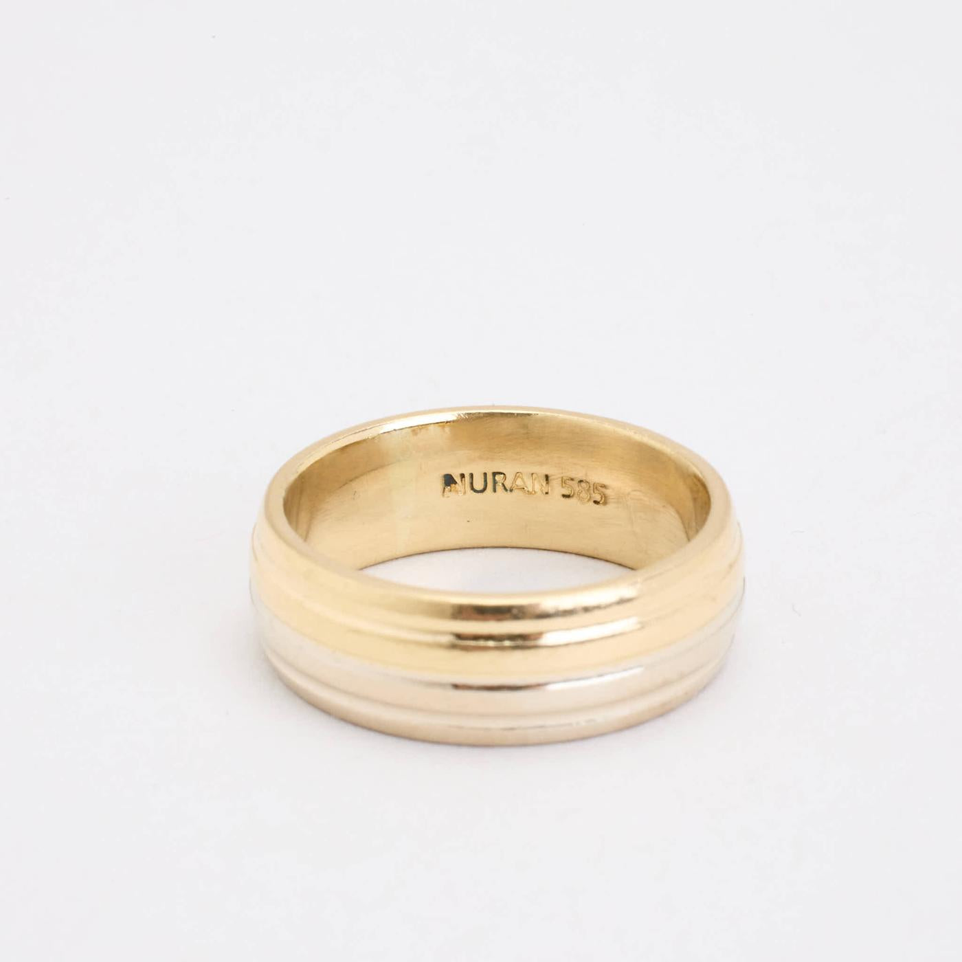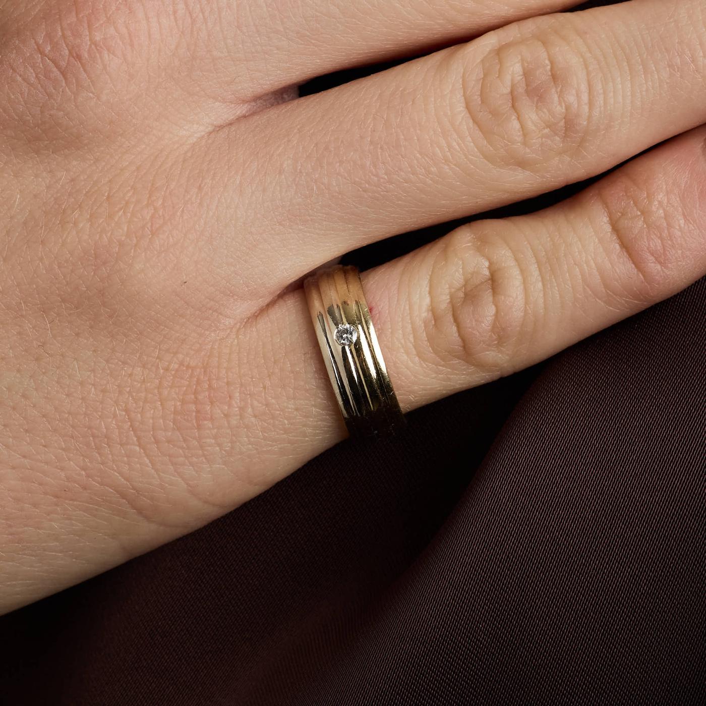 Bånd i 14K guld og hvidguld med en diamant (0.04 ct), Str. 49
