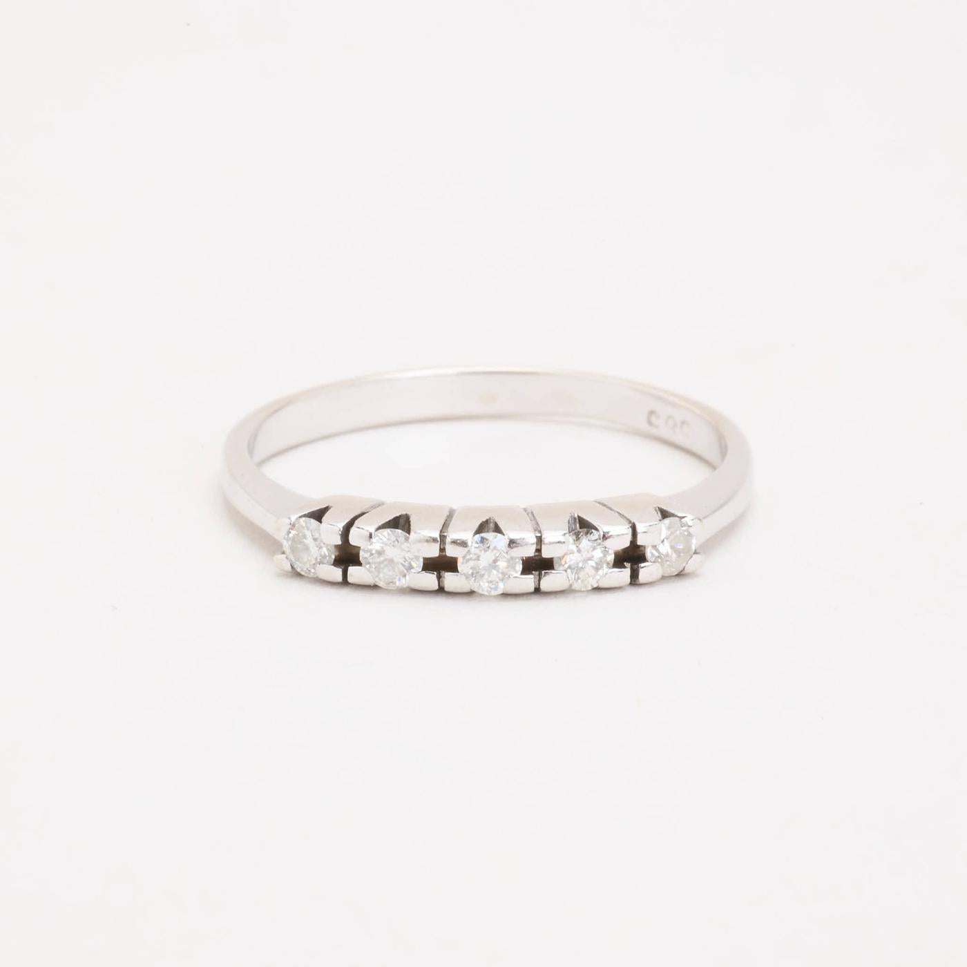Femstensring i 14K hvidguld med diamanter (0.29 ct), Str. 60