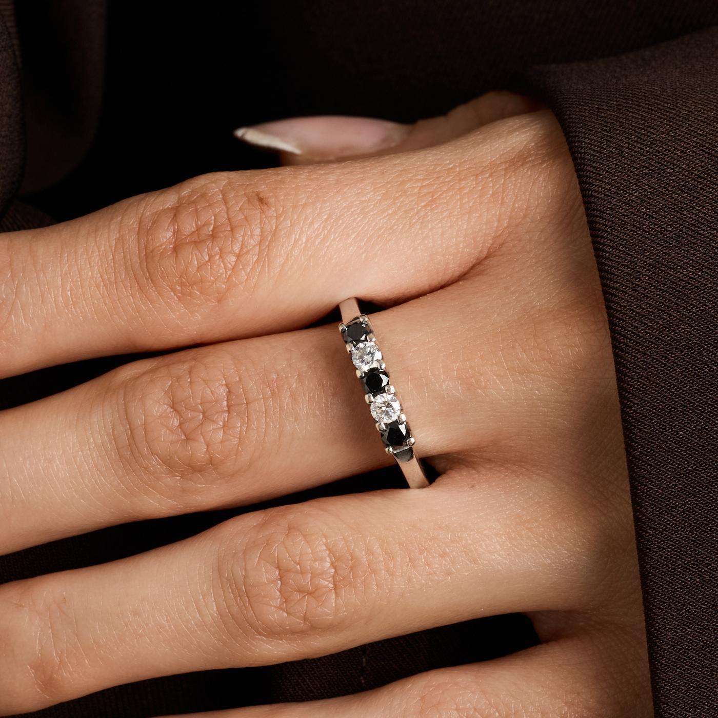 Femstensring i 18K hvidguld med diamanter (0.54 ct), Str. 58
