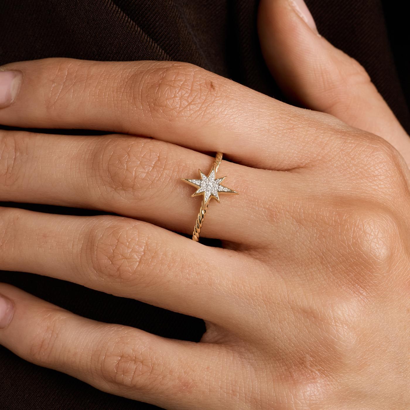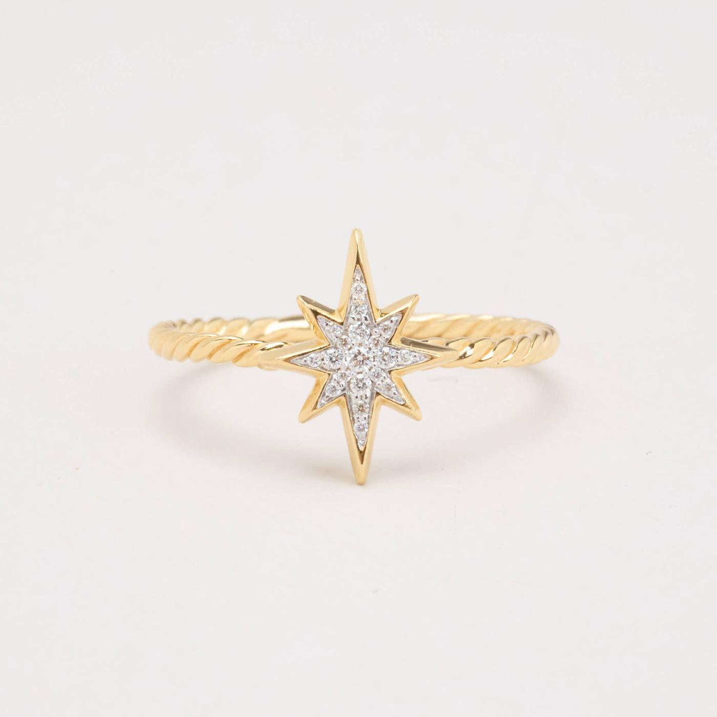 Stjerne statement ring med diamant (0.03 ct) i 18 karat str. 55