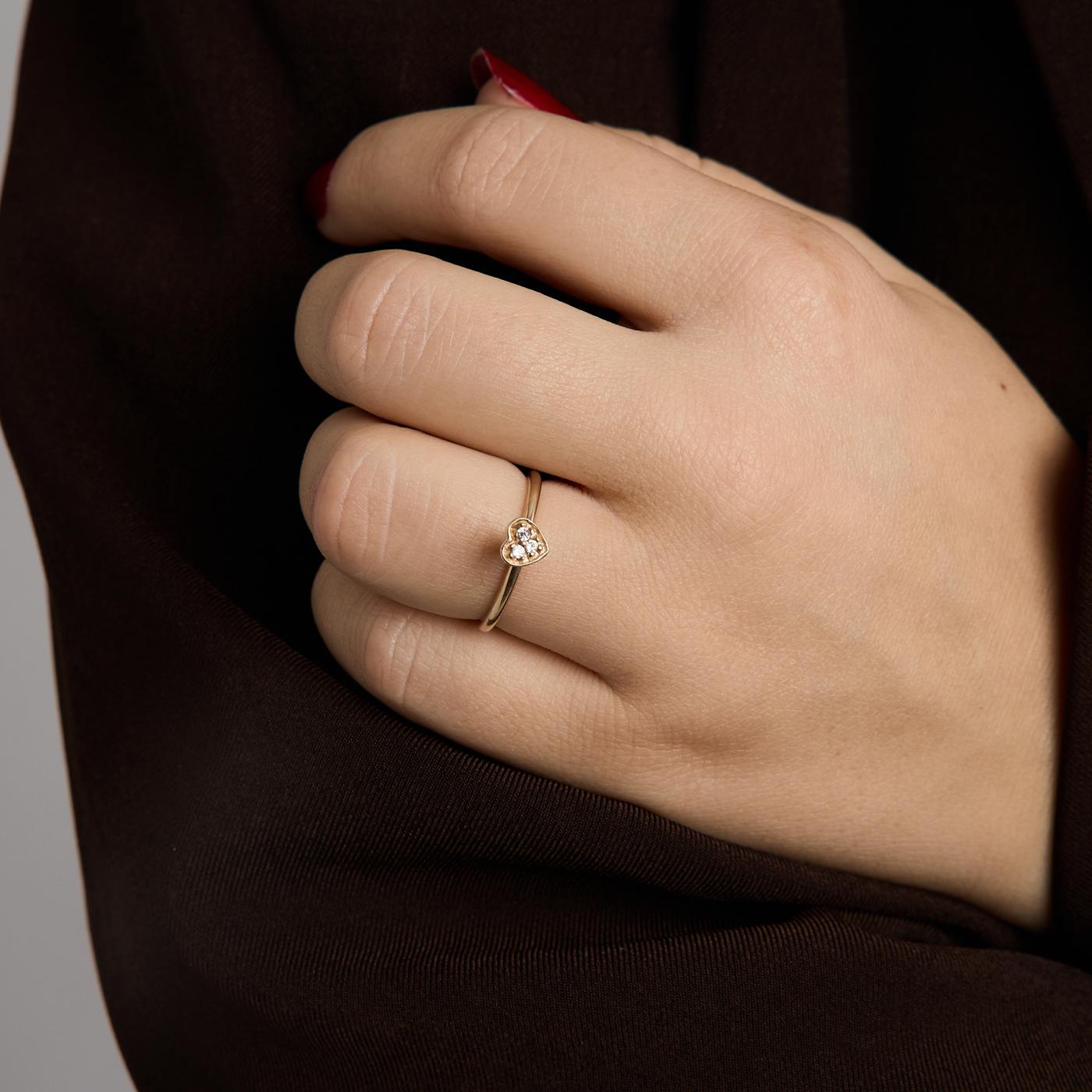 Hjertering i 8 karat med en Zirkonia str. 53