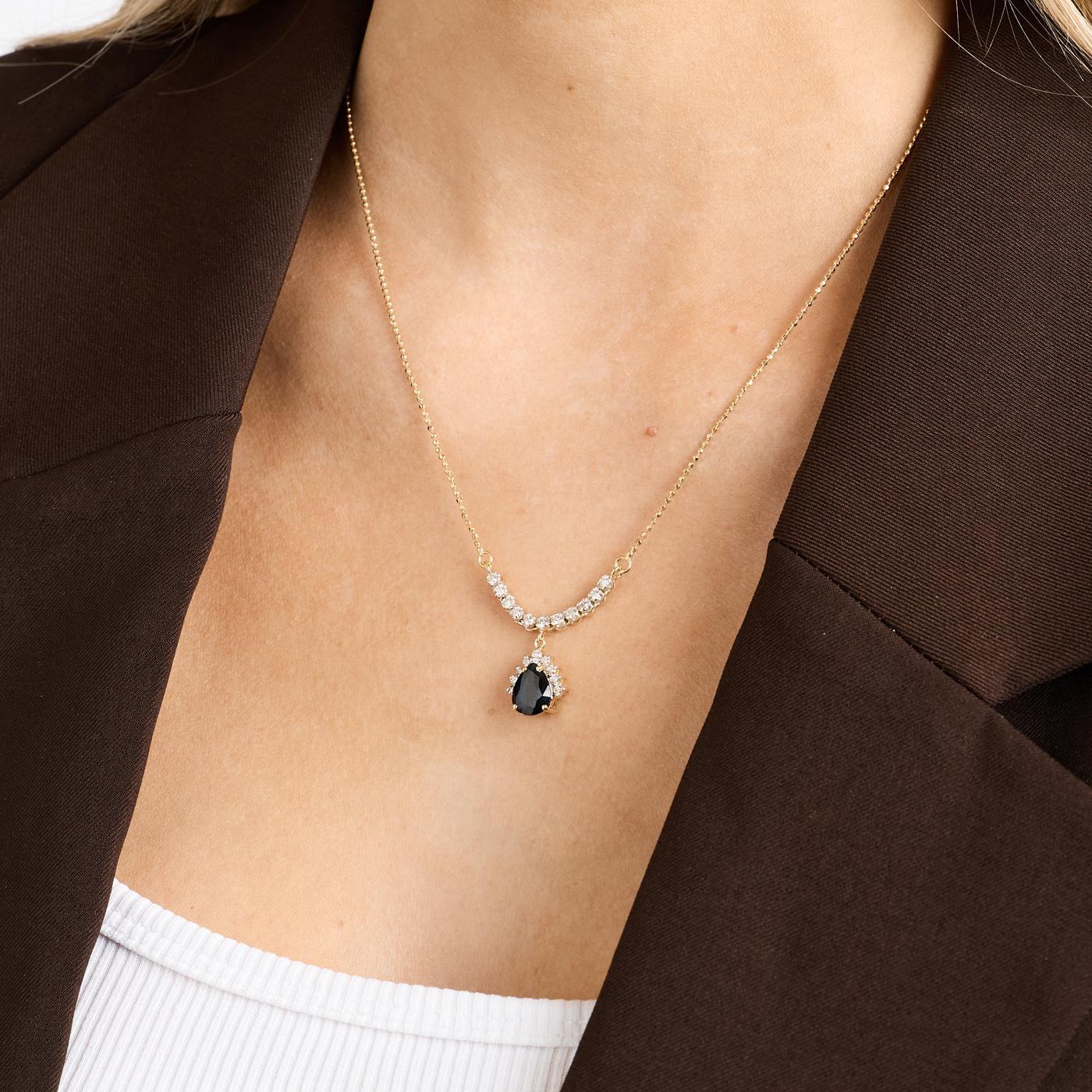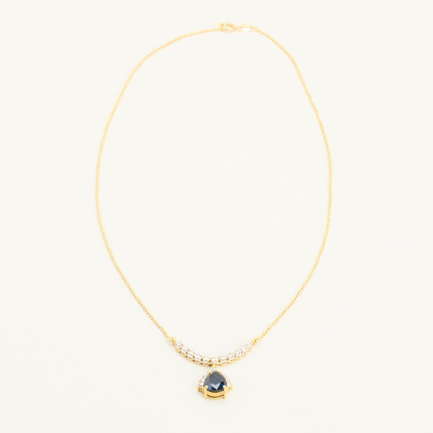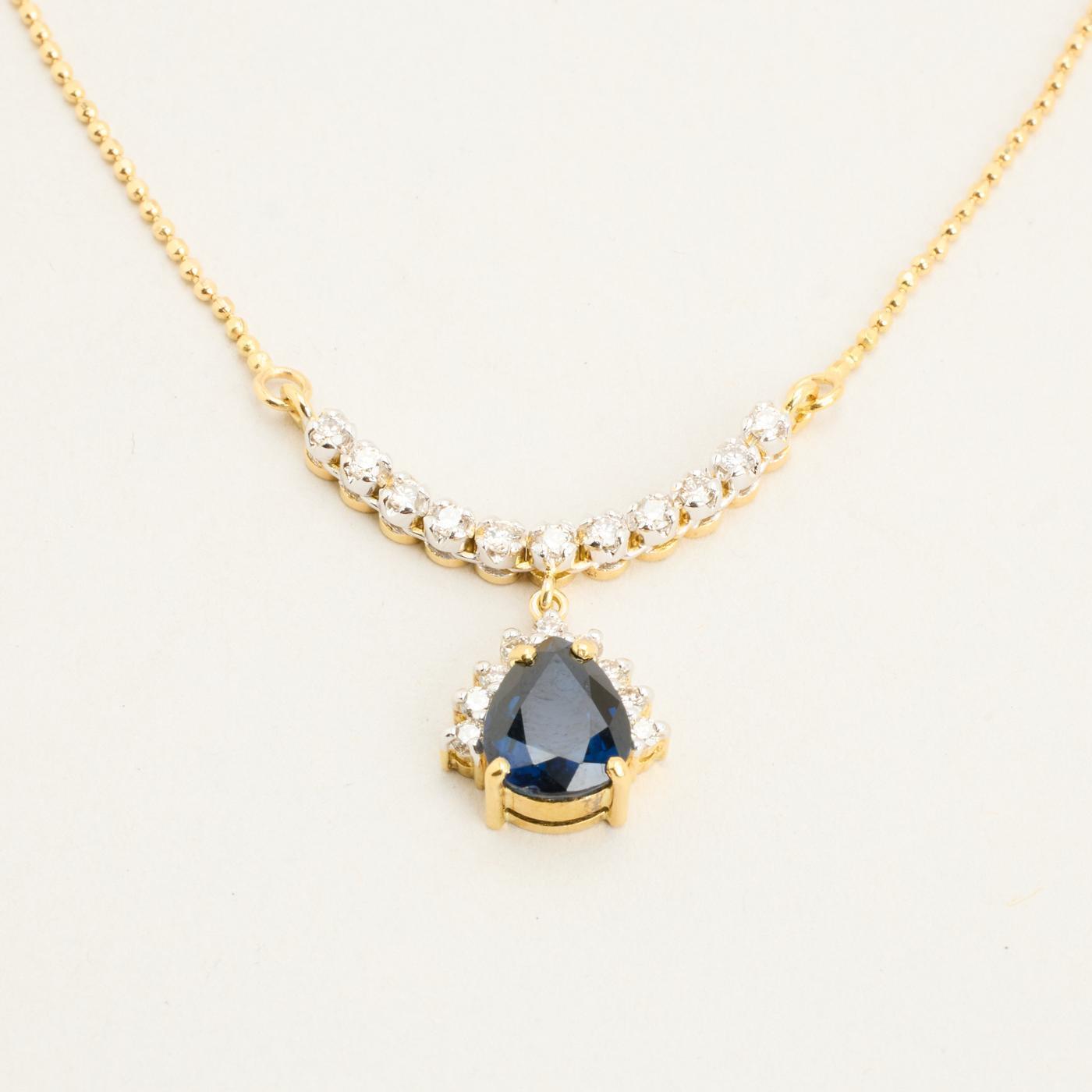 Teardrop halskæde og kugle i 18K guld med flere diamanter (0.33 ct) og en safir, 44 cm