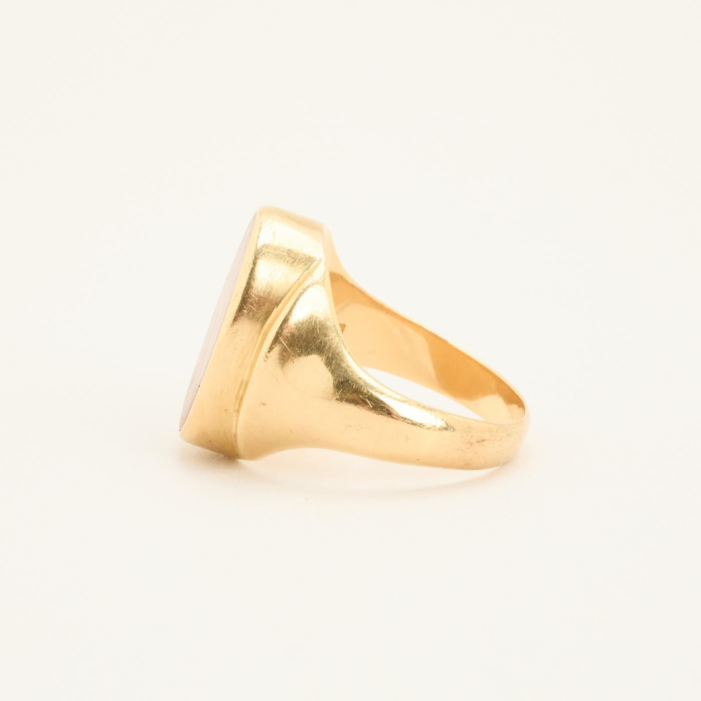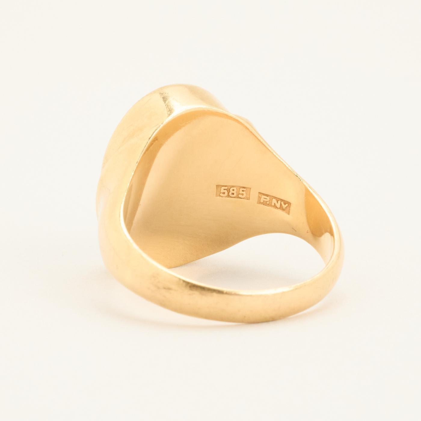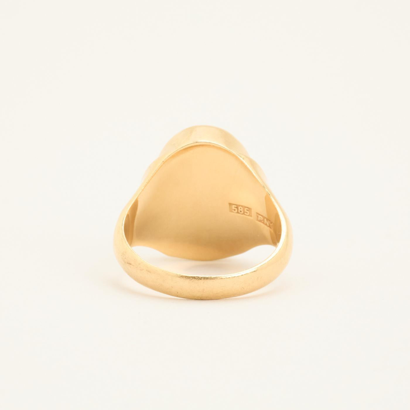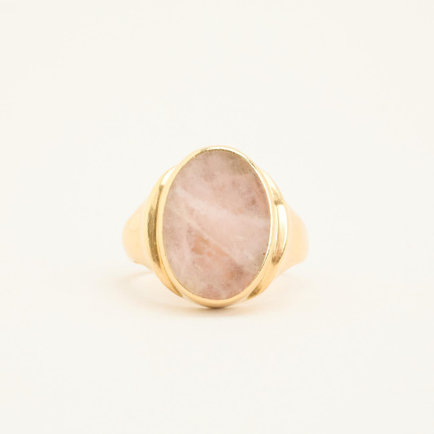 Signetring i 14K guld med en lyserød sten, Str. 57