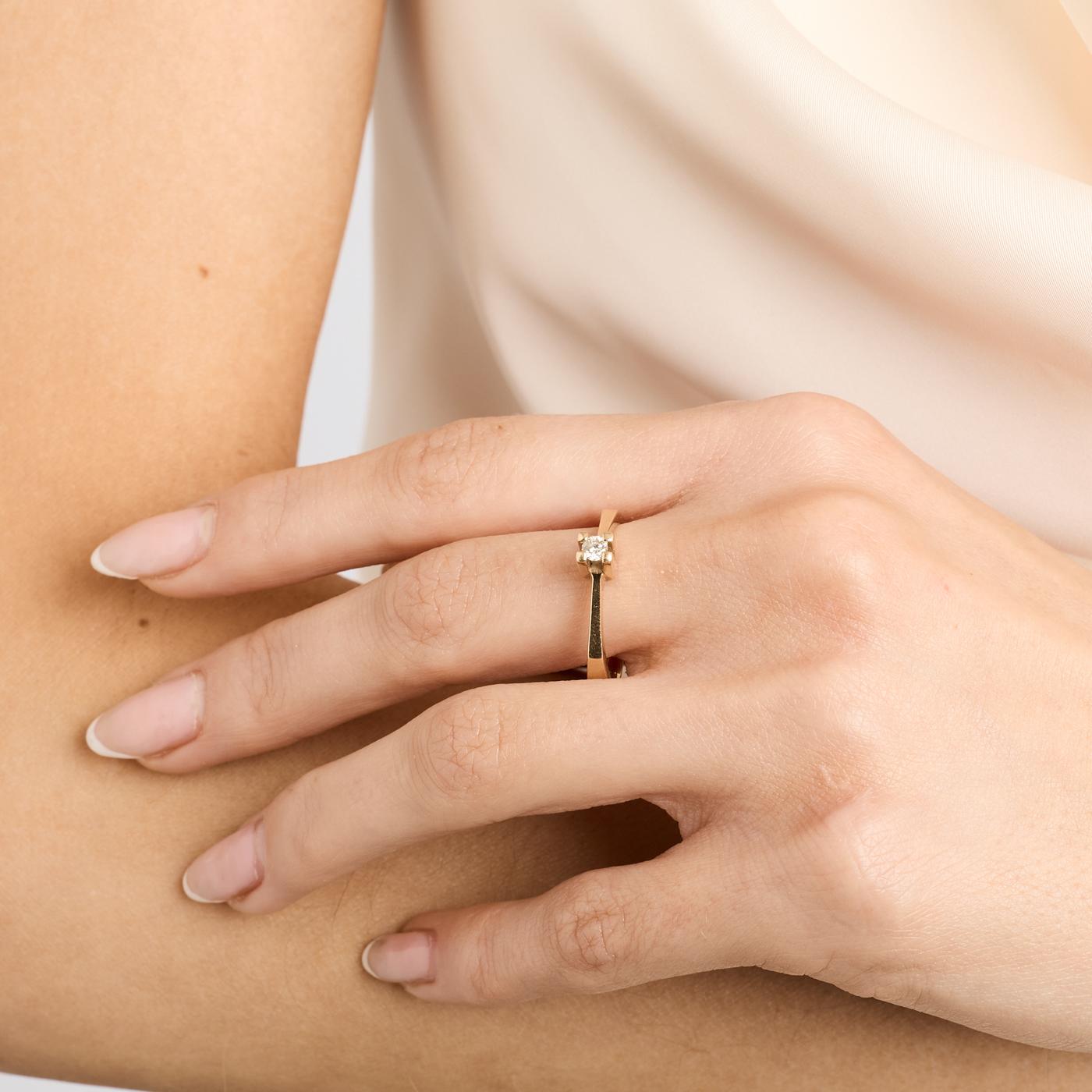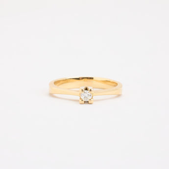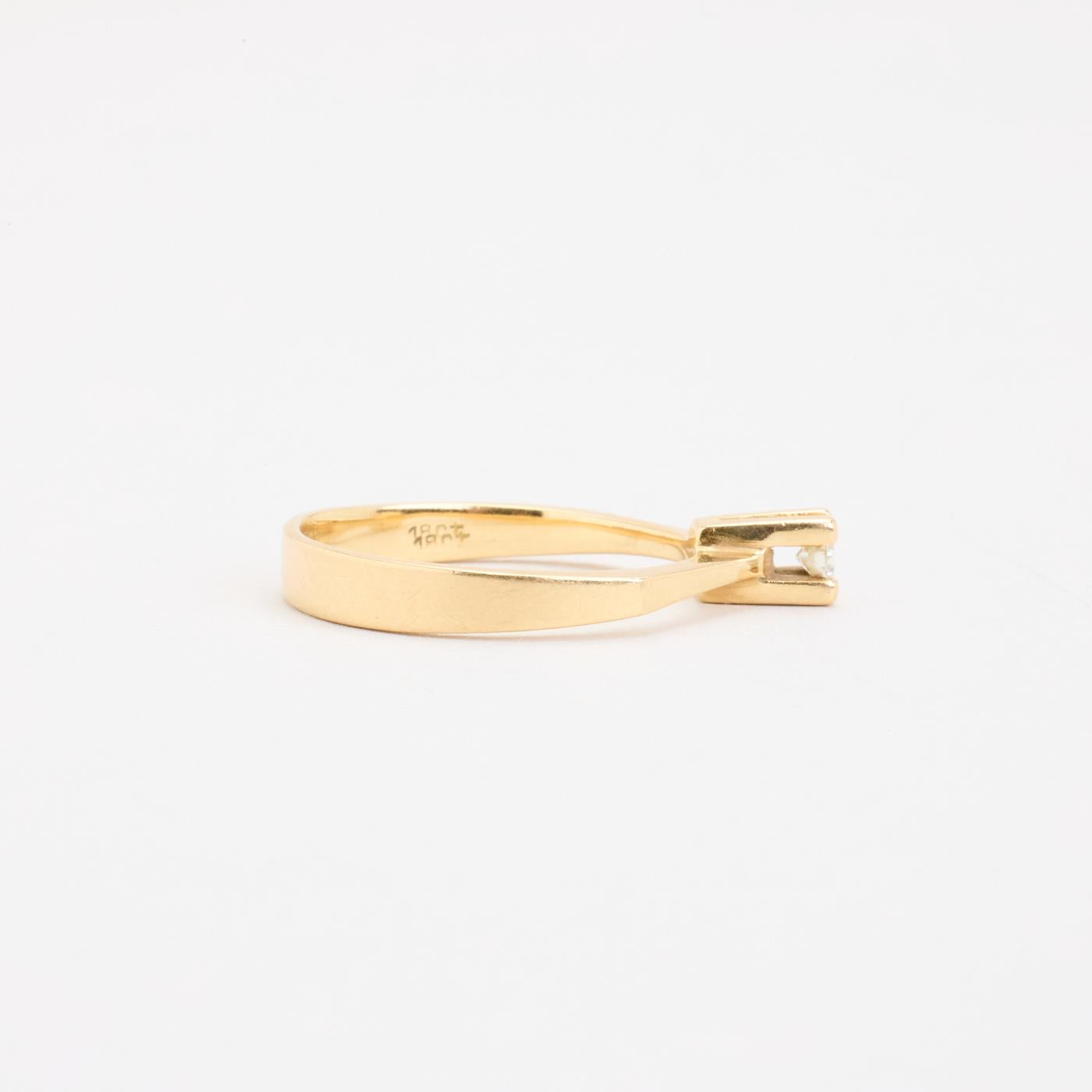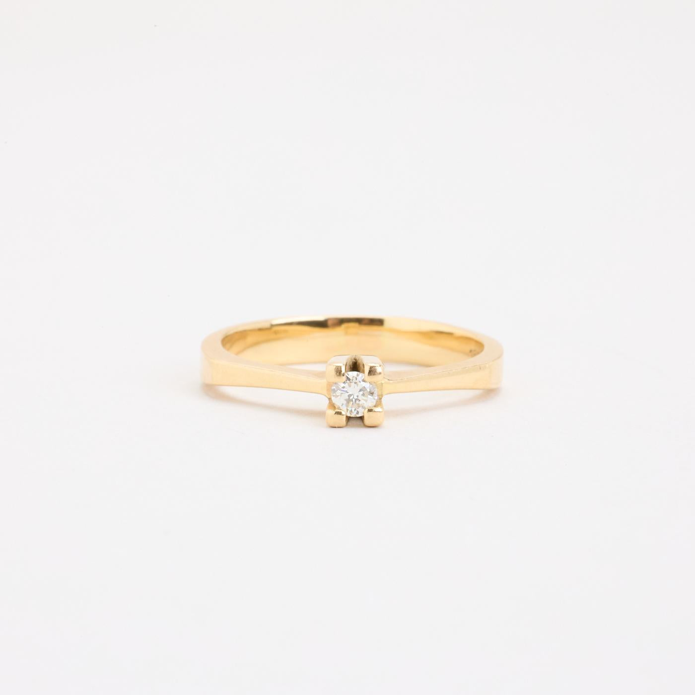 Solitairering i 18K guld med en diamant (0.13 ct), Str. 59