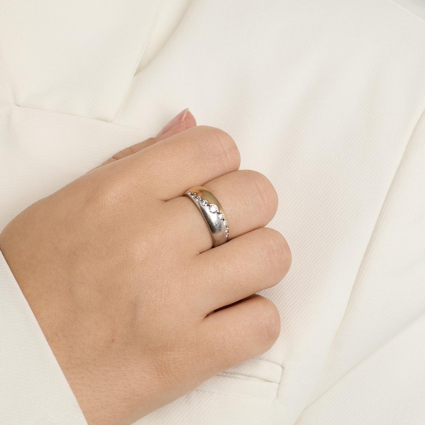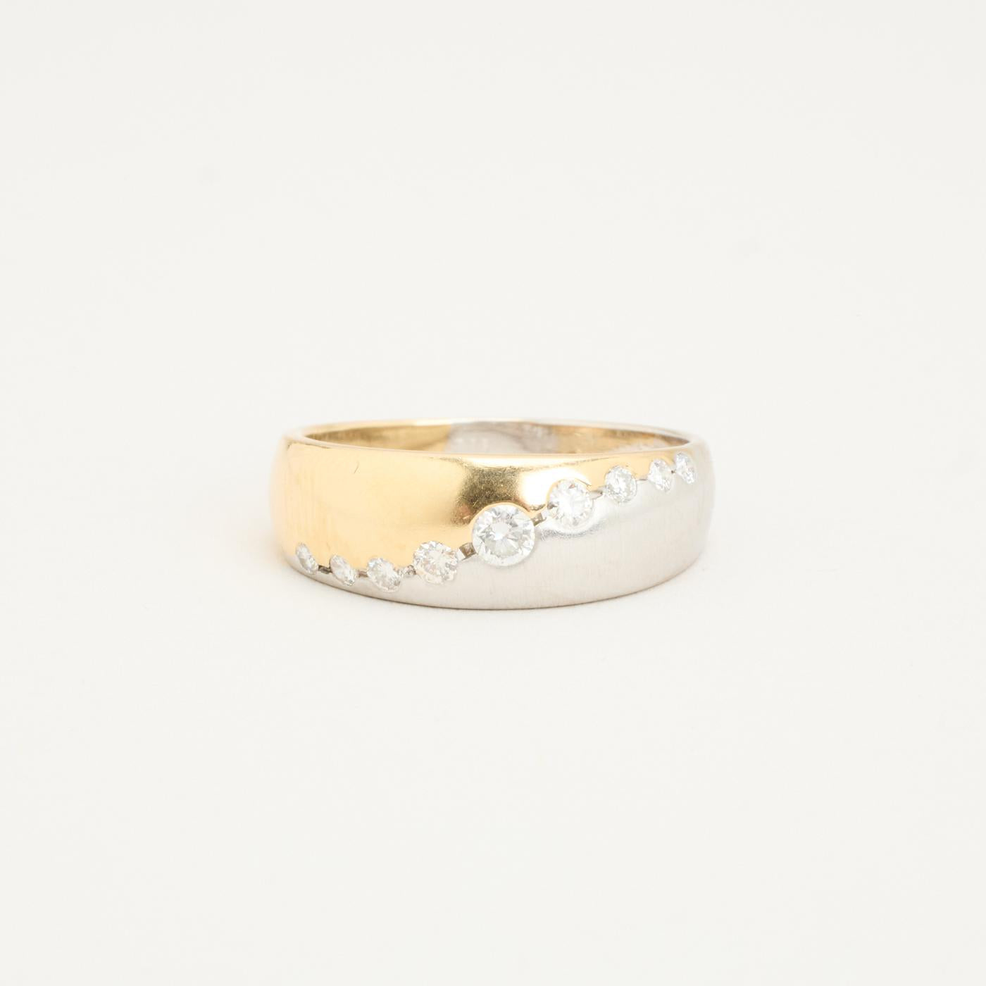 Gypsyring i 14K guld og hvidguld med diamanter (0.20 ct), Str. 57