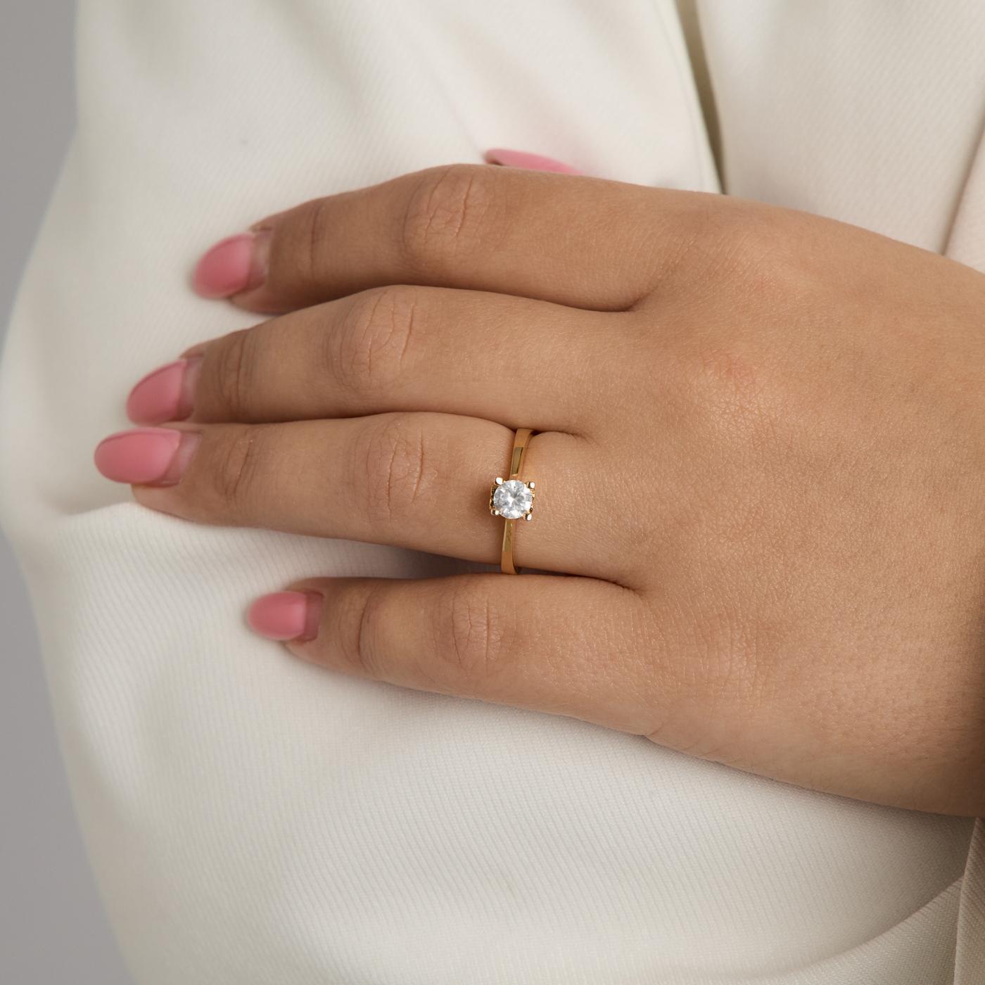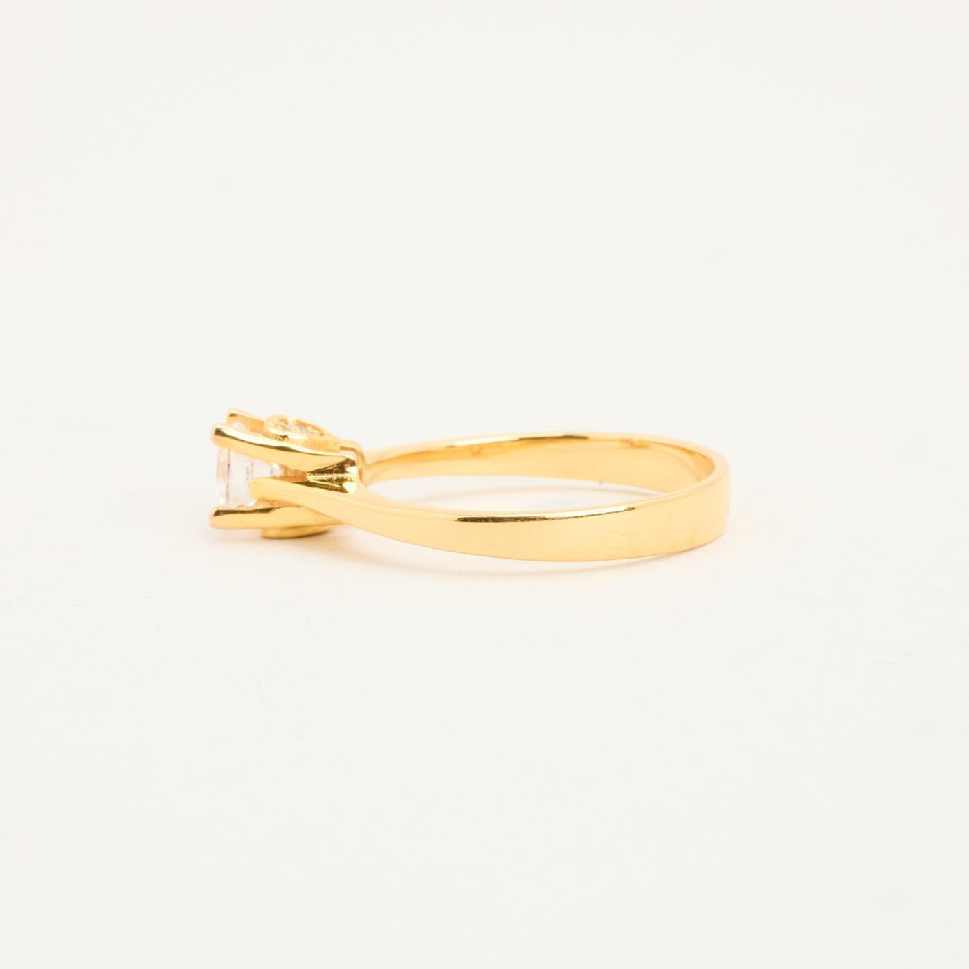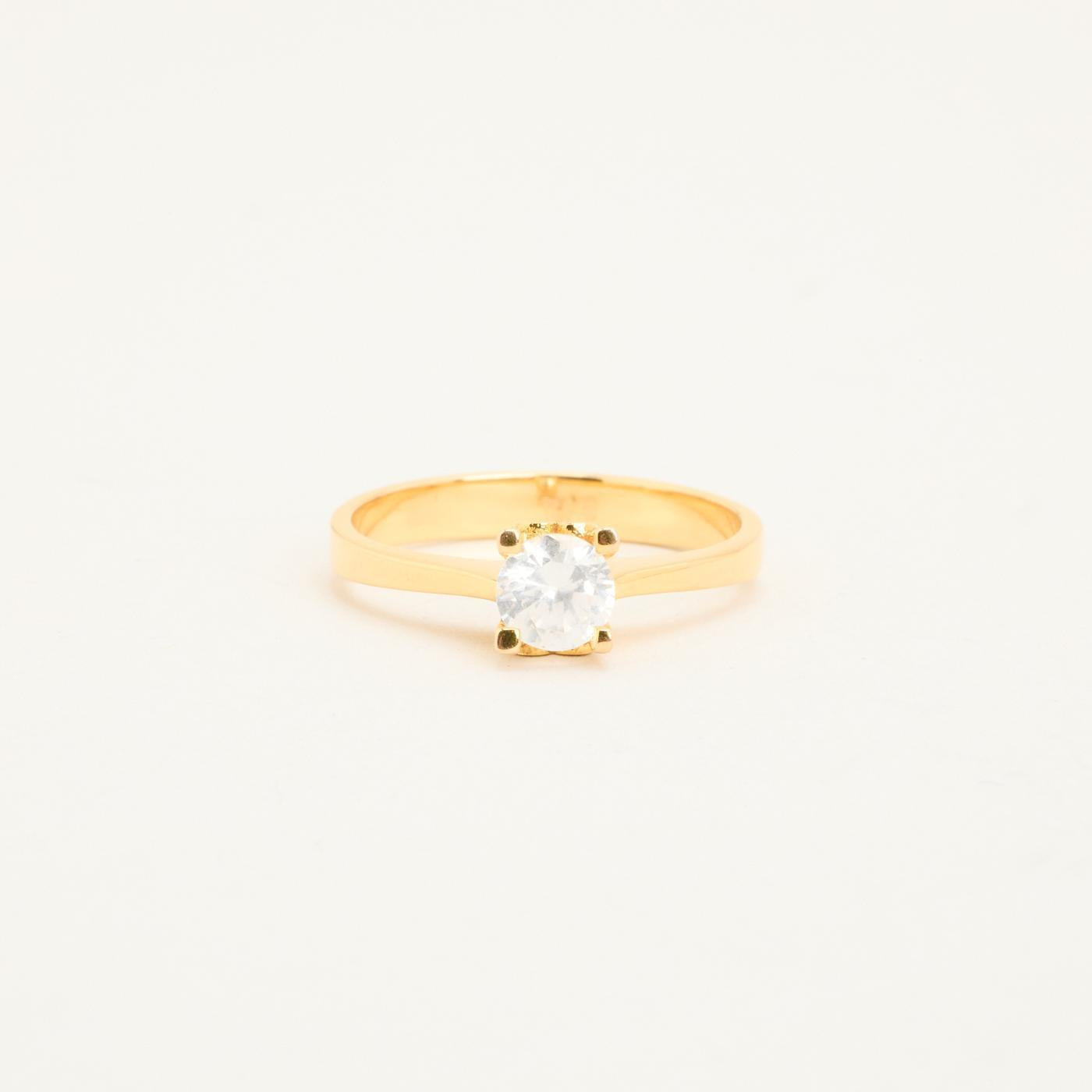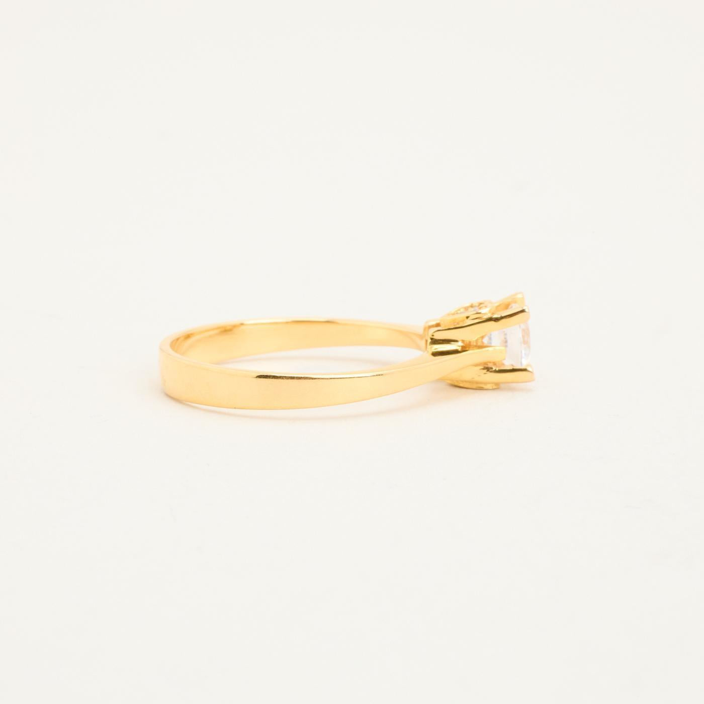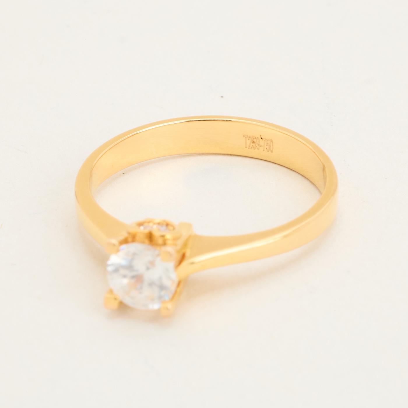 Solitairering i 18K guld med en zirkonia og hvide sten, Str. 54