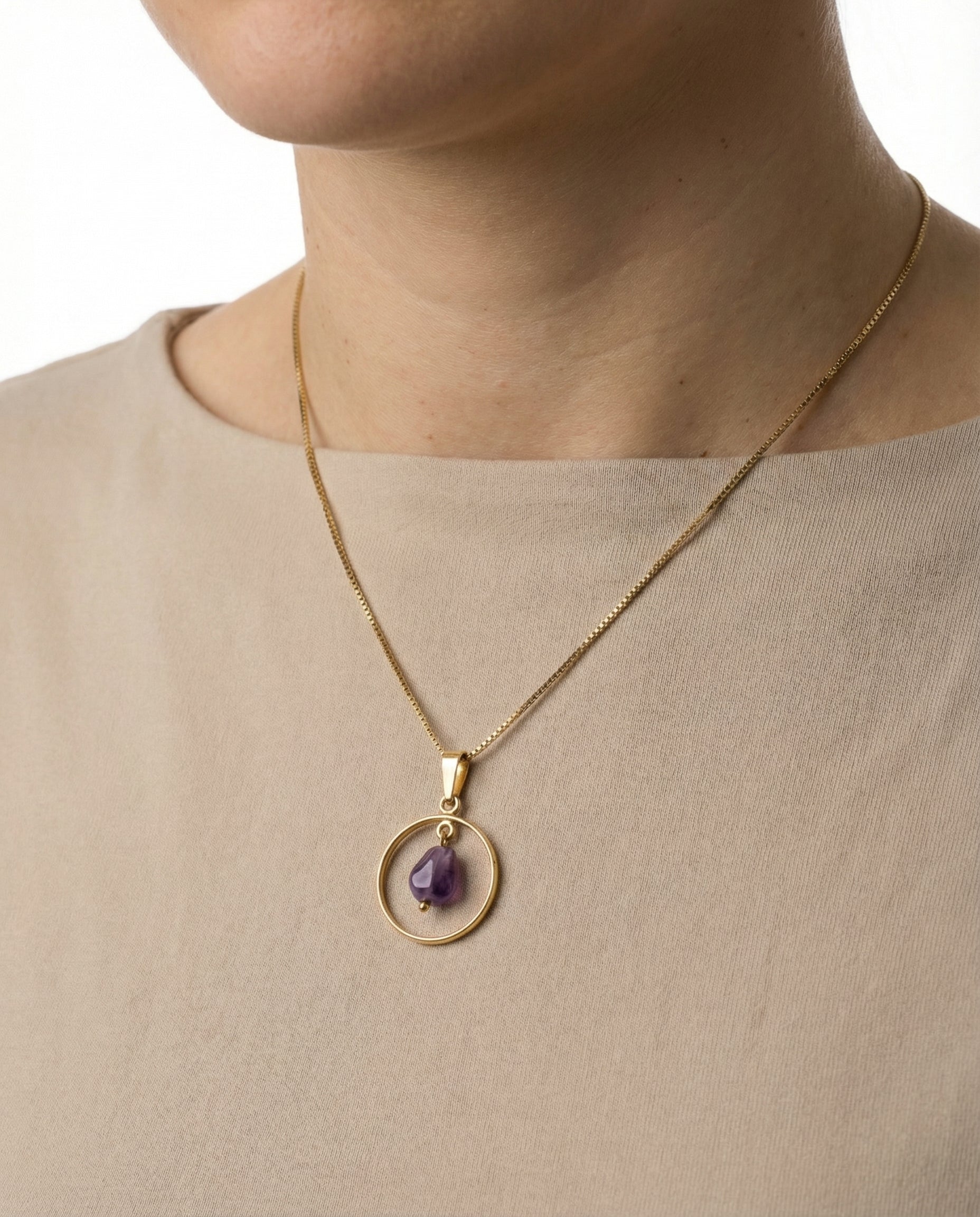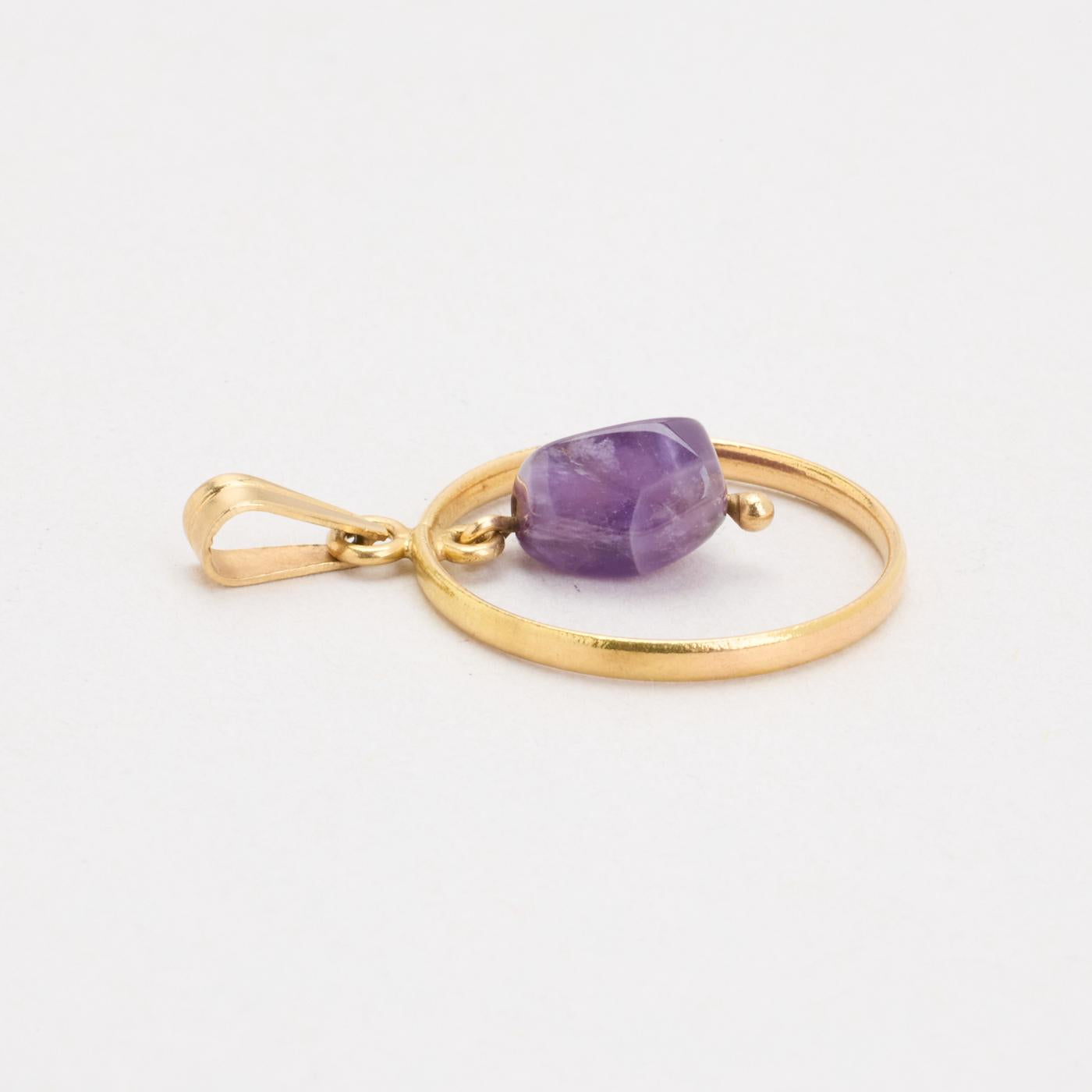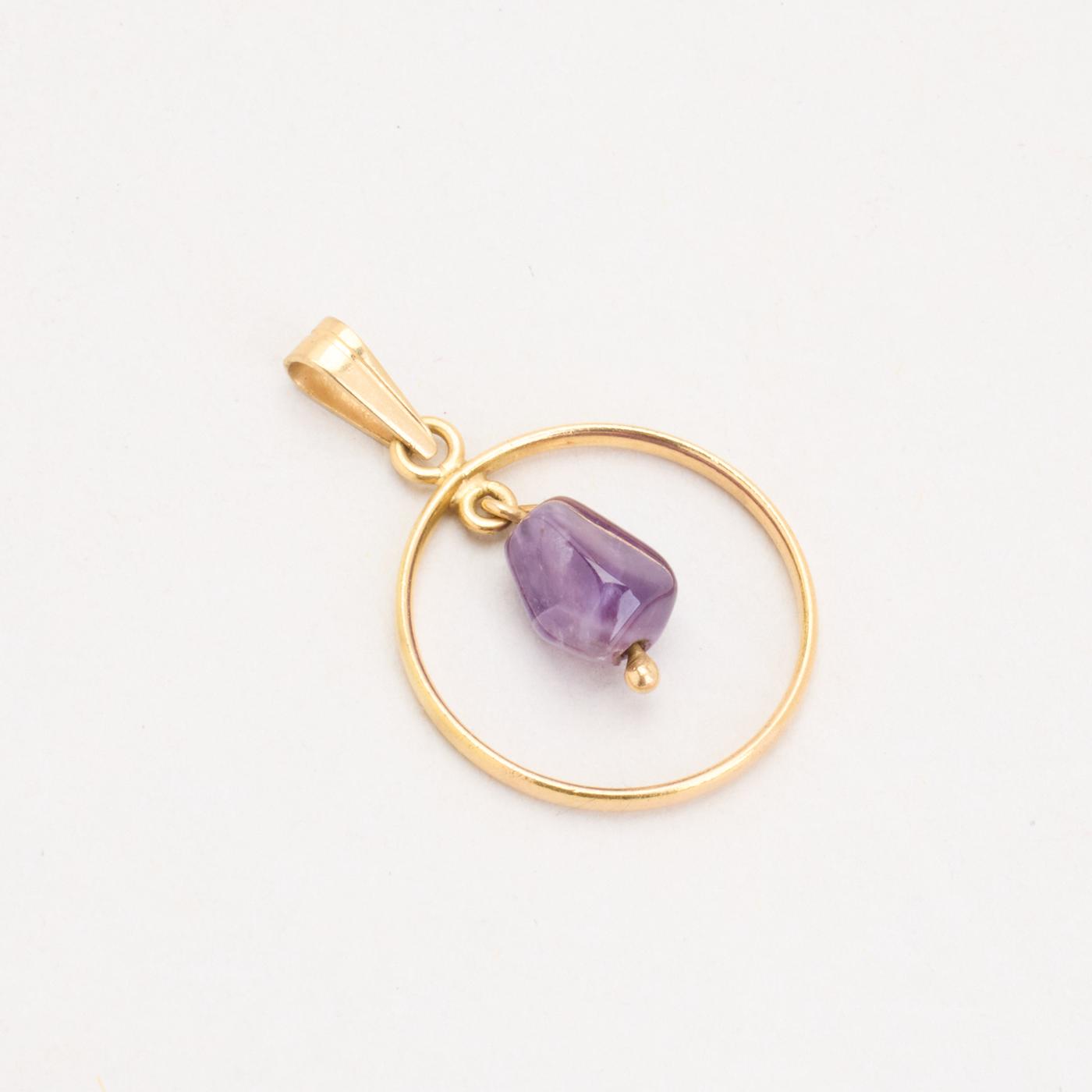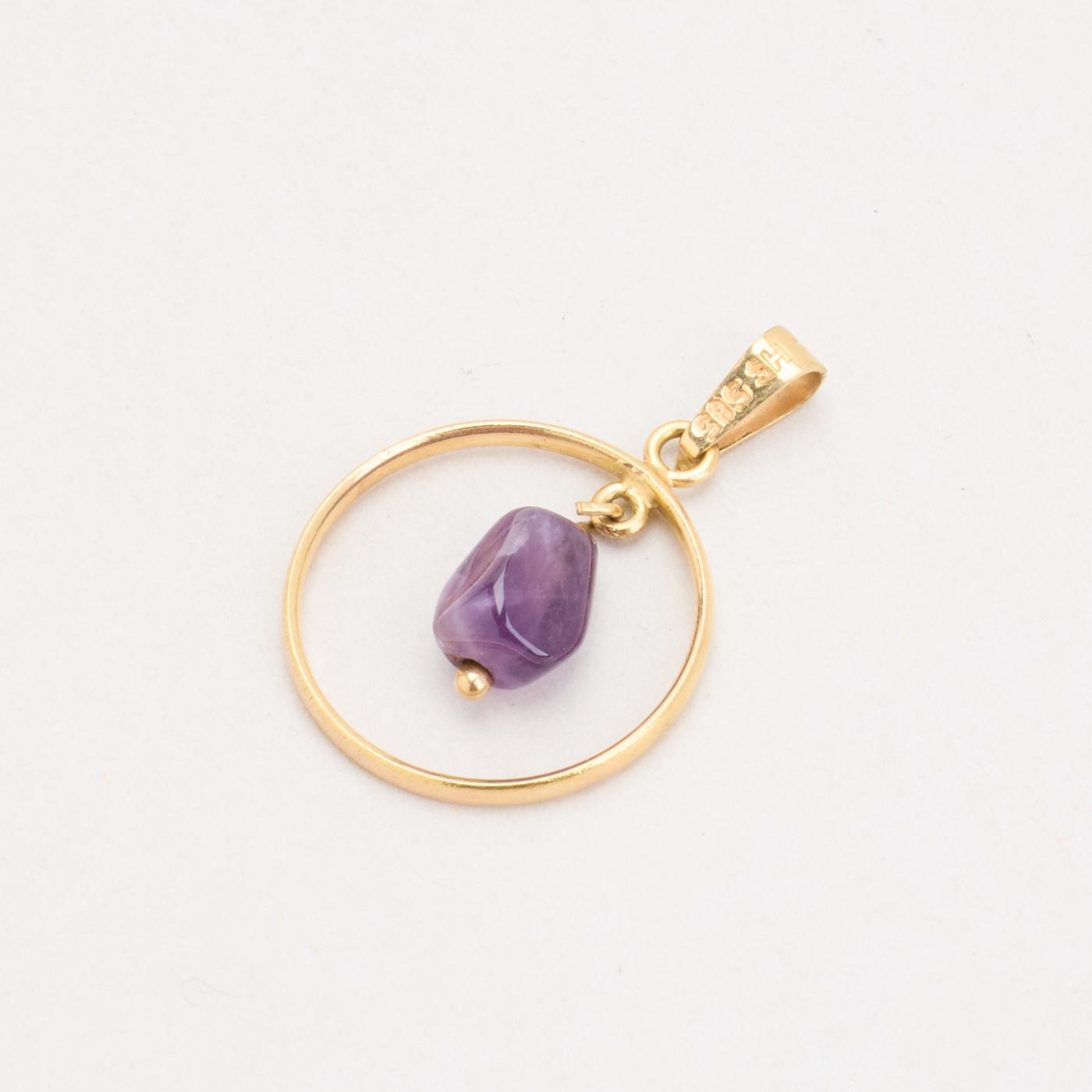 Vedhæng i 14K guld med lilla sten, 2,5 cm, 1,51 g