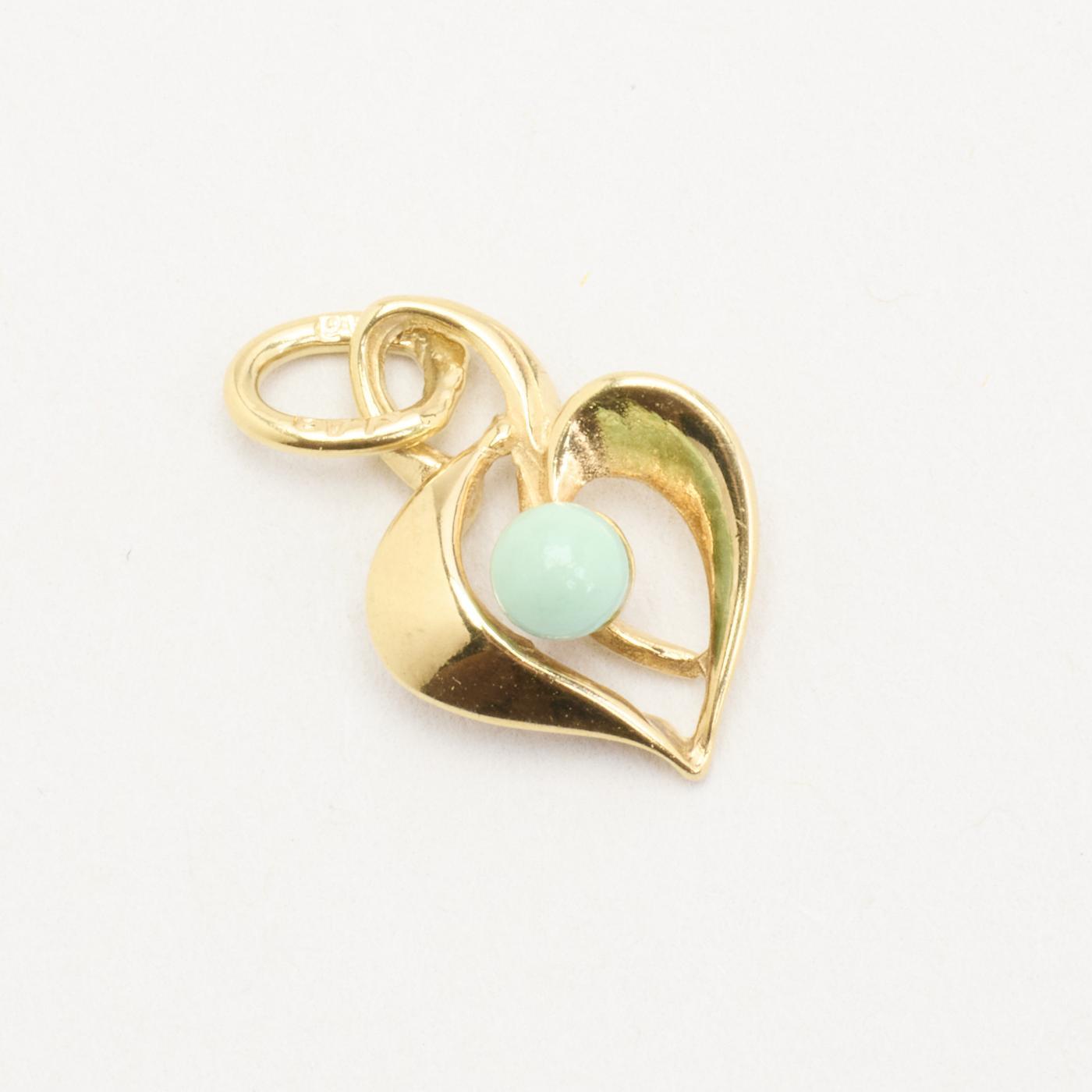 Hjerte Vedhæng i 8 karat med en Turkis, 1.5 cm